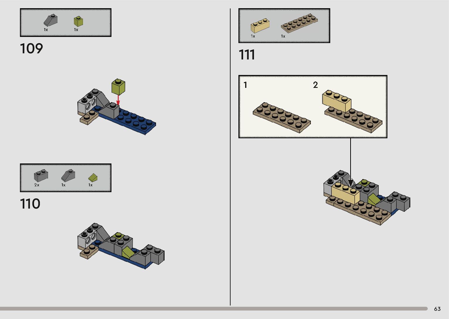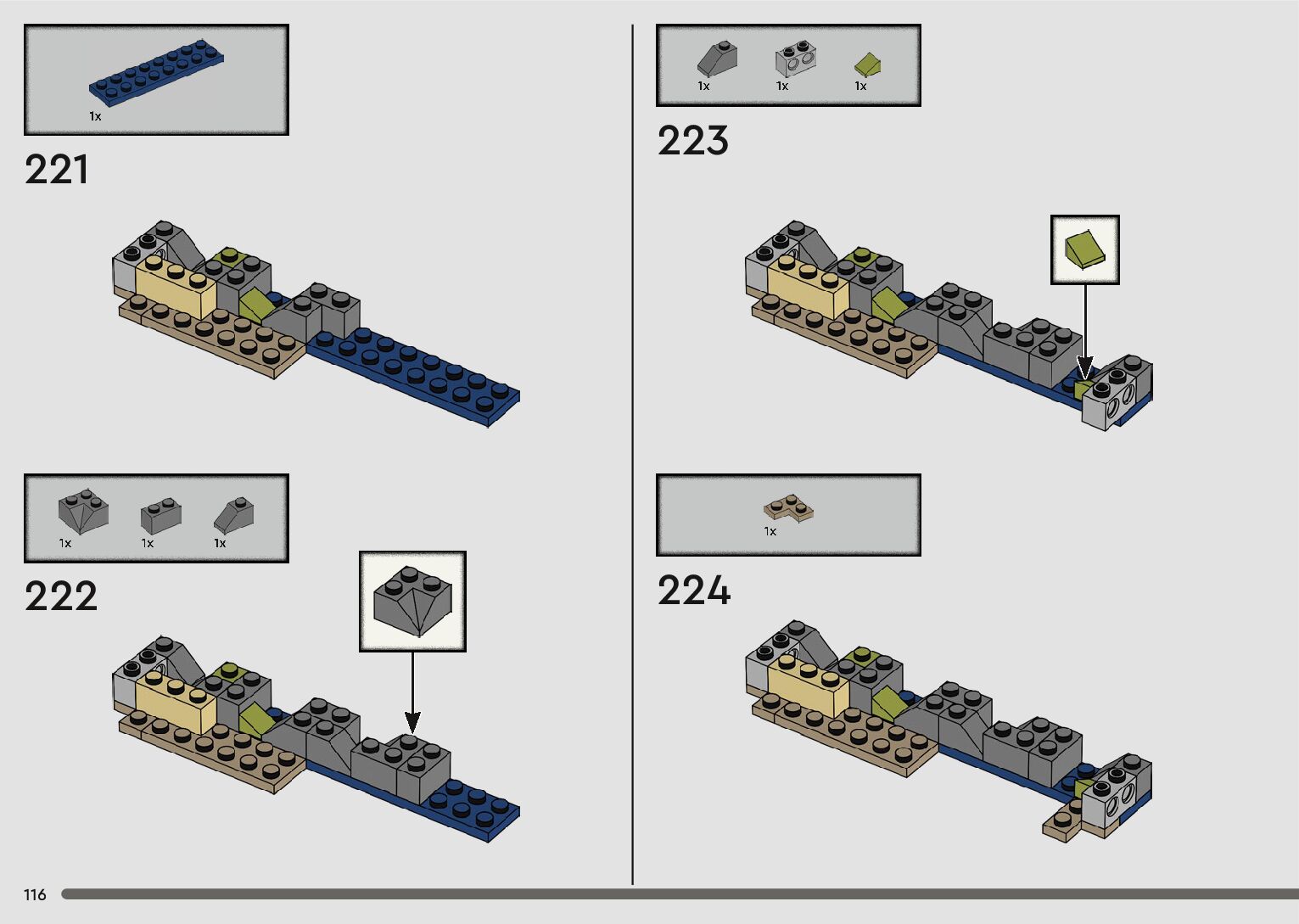 The assembly guide is prepared in a very understandable way for children and adult LEGO enthusiasts. A total of 152 picture galleries are shown, explaining the step-by-step construction stages for 1 different structures.