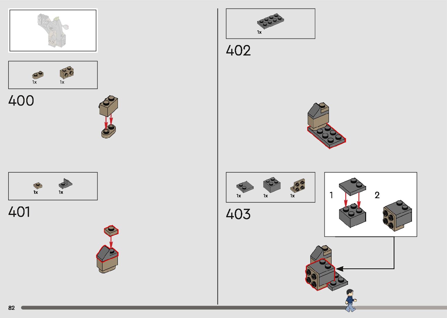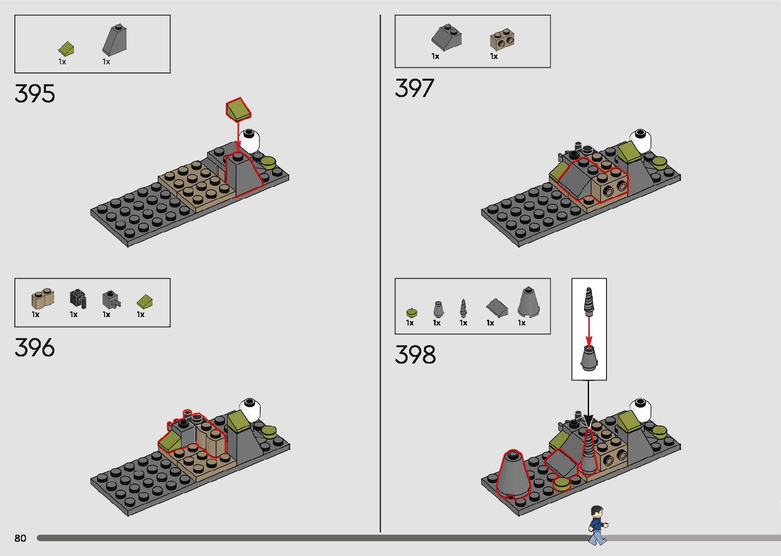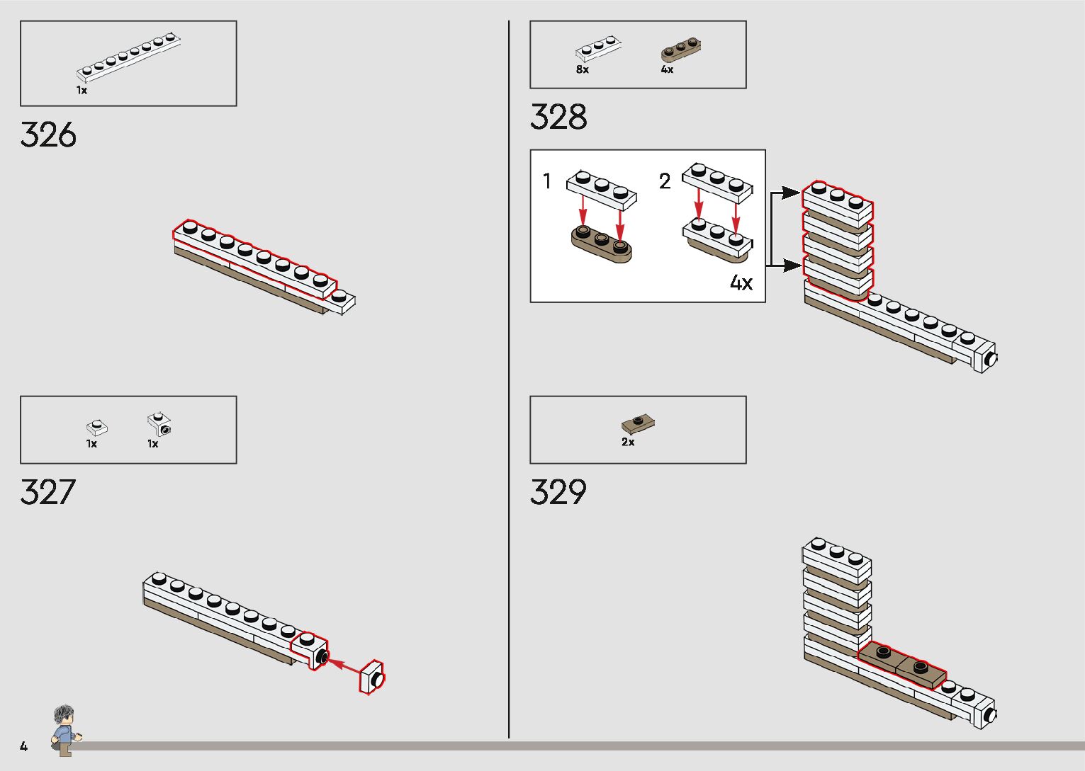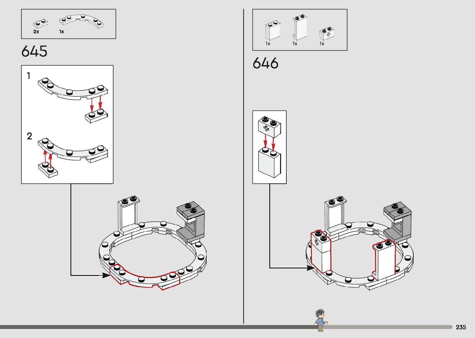The assembly guide is prepared in a very understandable way for children and adult LEGO enthusiasts. A total of 923 picture galleries are shown, explaining the step-by-step construction stages for 4 different structures.