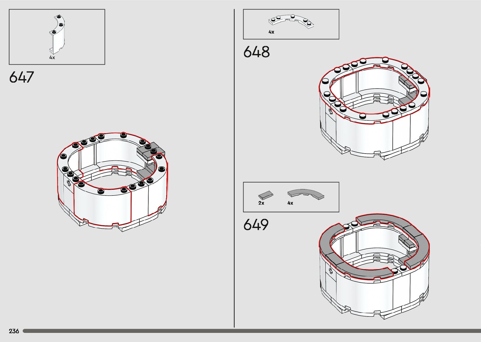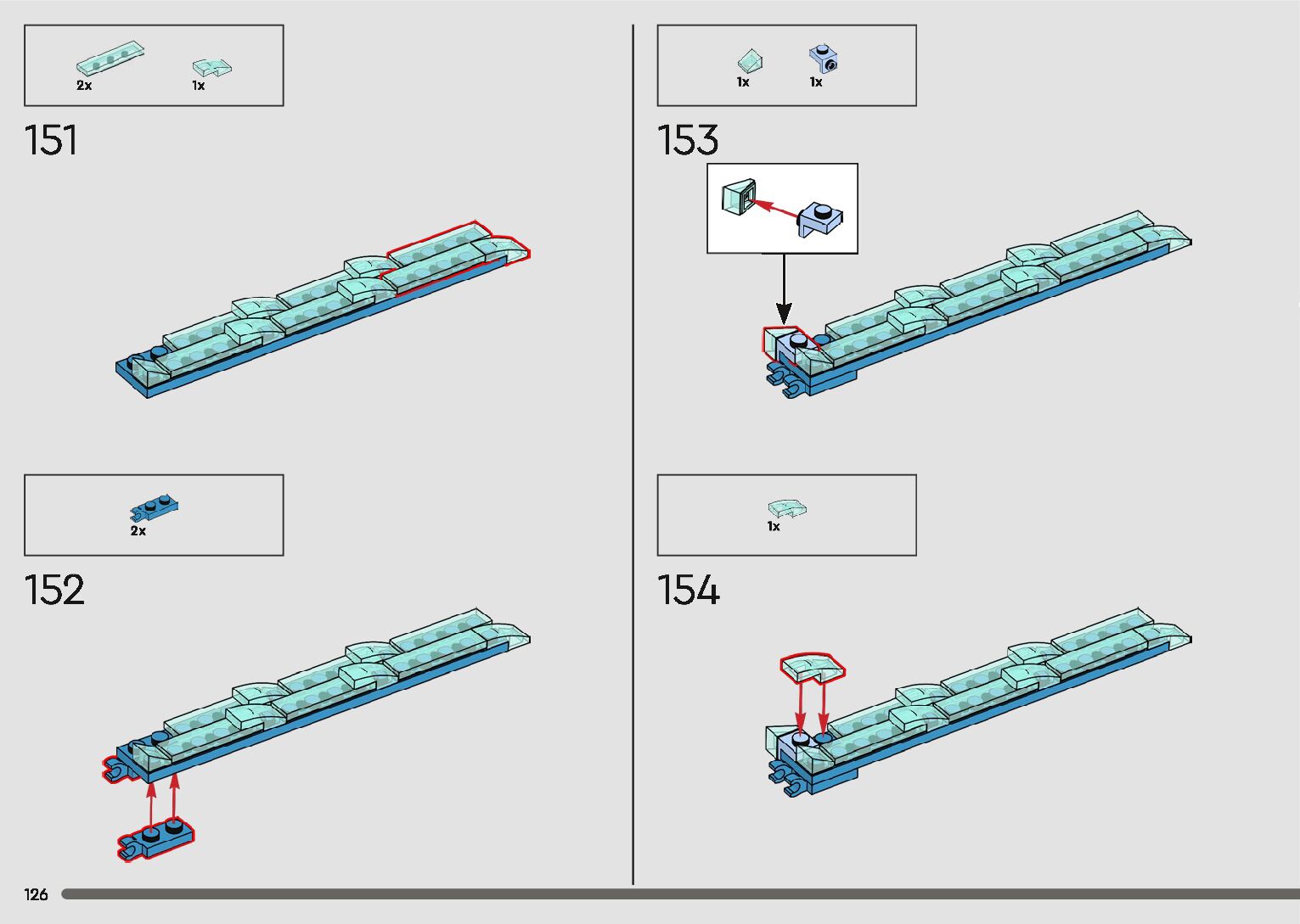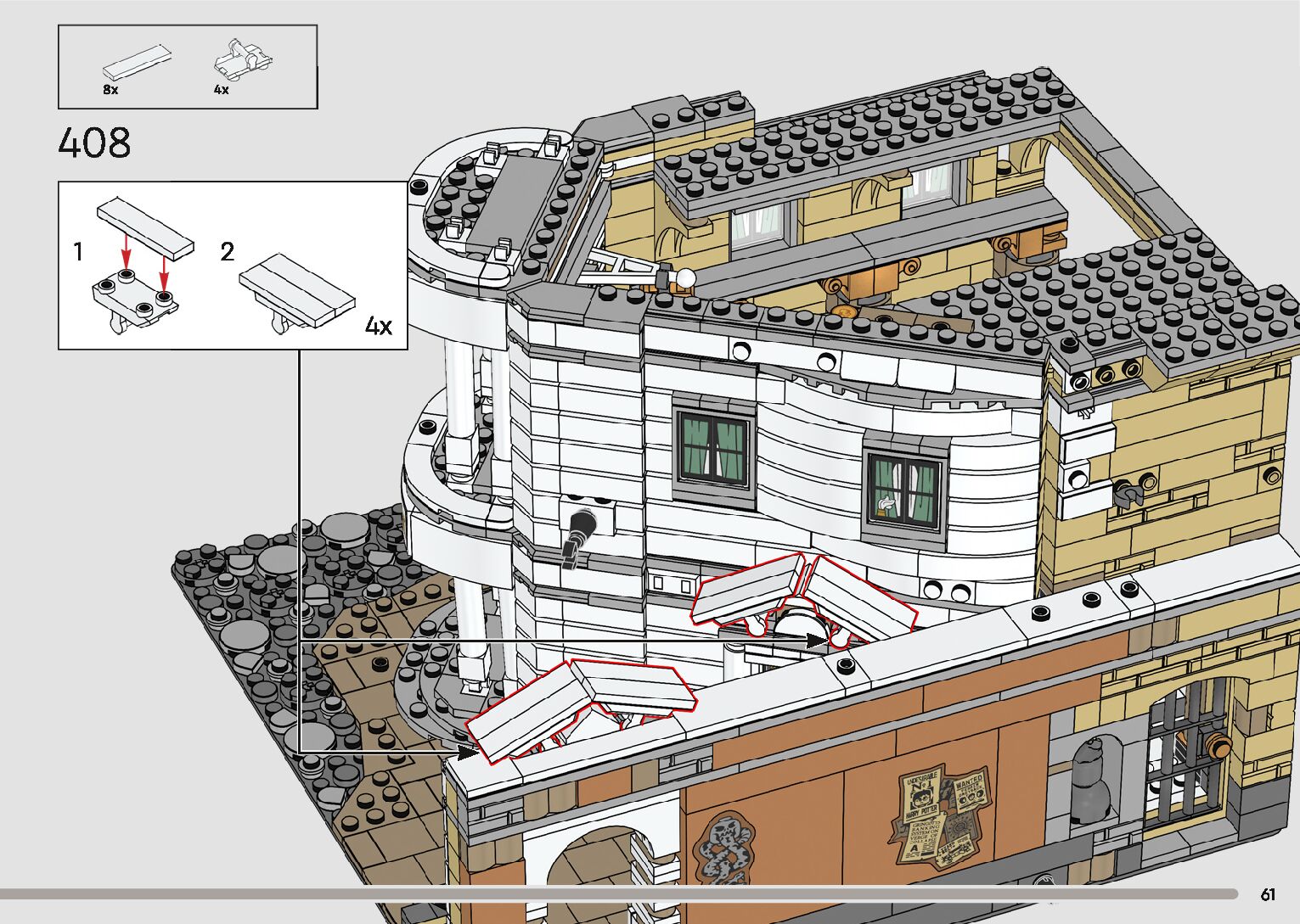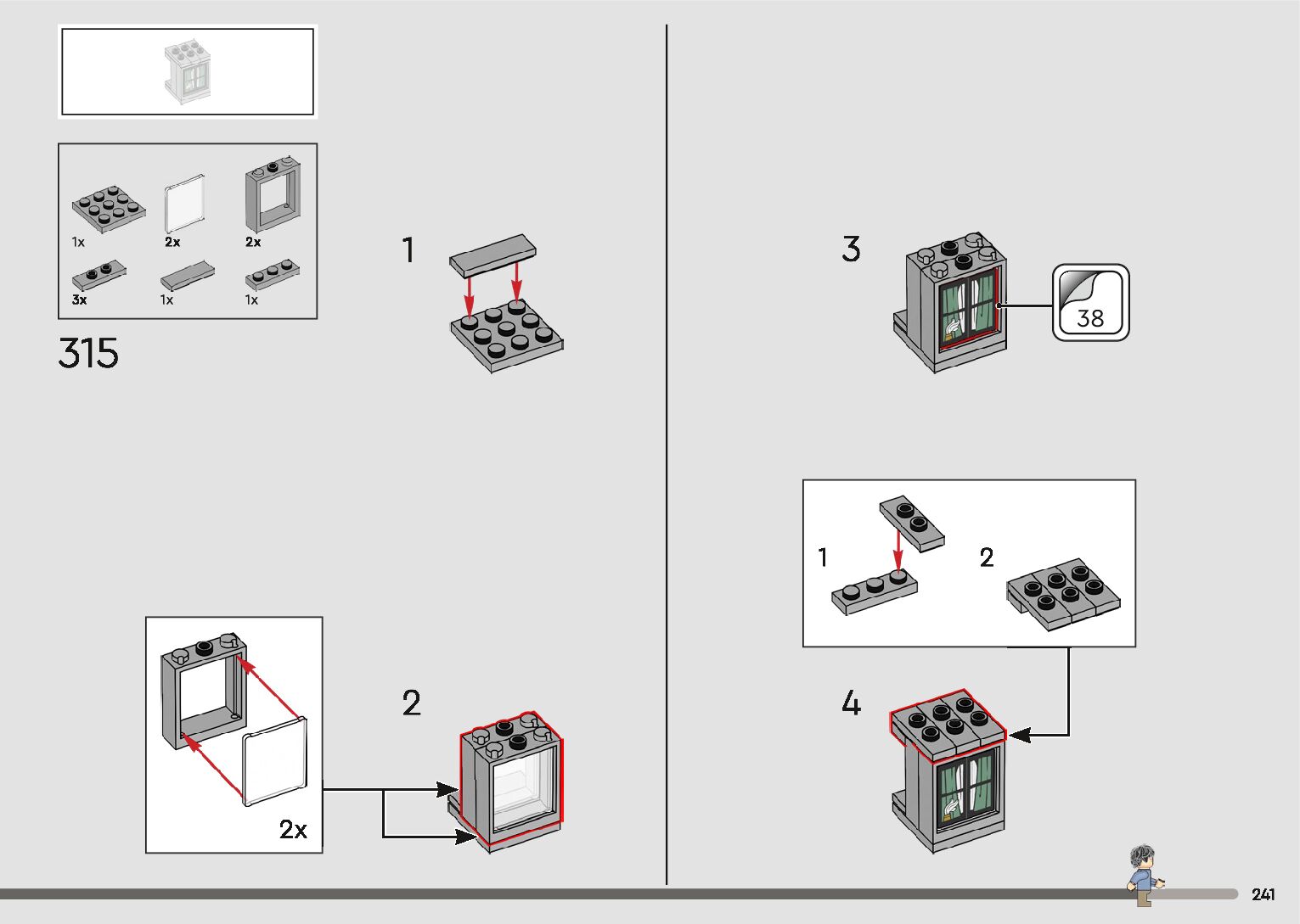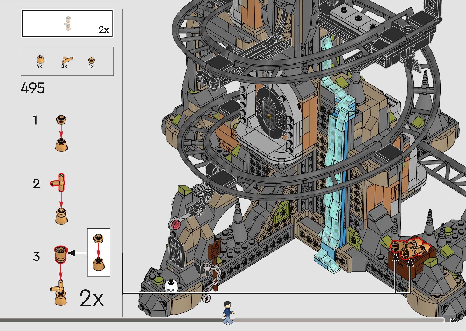 The assembly guide is prepared in a very understandable way for children and adult LEGO enthusiasts. A total of 923 picture galleries are shown, explaining the step-by-step construction stages for 4 different structures.