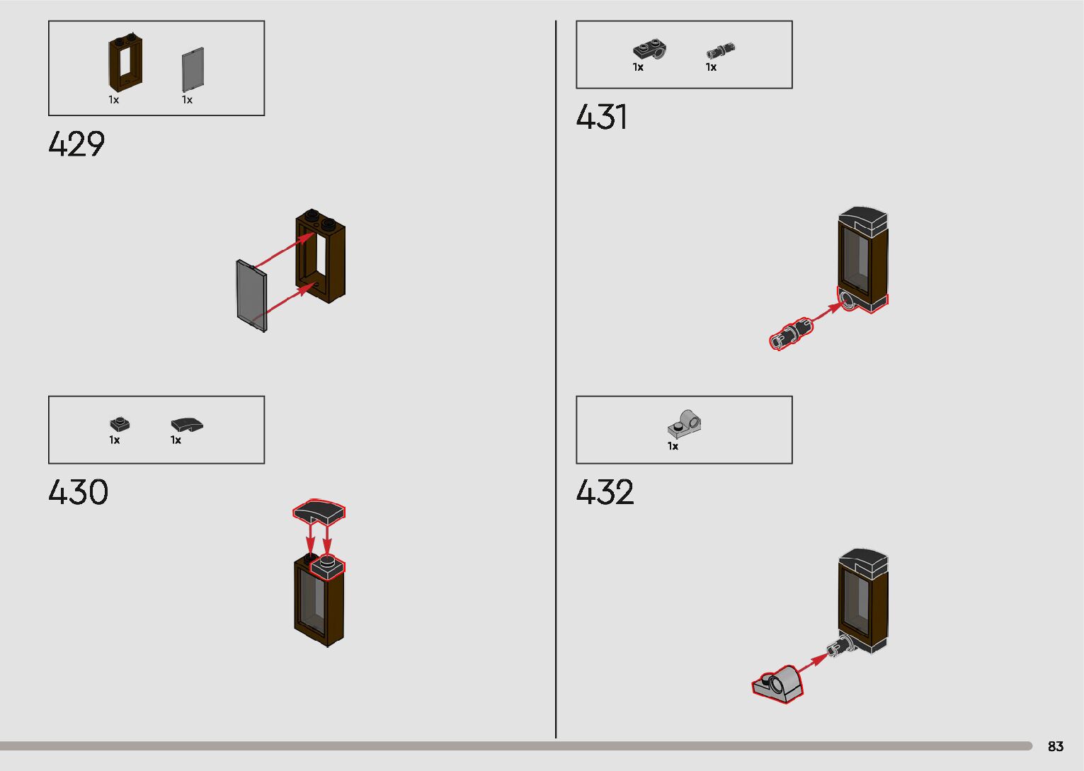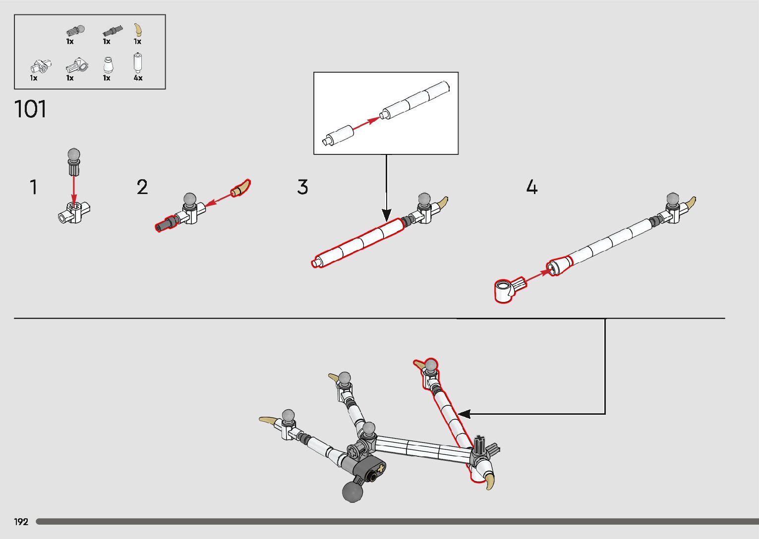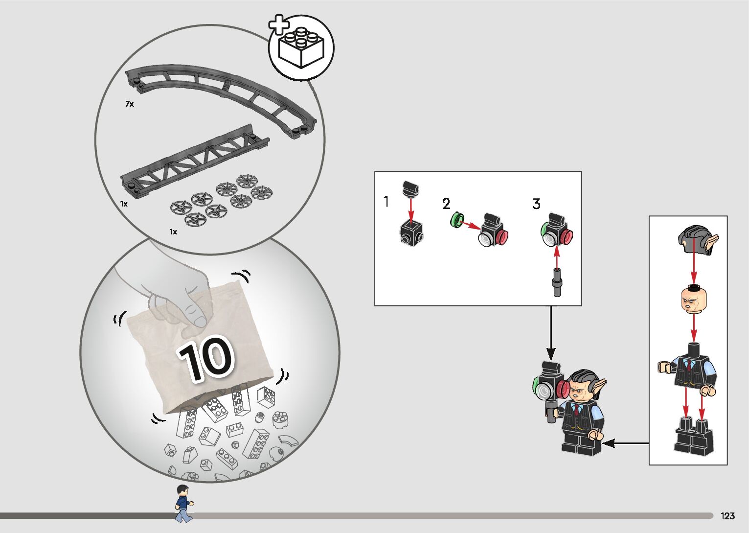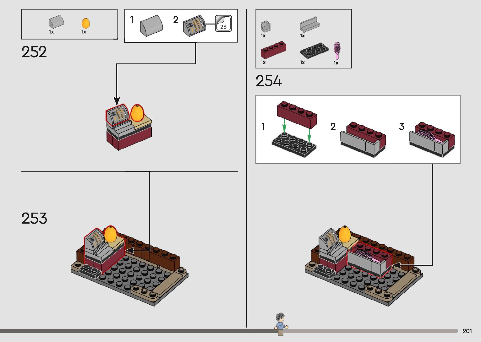 The assembly guide is prepared in a very understandable way for children and adult LEGO enthusiasts. A total of 923 picture galleries are shown, explaining the step-by-step construction stages for 4 different structures.
