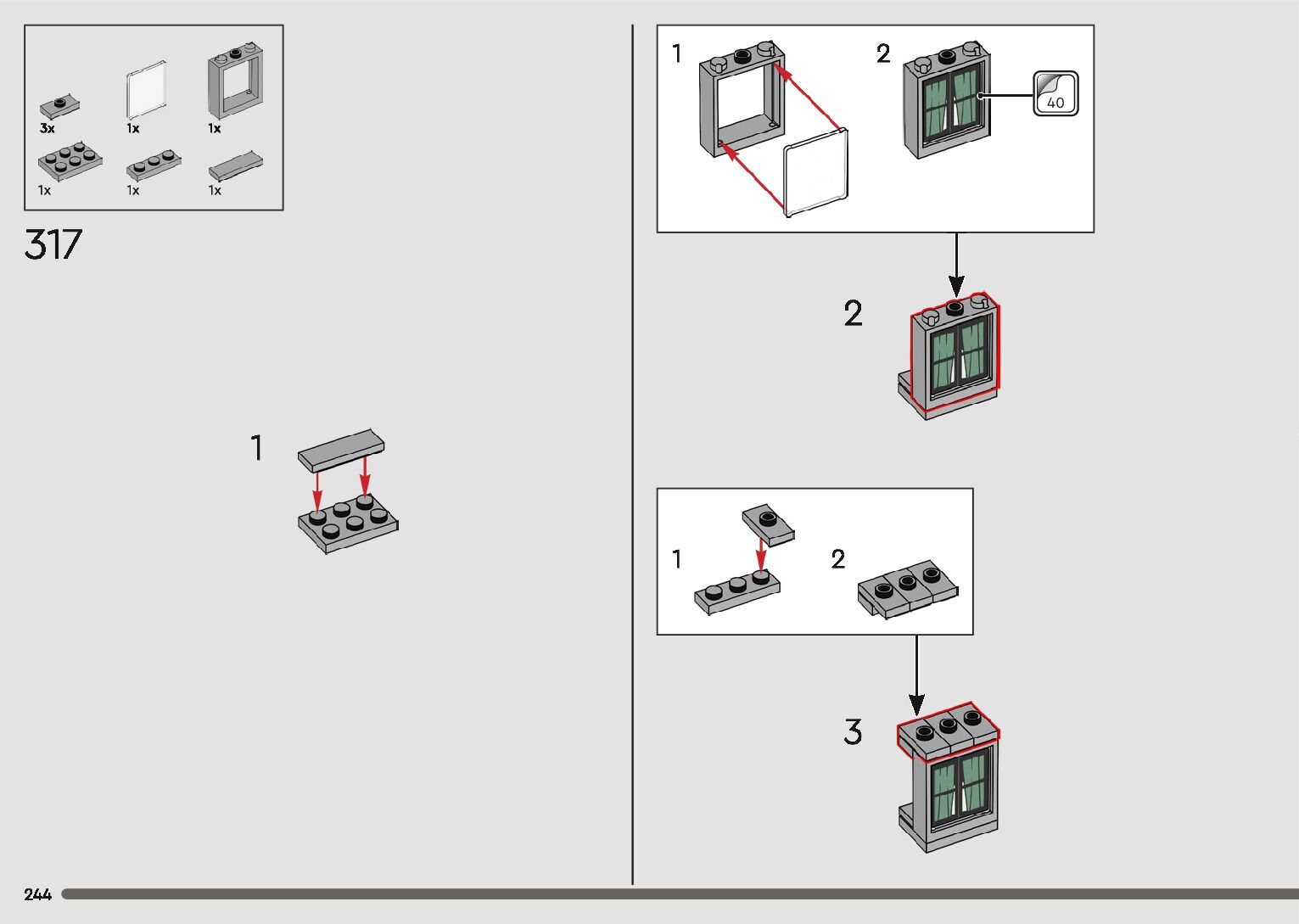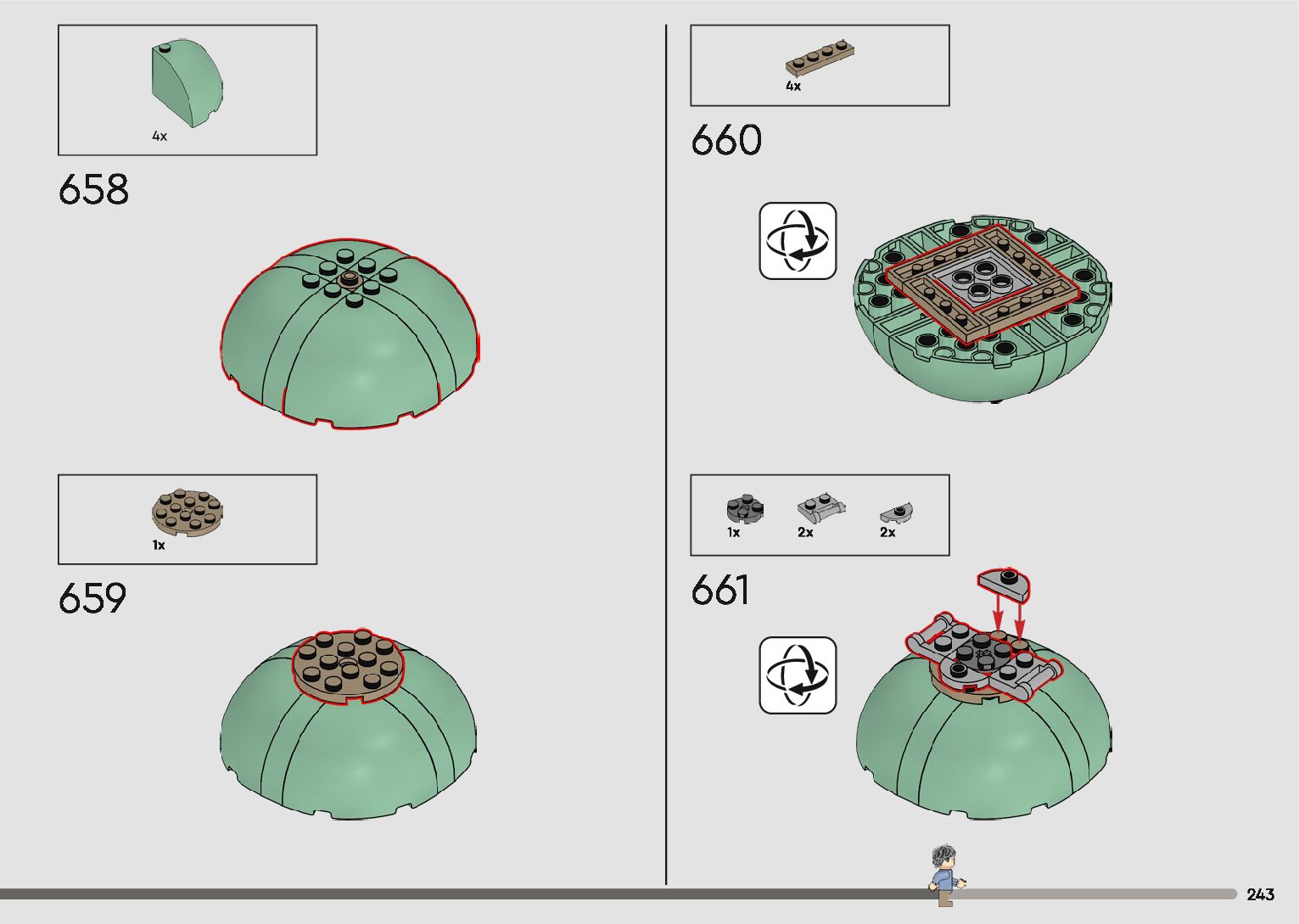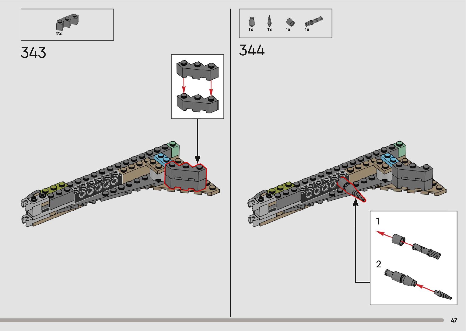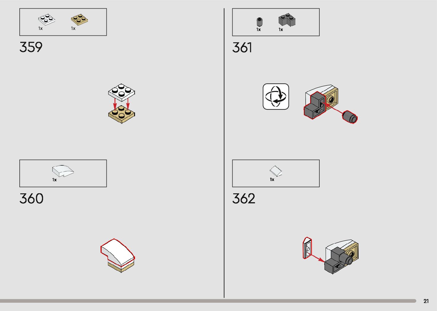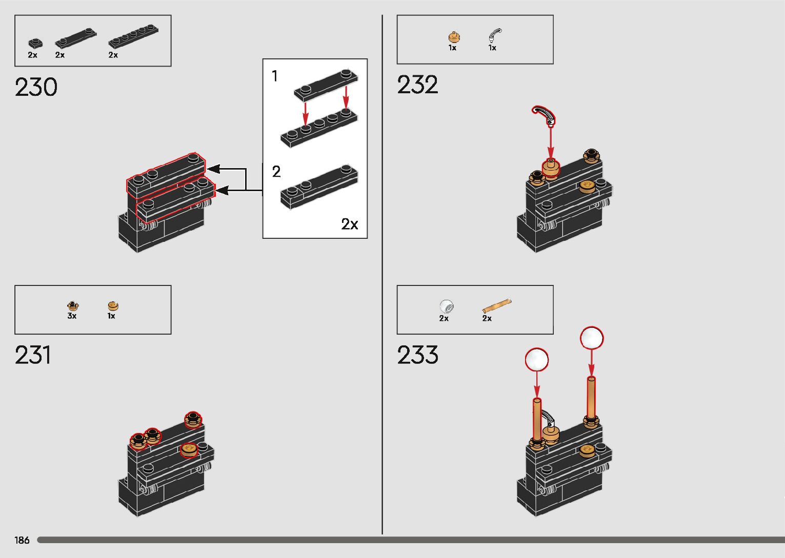 The assembly guide is prepared in a very understandable way for children and adult LEGO enthusiasts. A total of 923 picture galleries are shown, explaining the step-by-step construction stages for 4 different structures.