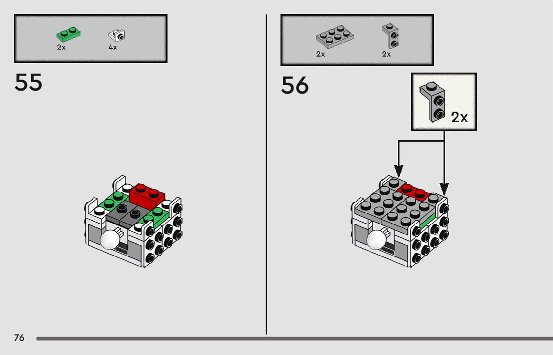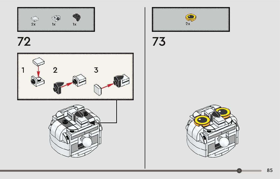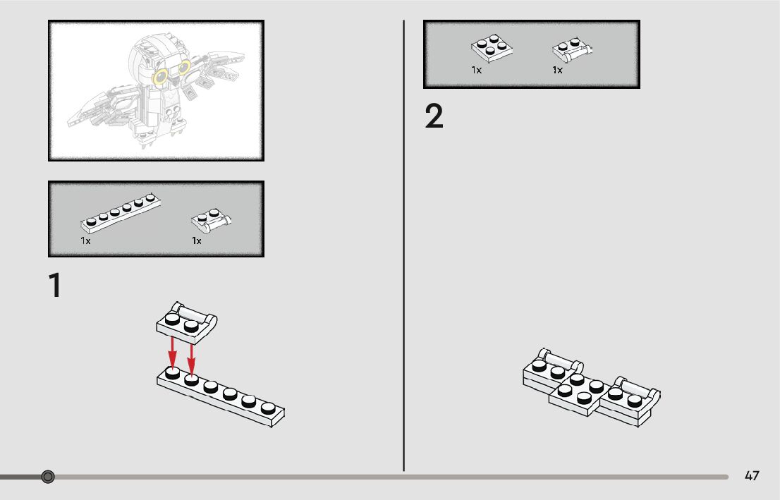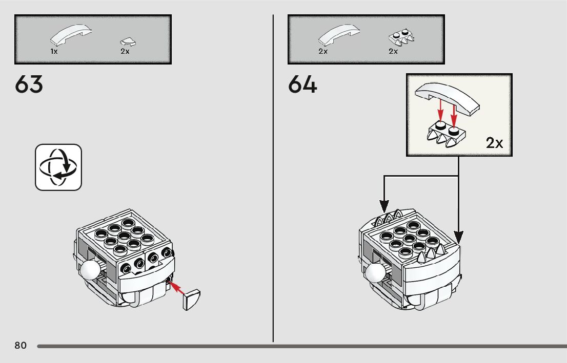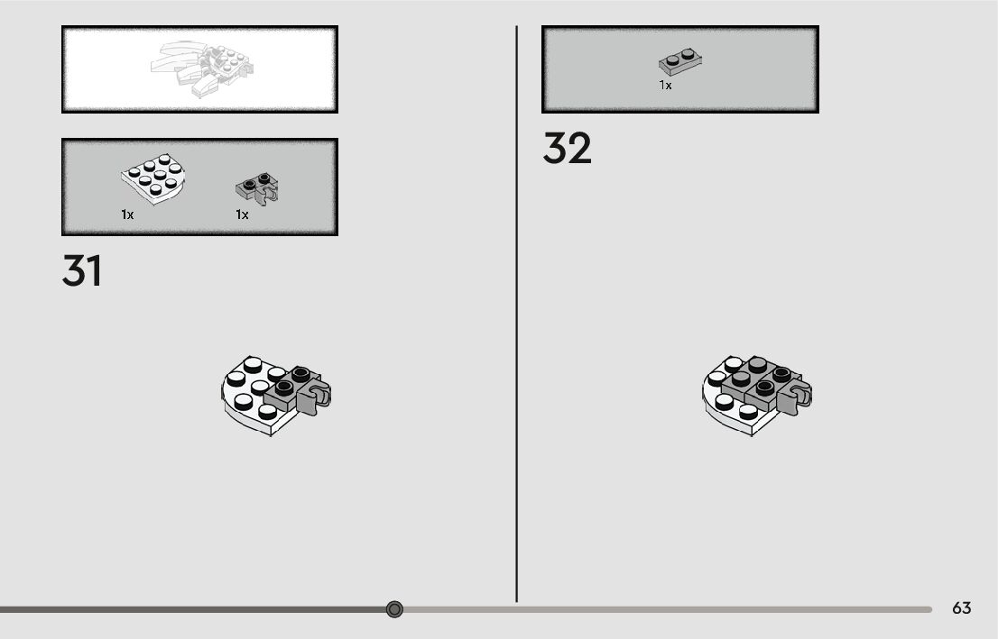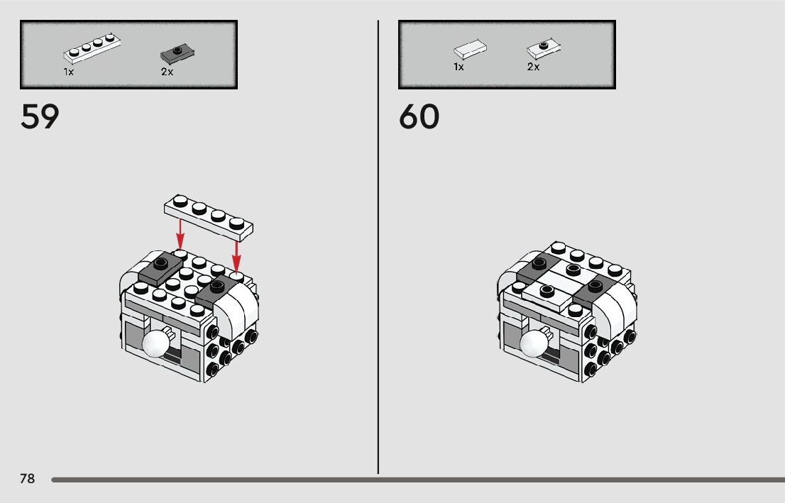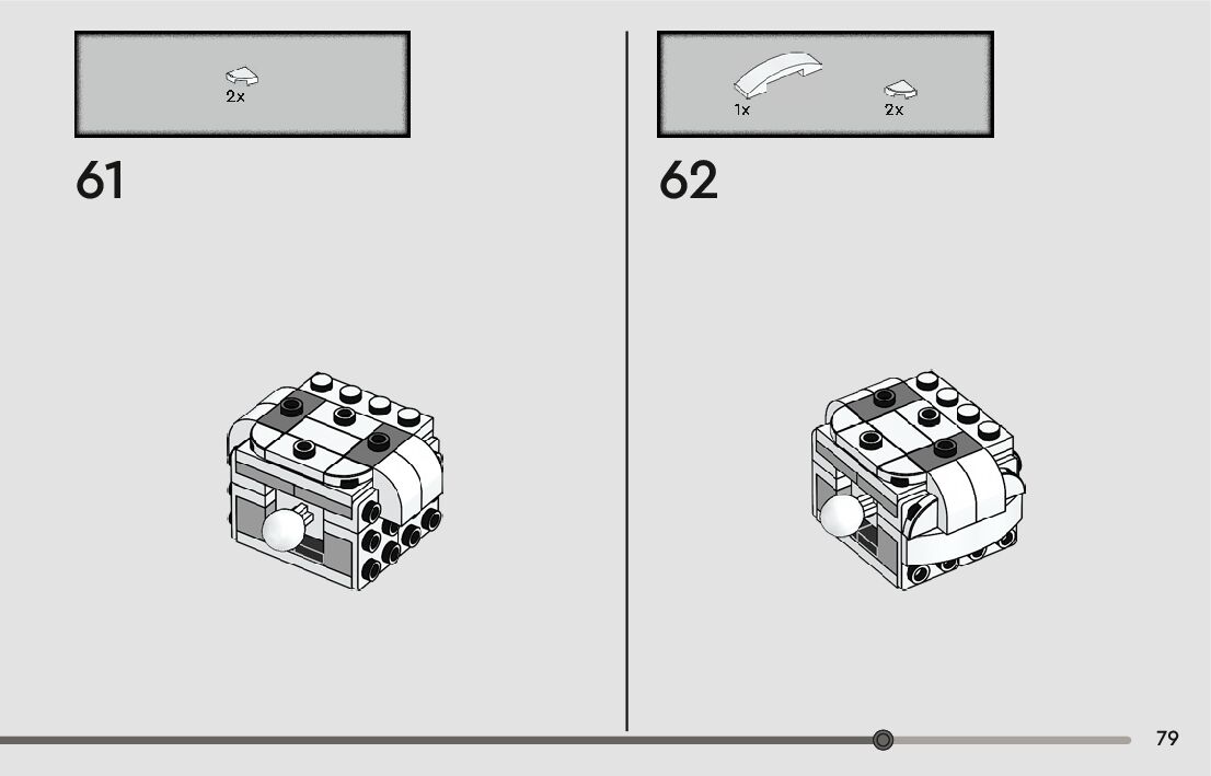 The assembly guide is prepared in a very understandable way for children and adult LEGO enthusiasts. A total of 92 picture galleries are shown, explaining the step-by-step construction stages for 1 different structures.