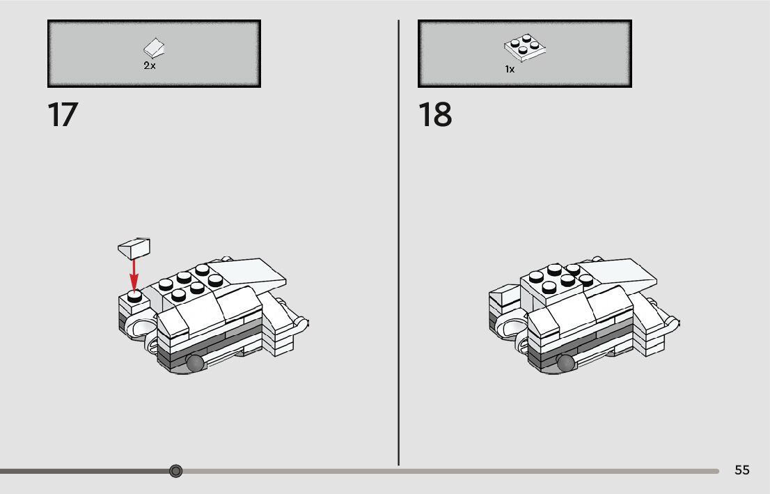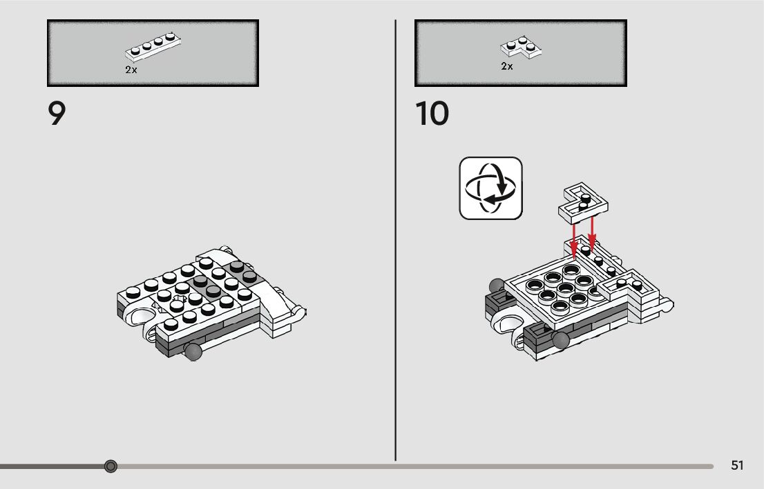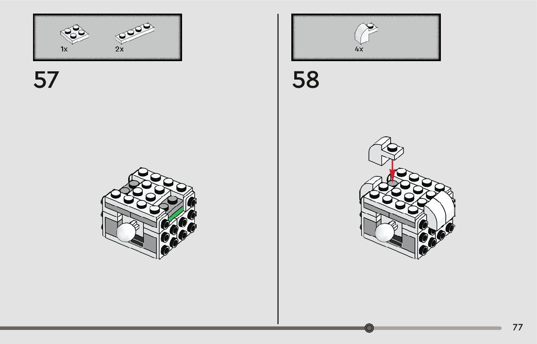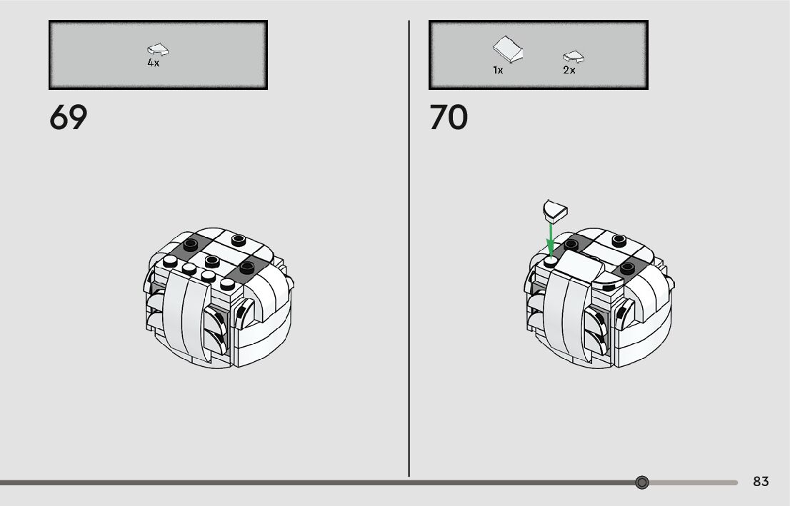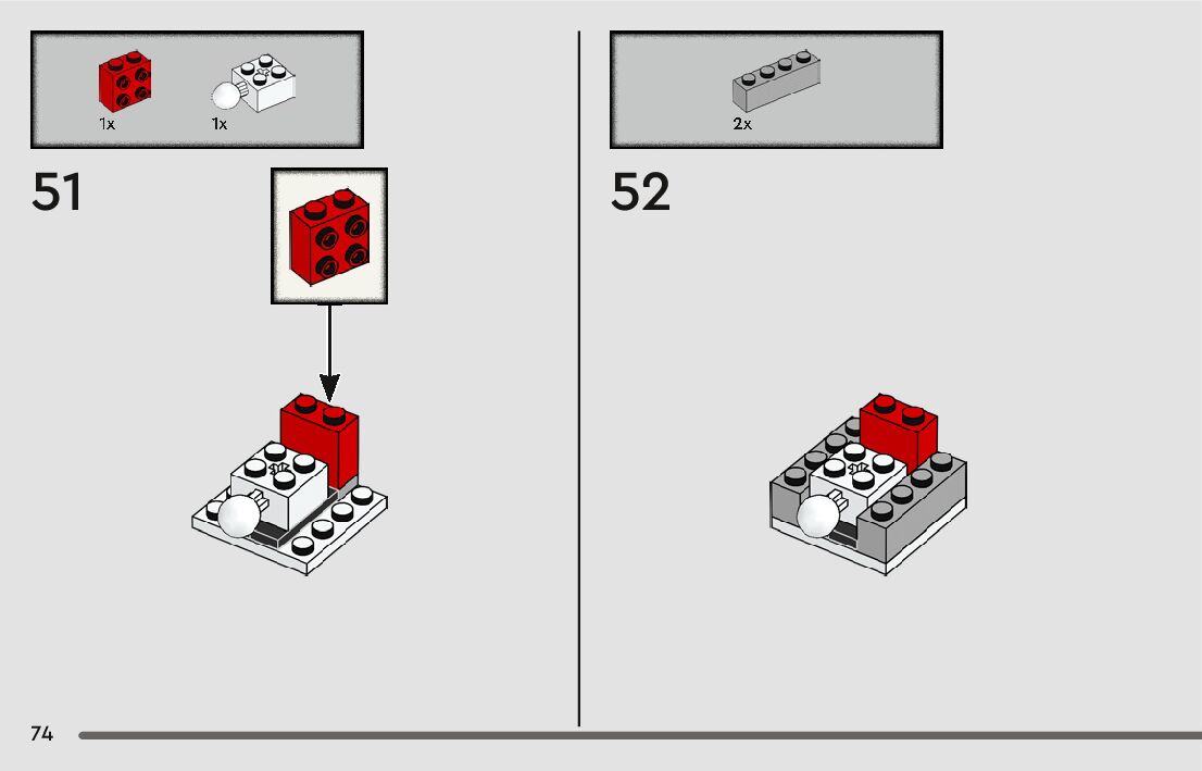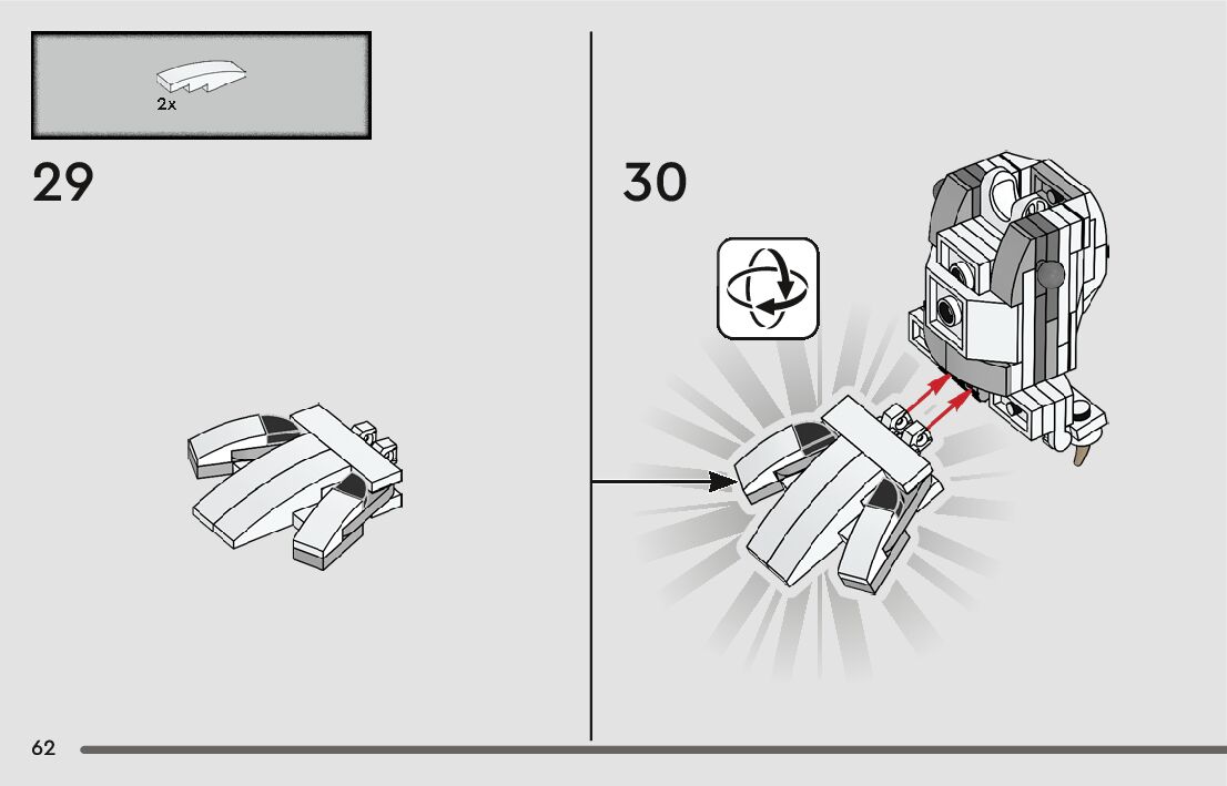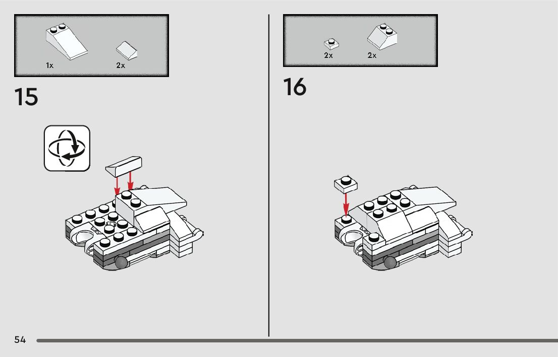 The assembly guide is prepared in a very understandable way for children and adult LEGO enthusiasts. A total of 92 picture galleries are shown, explaining the step-by-step construction stages for 1 different structures.