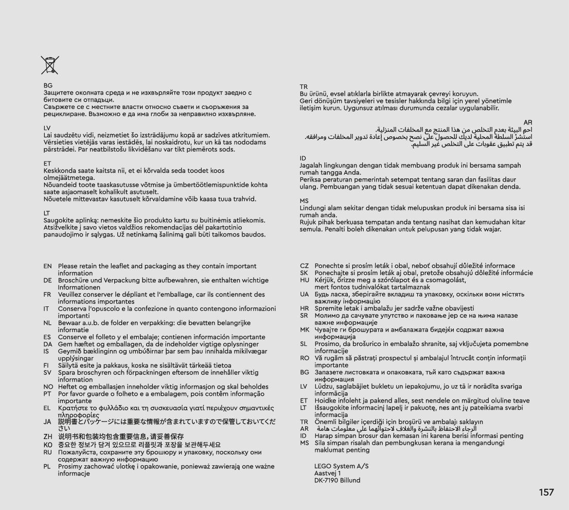 The assembly guide is prepared in a very understandable way for children and adult LEGO enthusiasts. A total of 160 picture galleries are shown, explaining the step-by-step construction stages for 1 different structures.