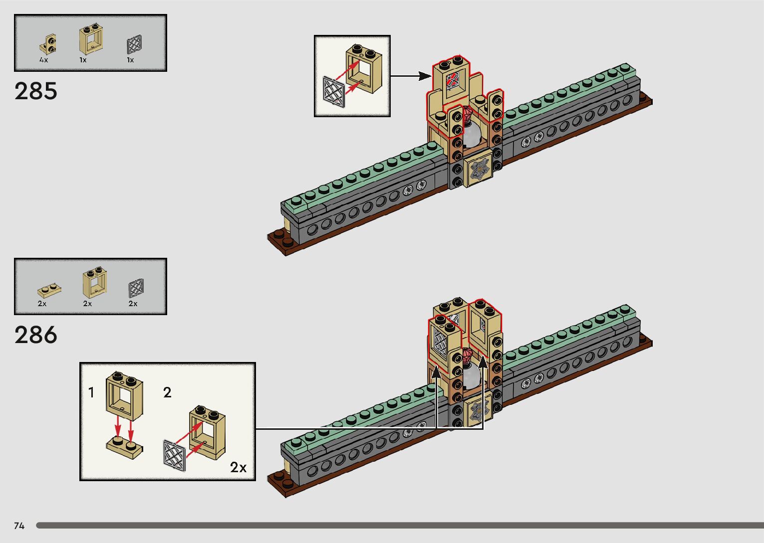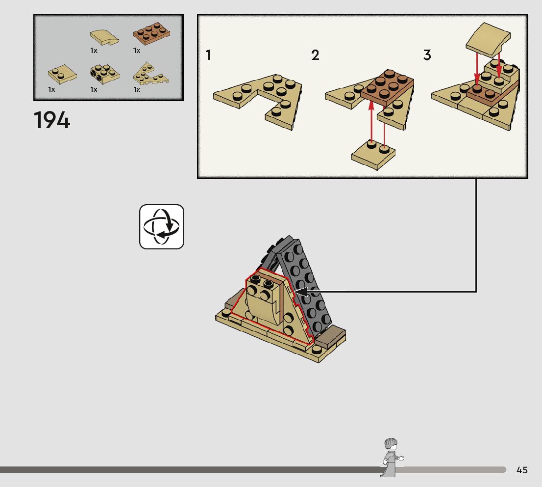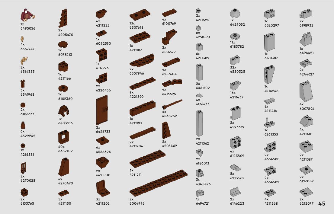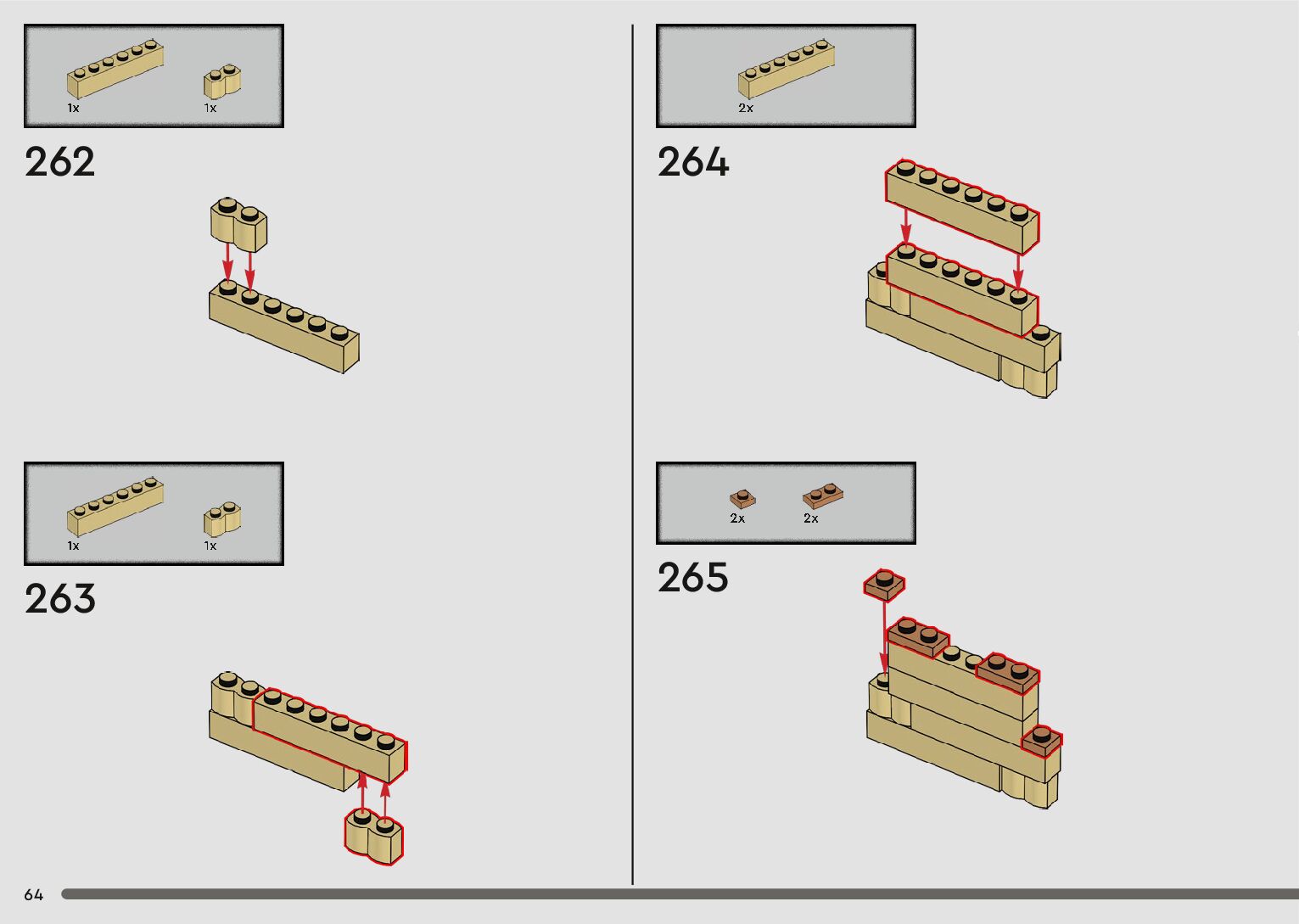 The assembly guide is prepared in a very understandable way for children and adult LEGO enthusiasts. A total of 380 picture galleries are shown, explaining the step-by-step construction stages for 5 different structures.