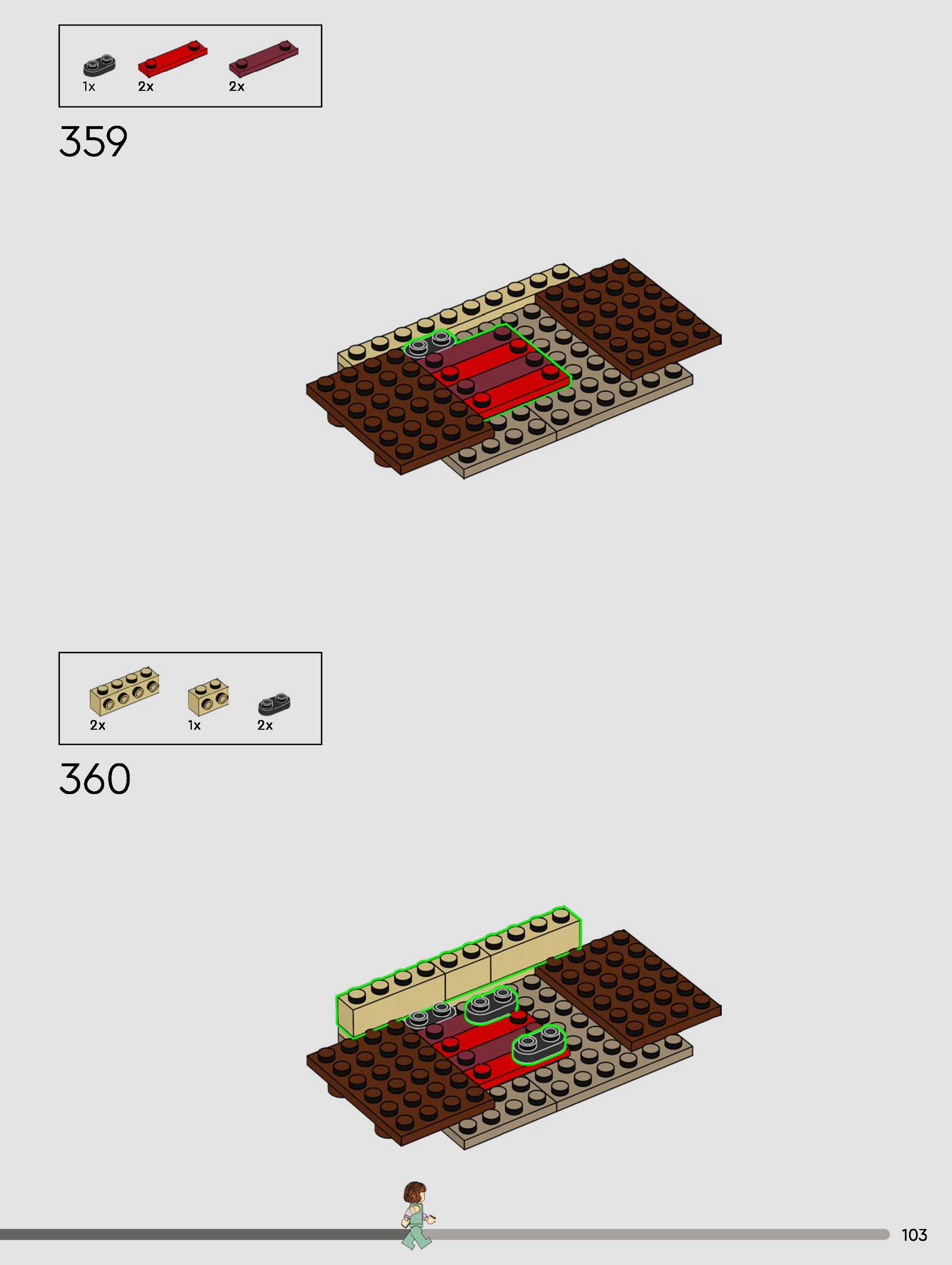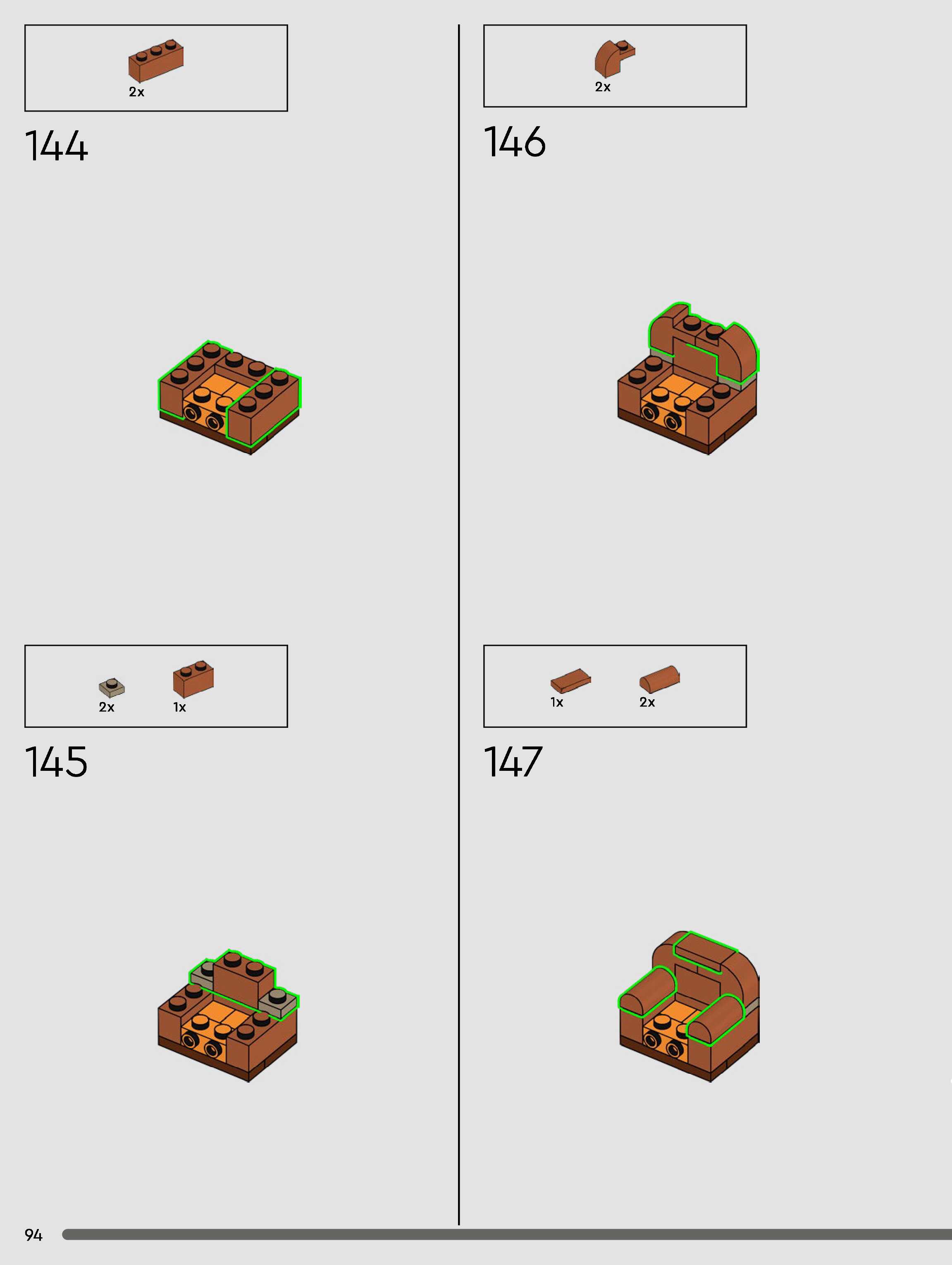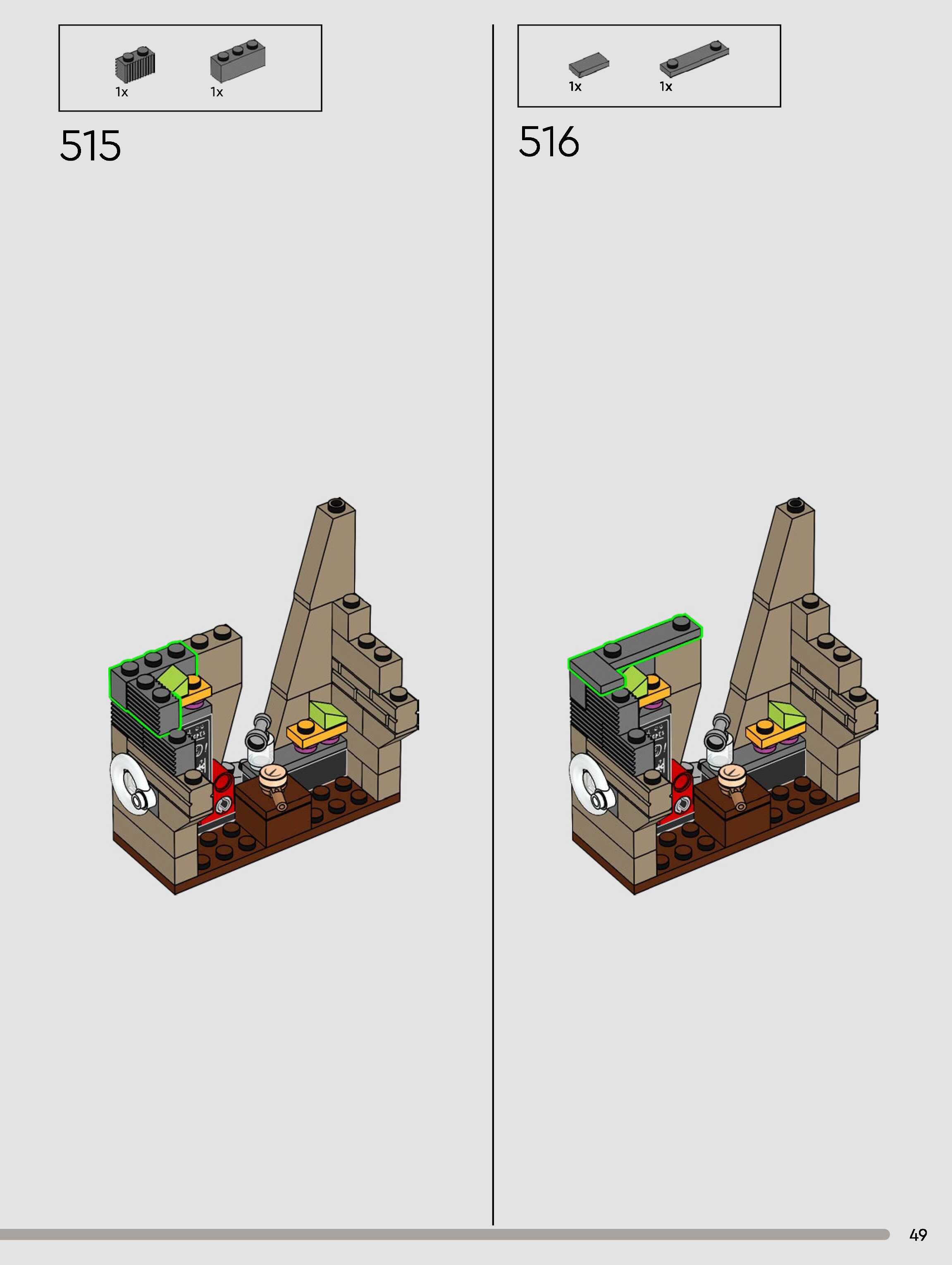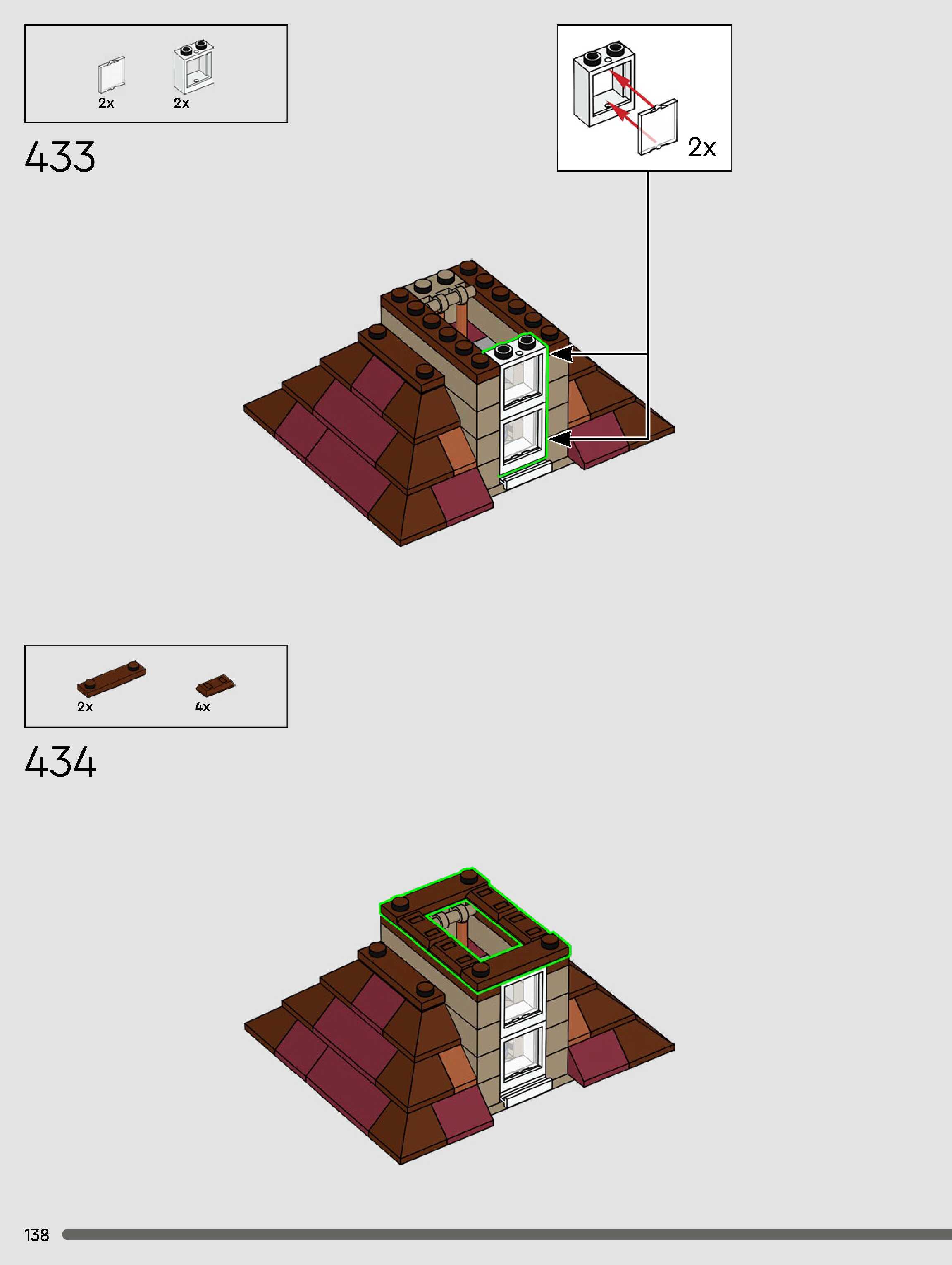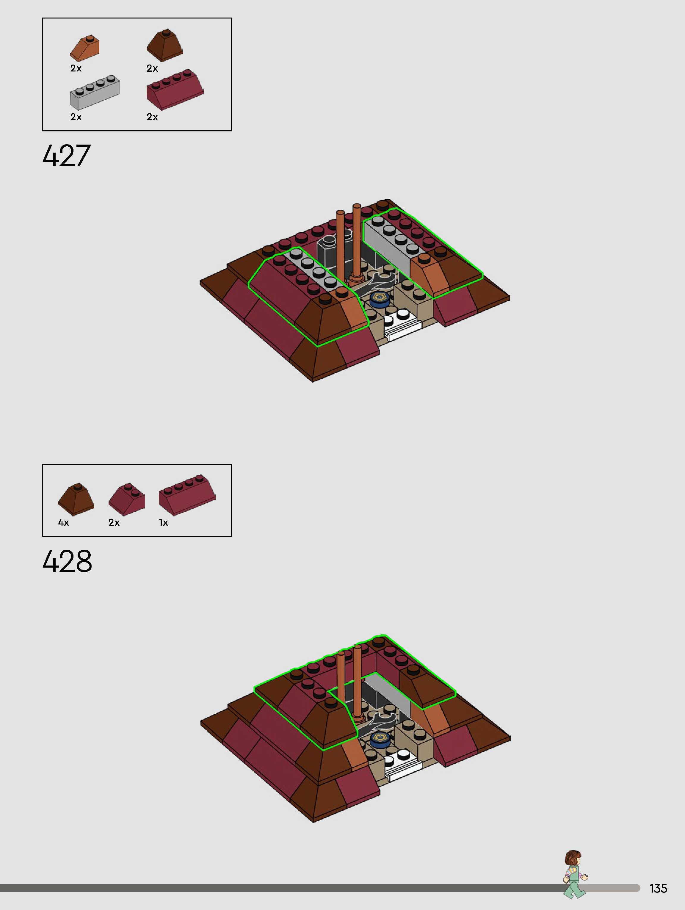 The assembly guide is prepared in a very understandable way for children and adult LEGO enthusiasts. A total of 432 picture galleries are shown, explaining the step-by-step construction stages for 3 different structures.