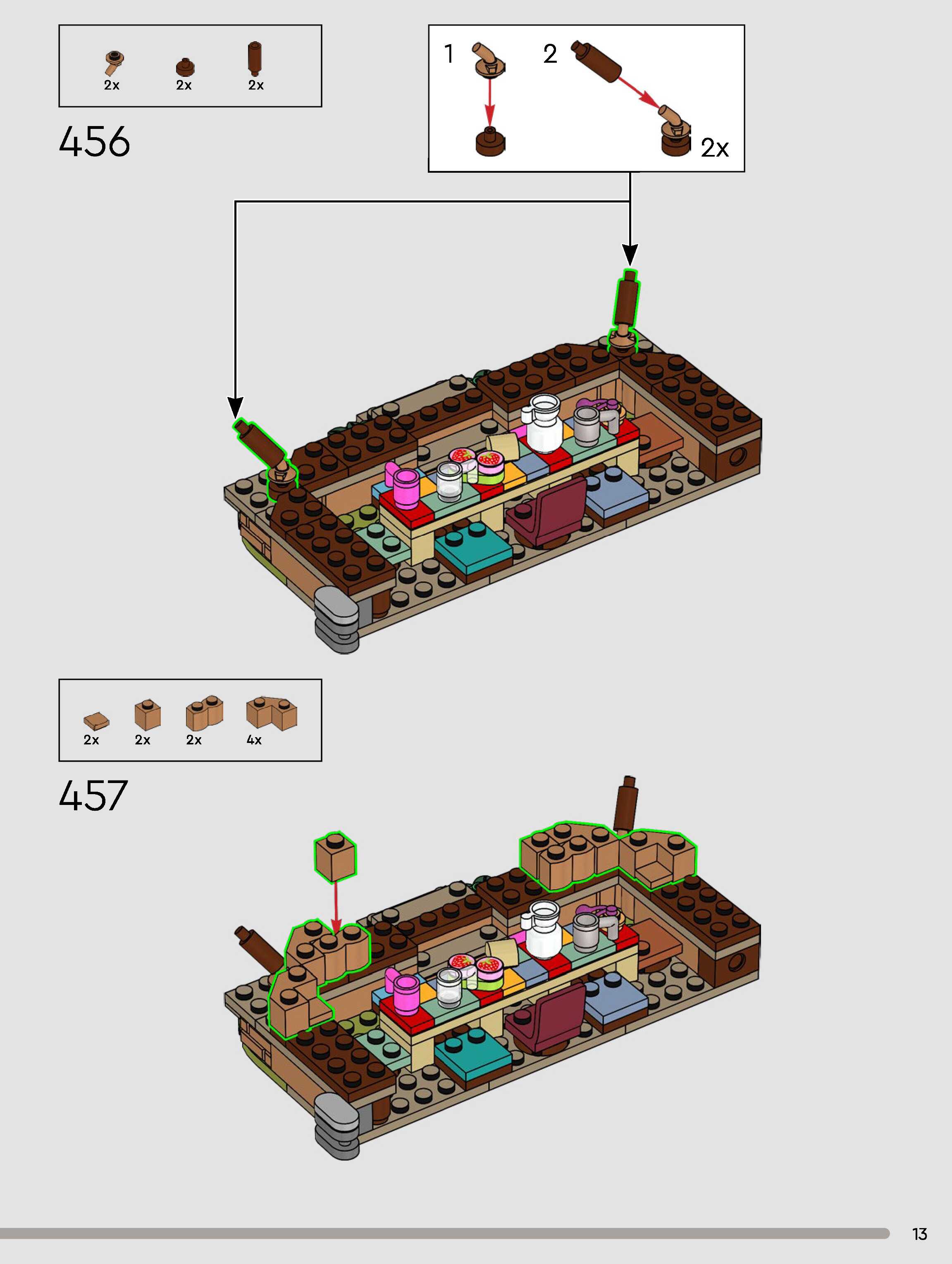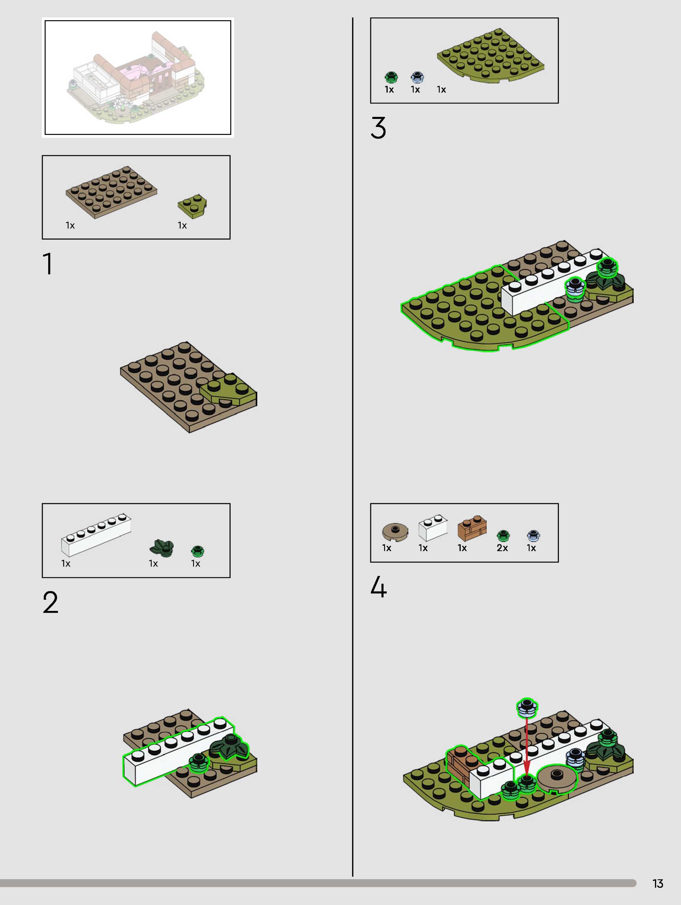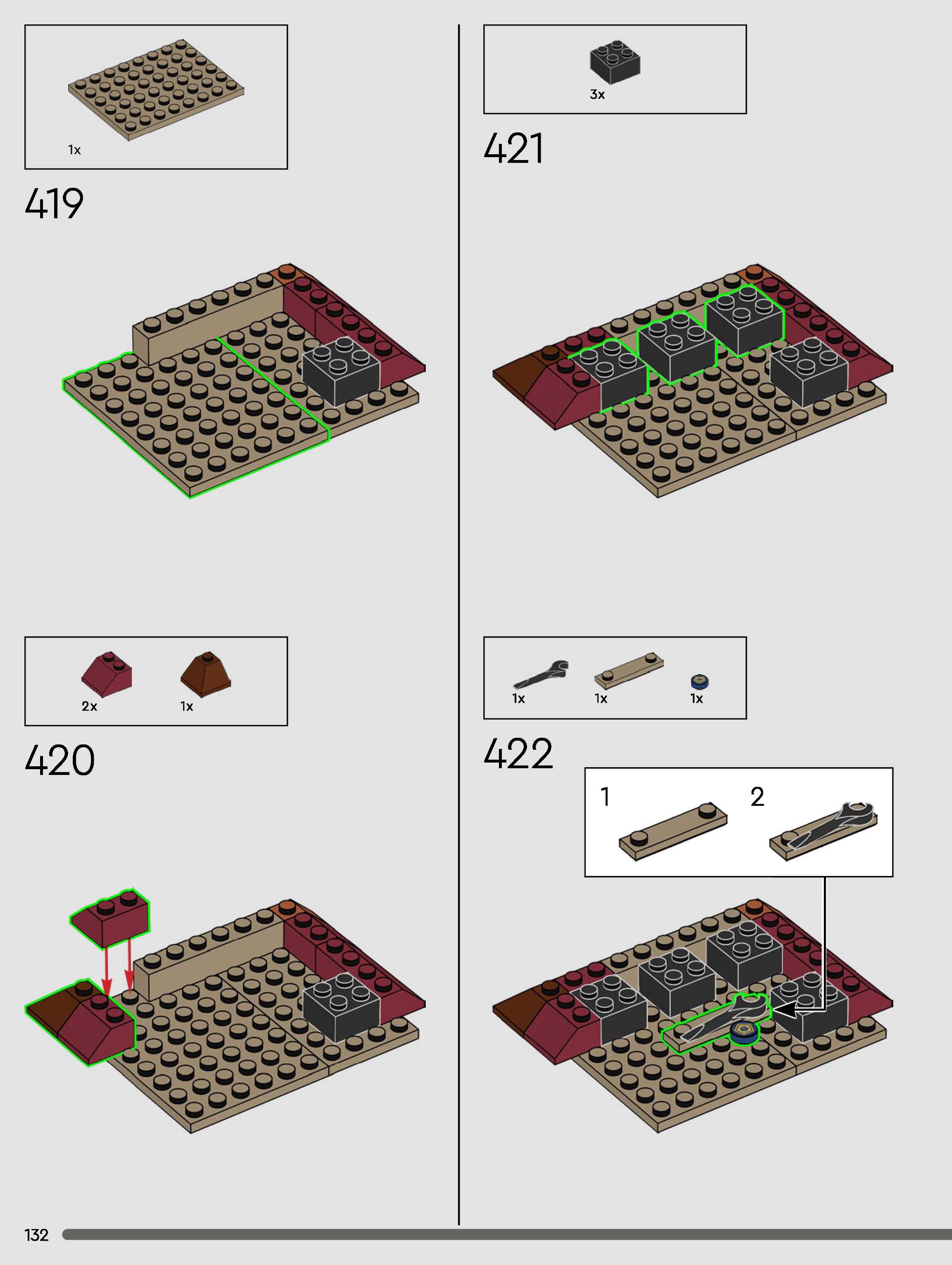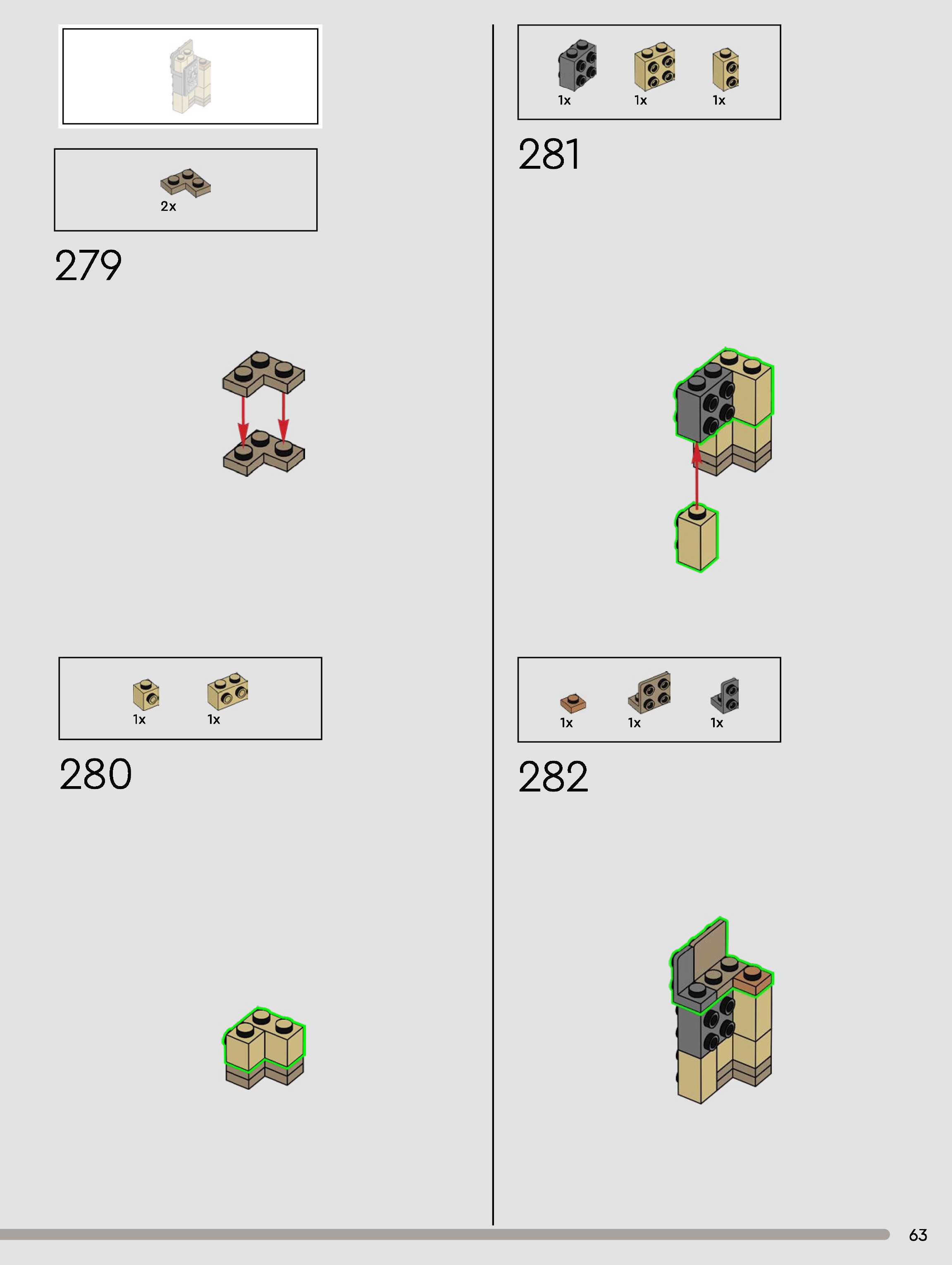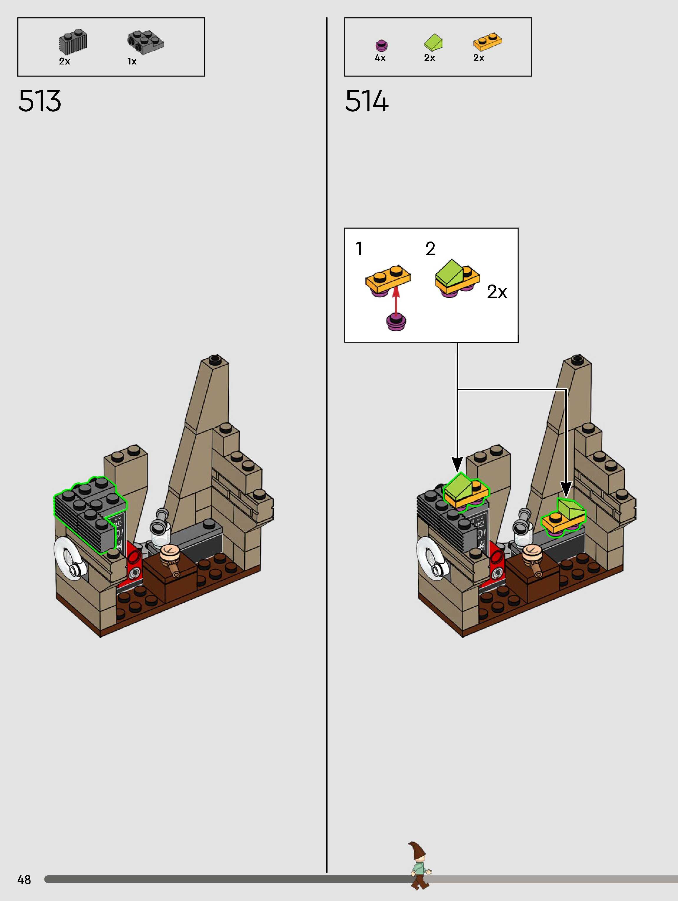 The assembly guide is prepared in a very understandable way for children and adult LEGO enthusiasts. A total of 432 picture galleries are shown, explaining the step-by-step construction stages for 3 different structures.
