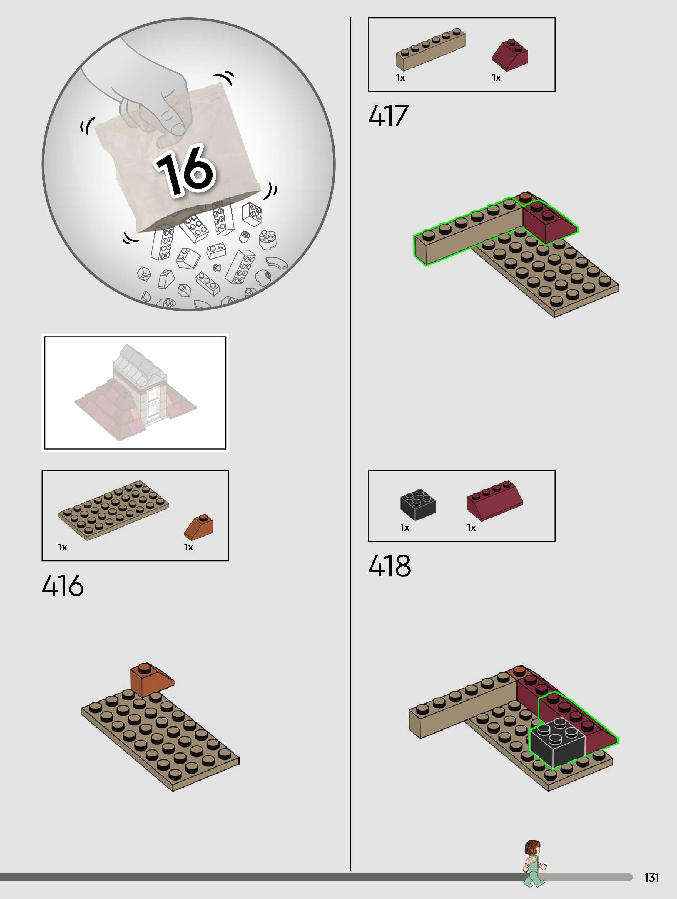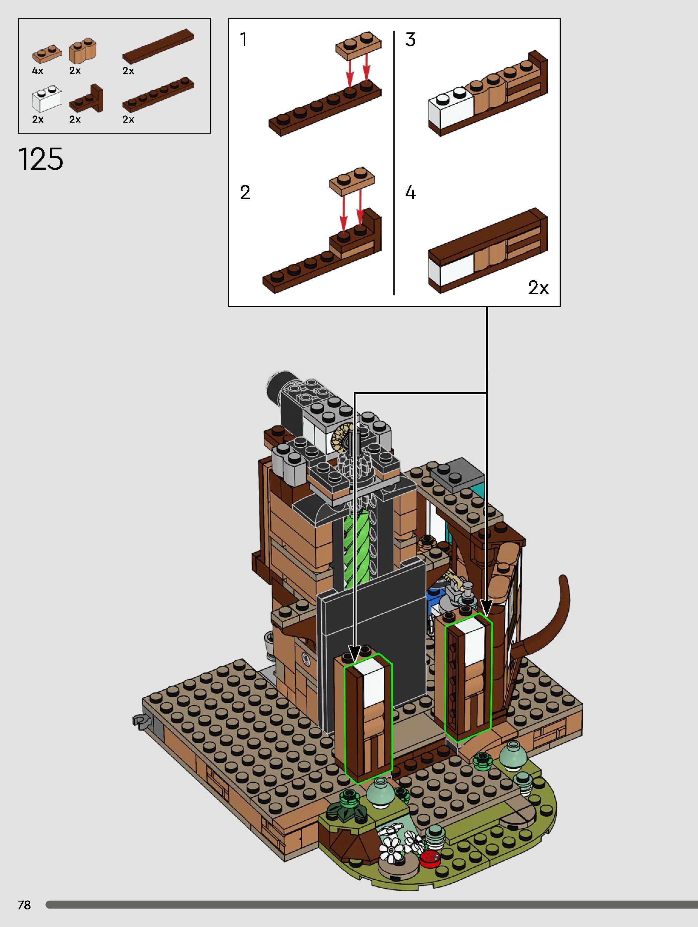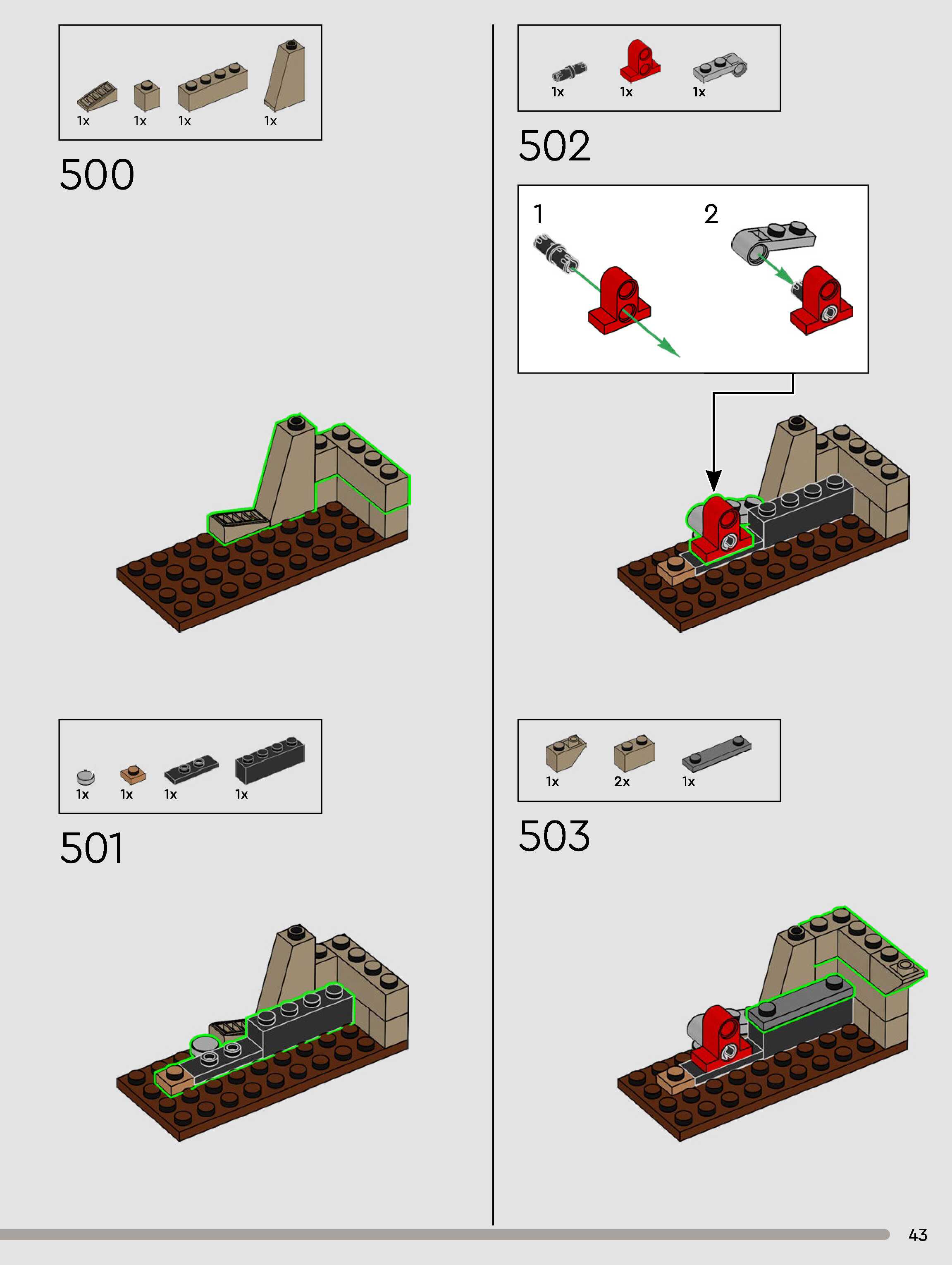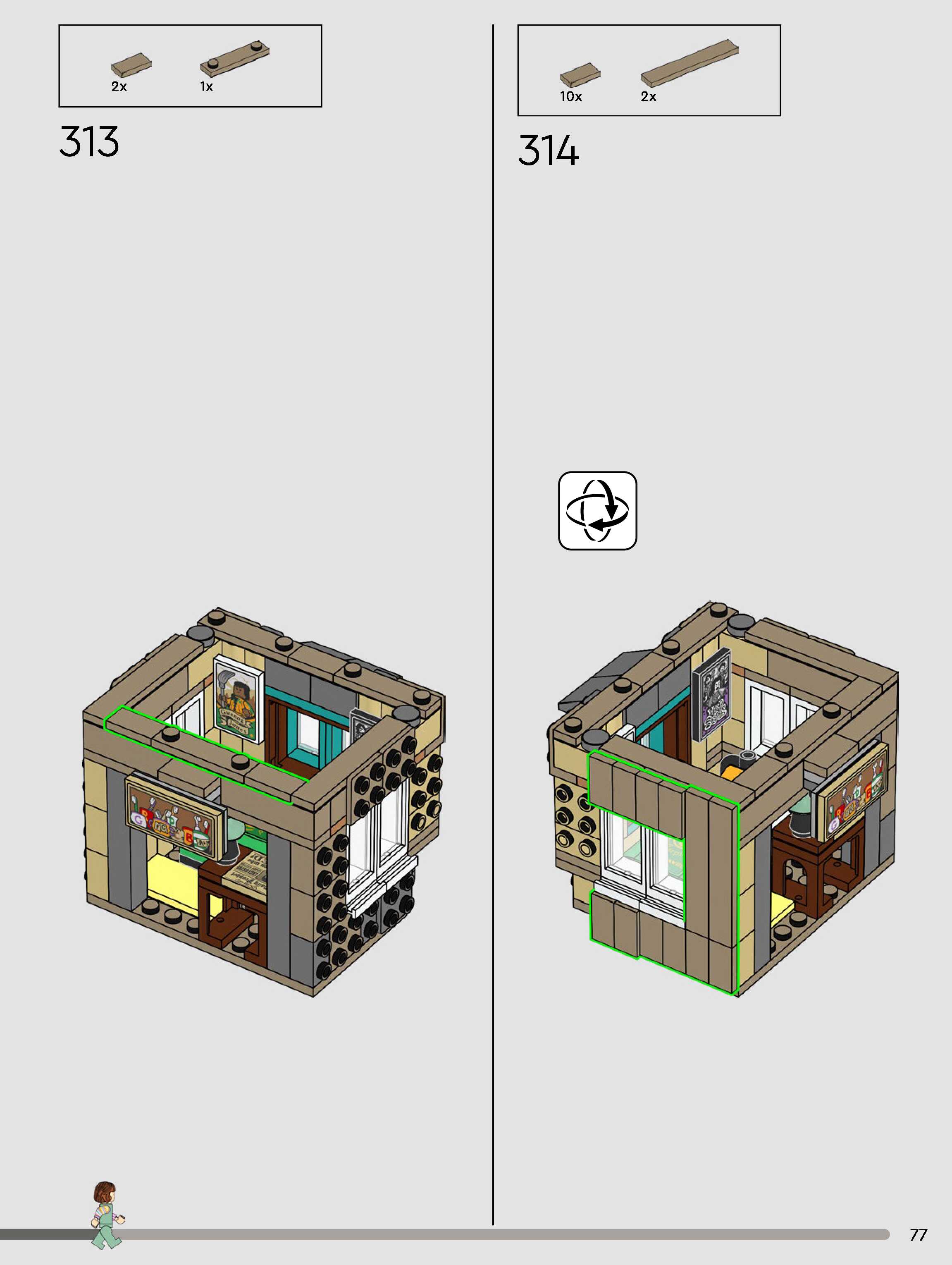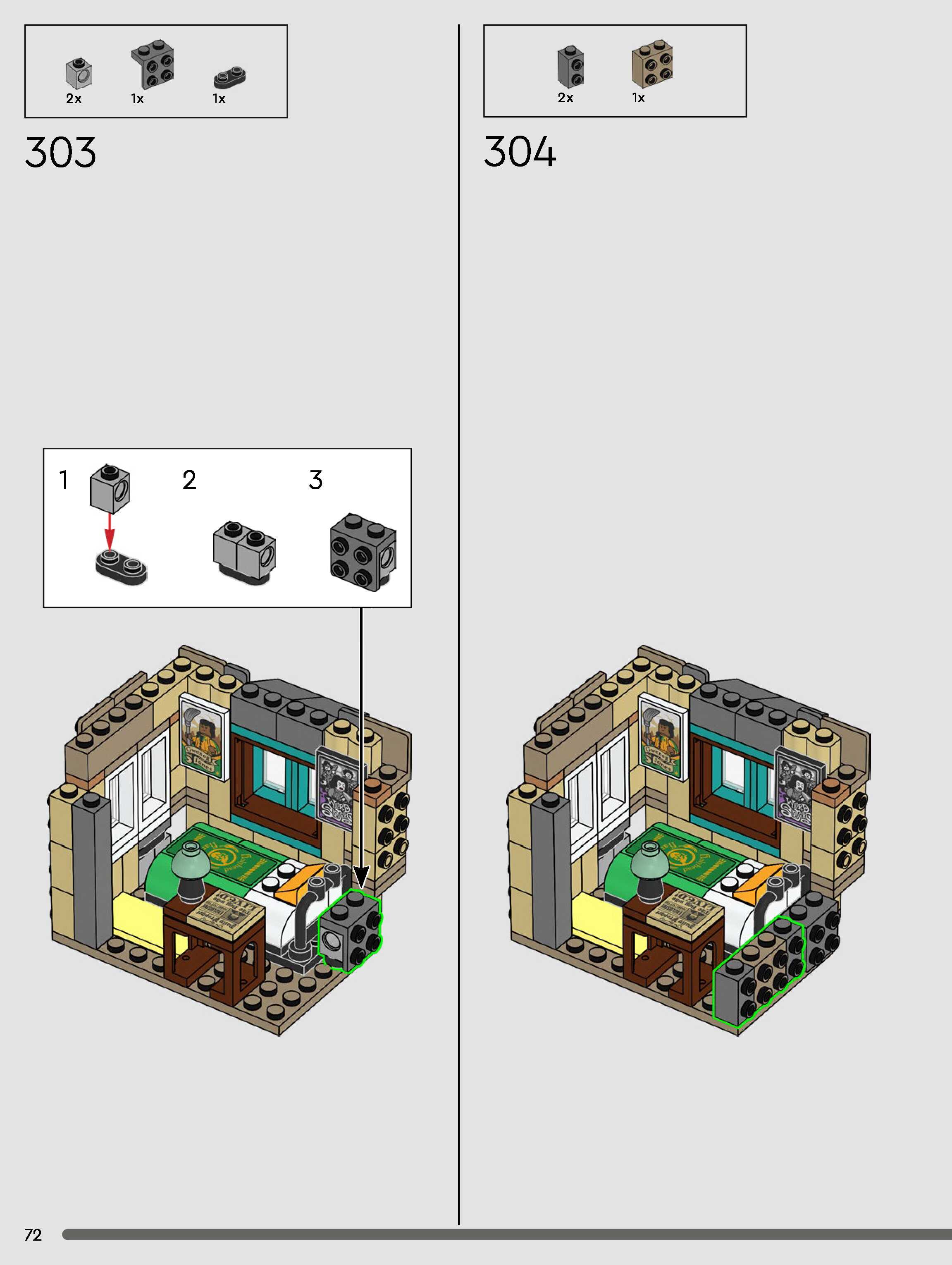 The assembly guide is prepared in a very understandable way for children and adult LEGO enthusiasts. A total of 432 picture galleries are shown, explaining the step-by-step construction stages for 3 different structures.