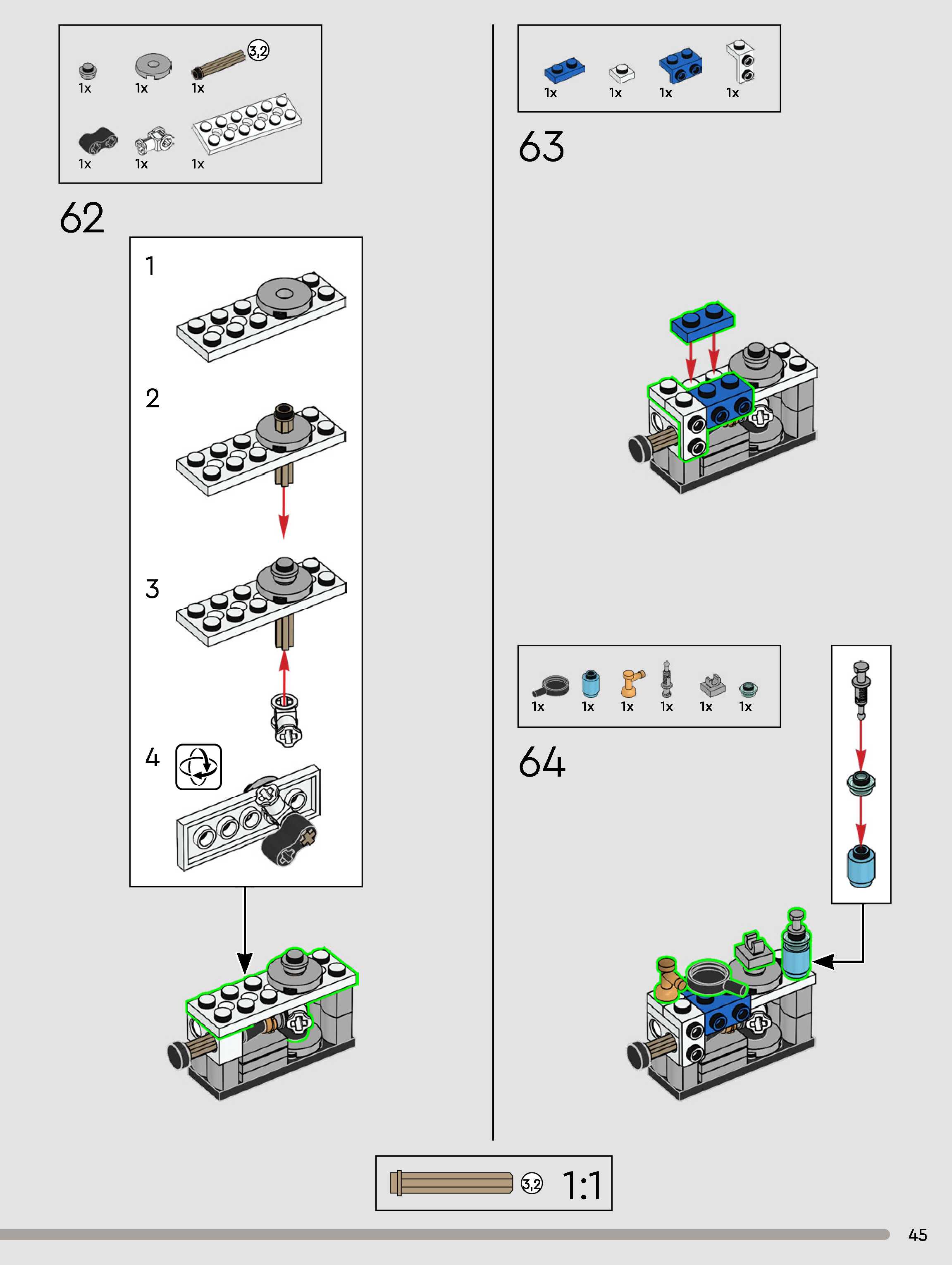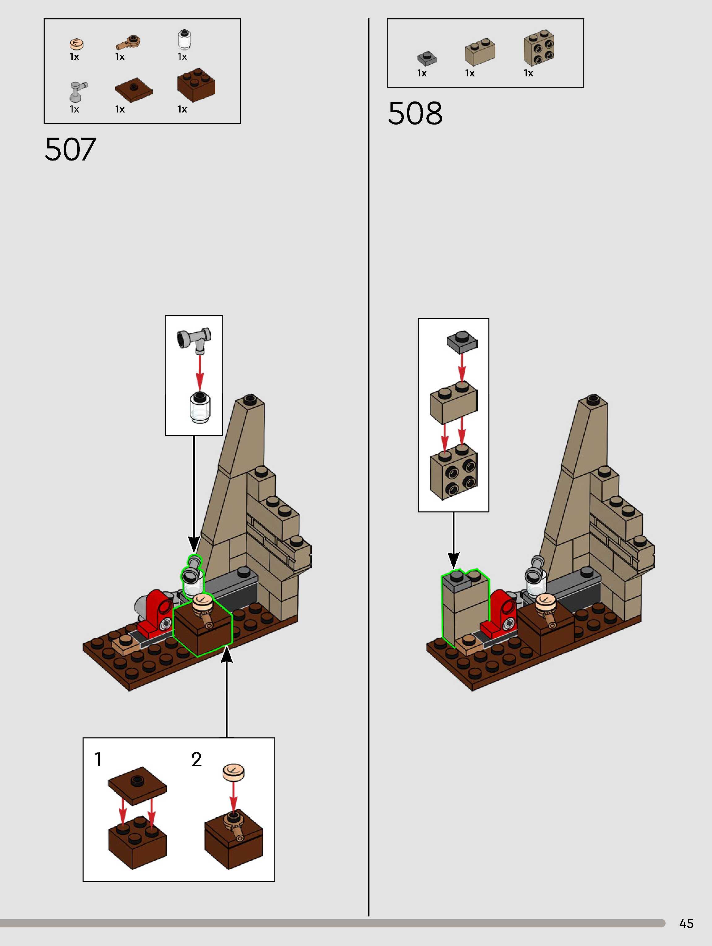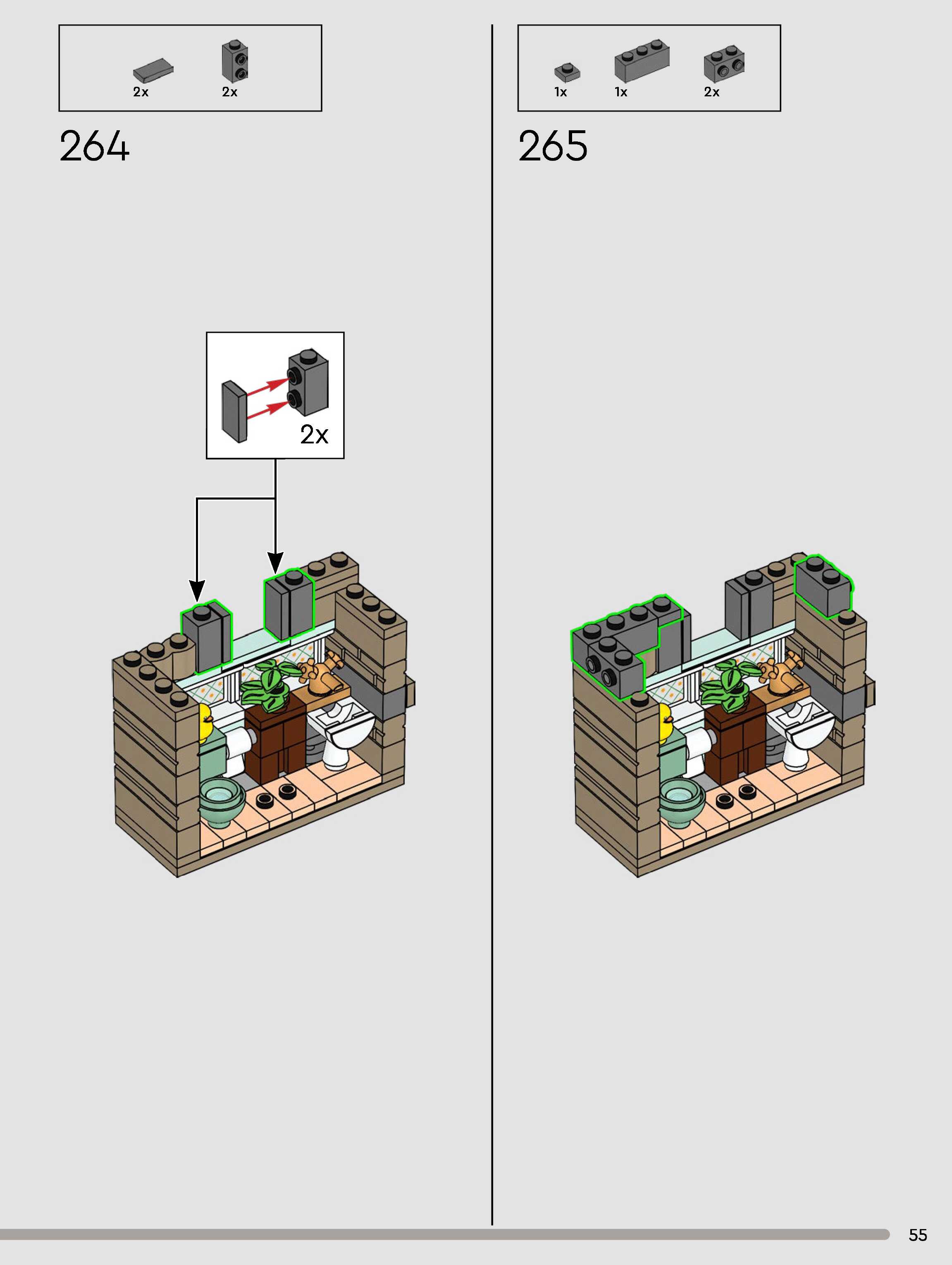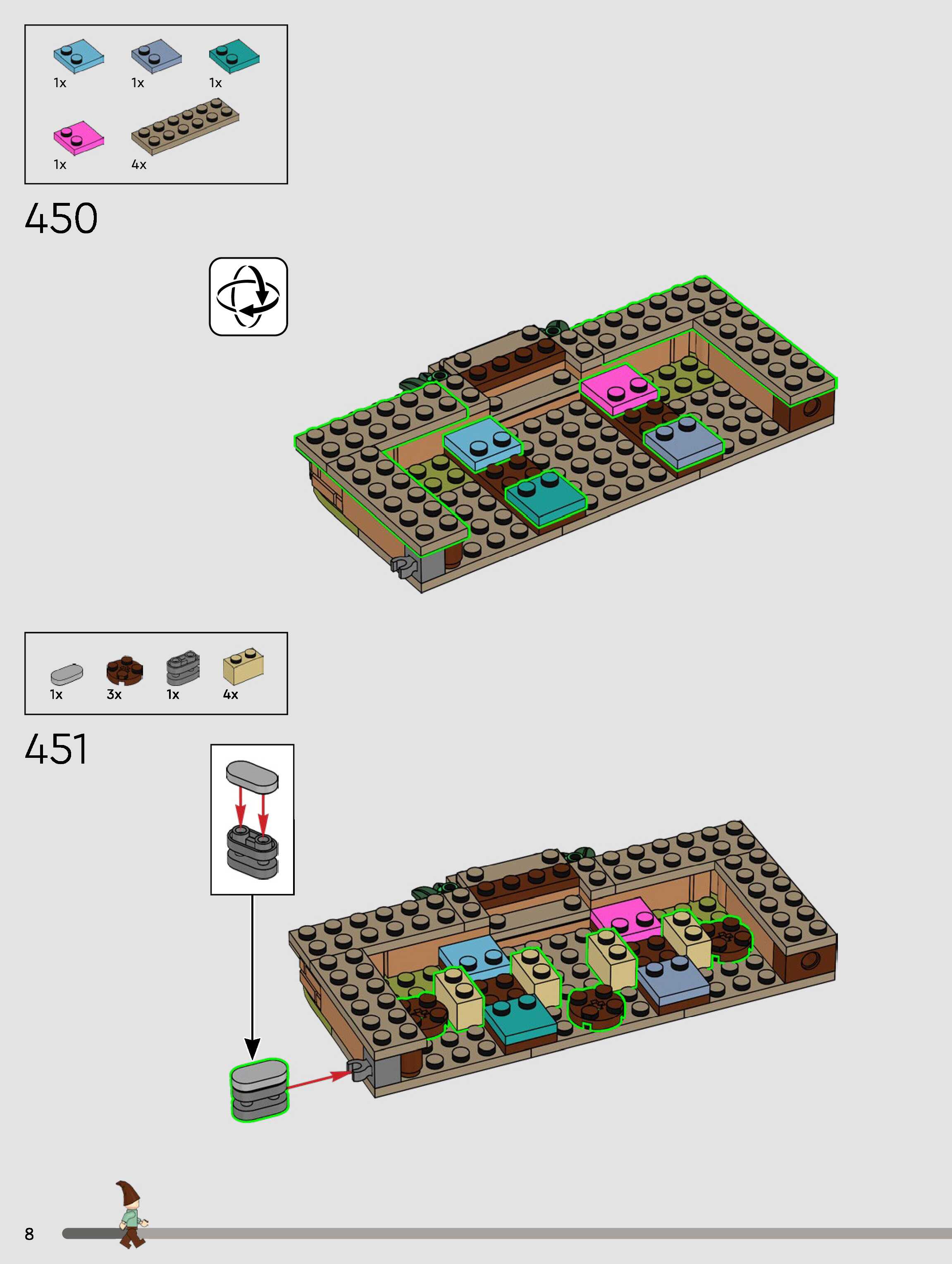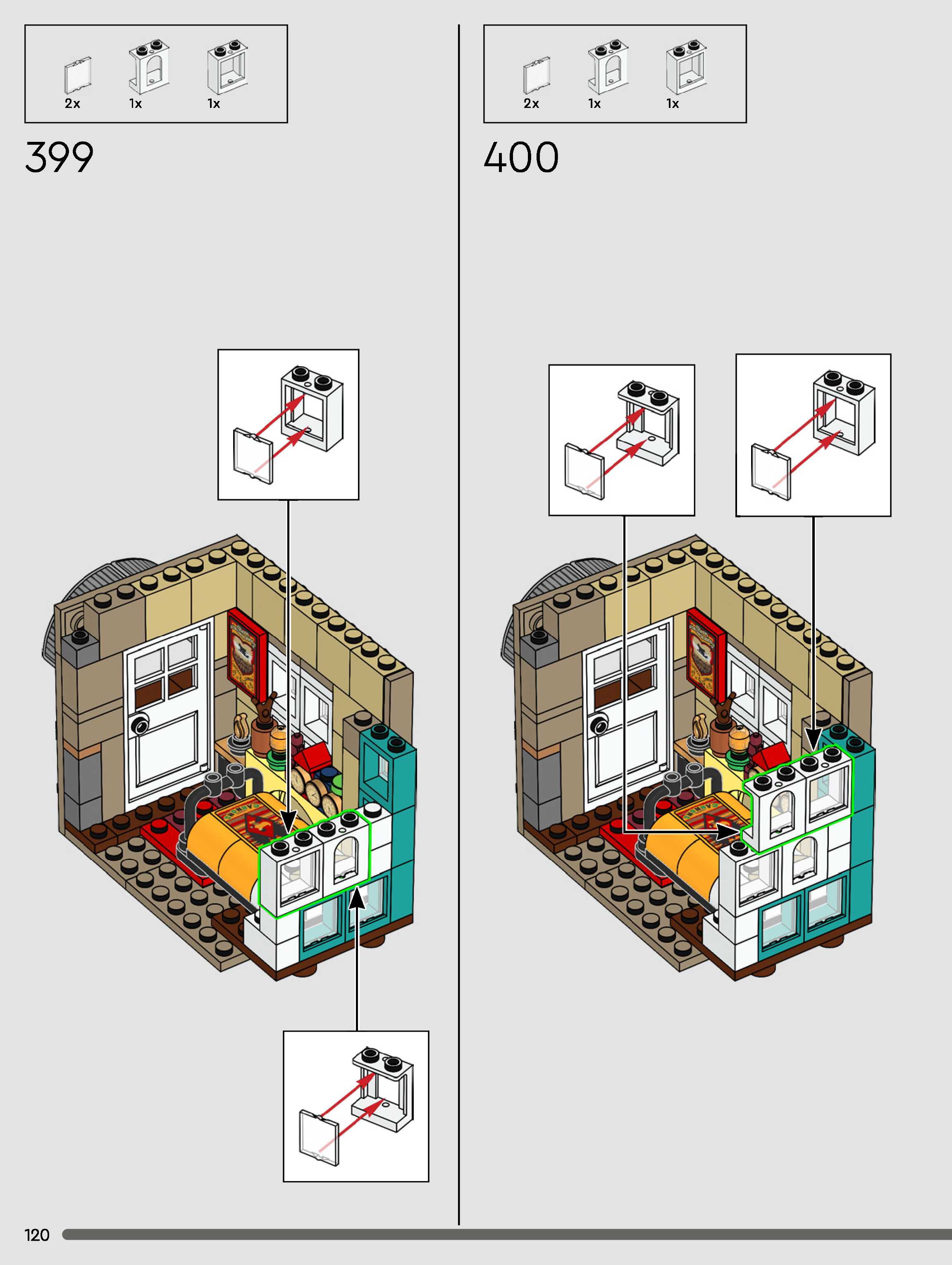 The assembly guide is prepared in a very understandable way for children and adult LEGO enthusiasts. A total of 432 picture galleries are shown, explaining the step-by-step construction stages for 3 different structures.