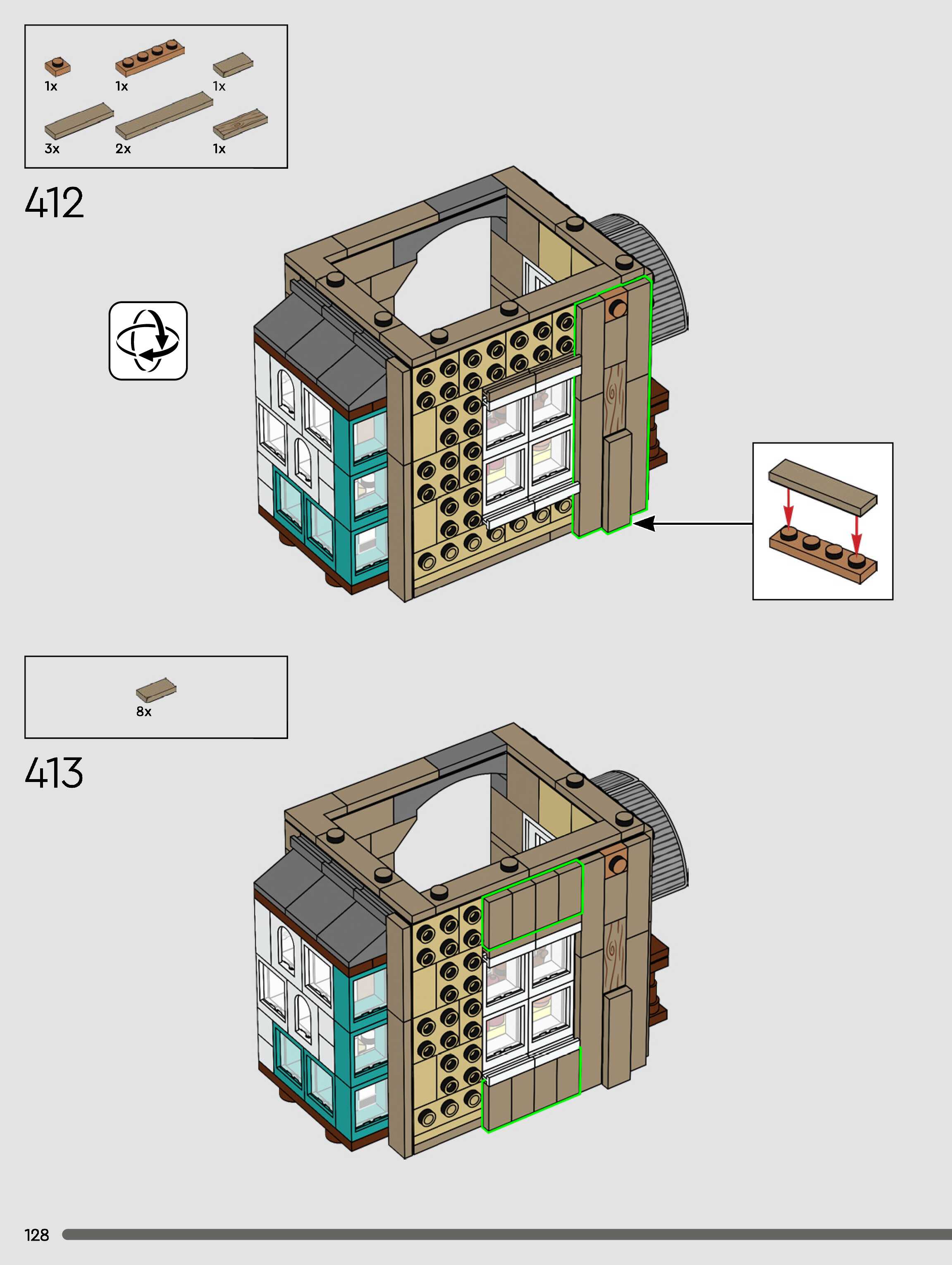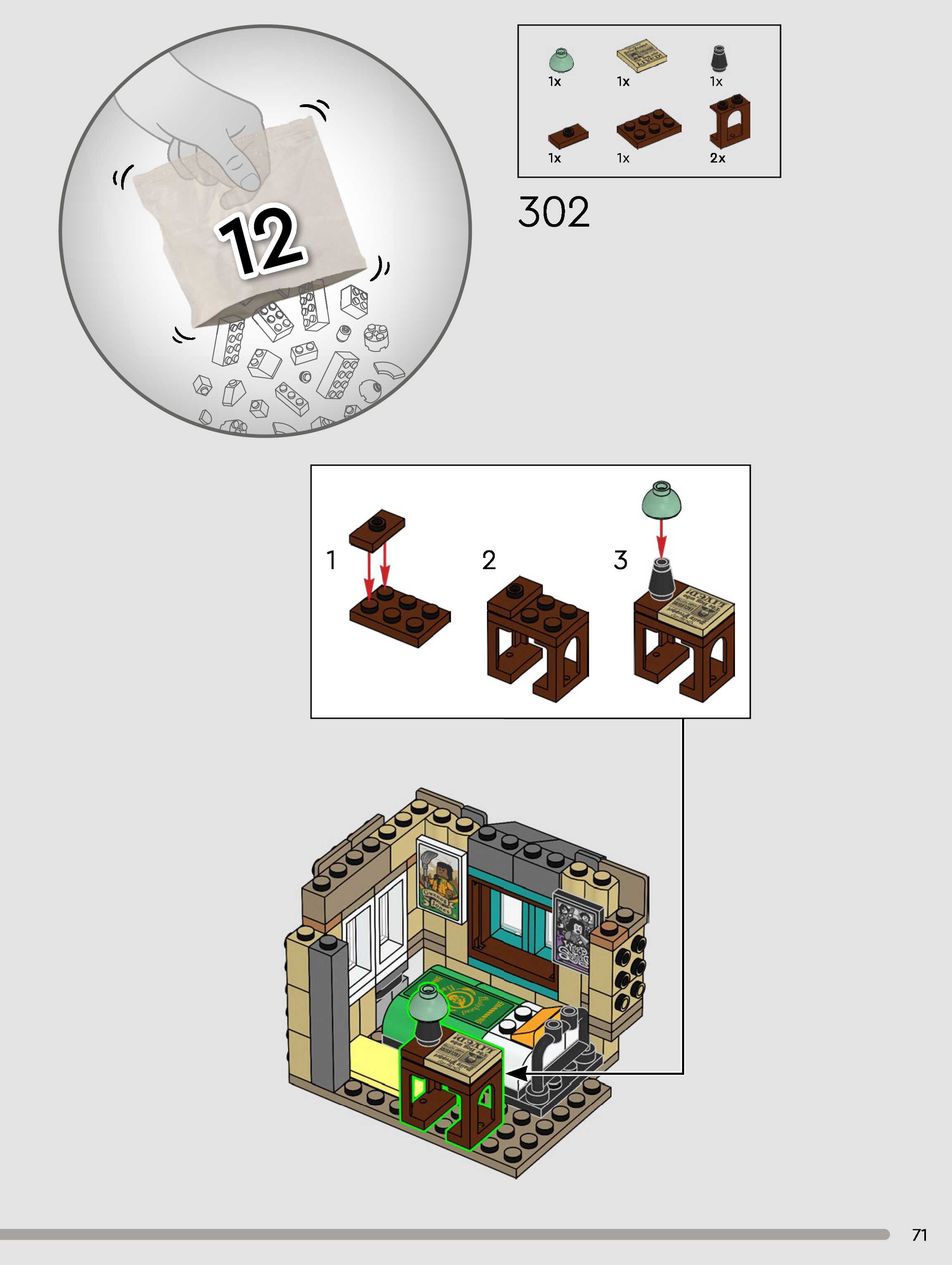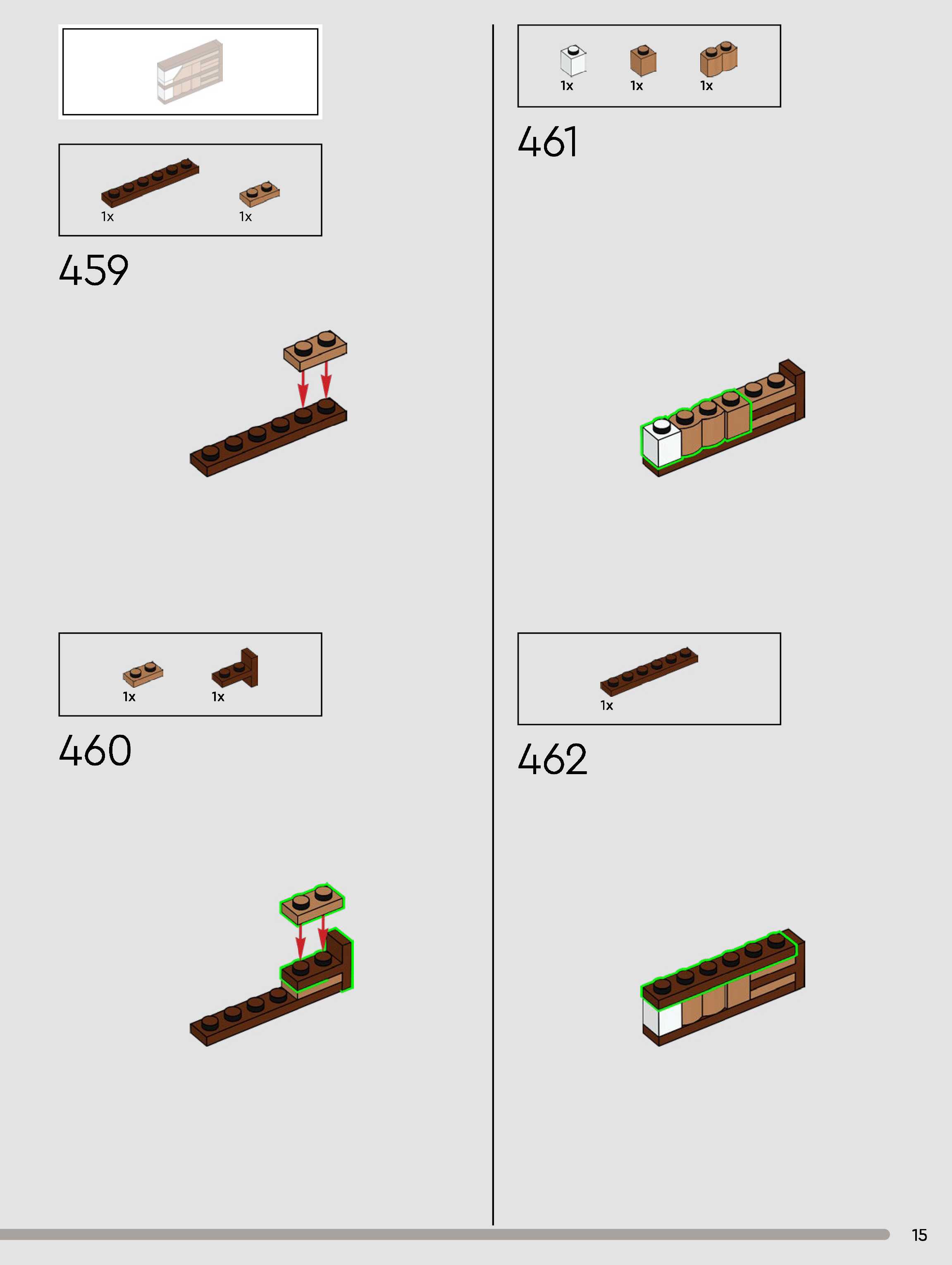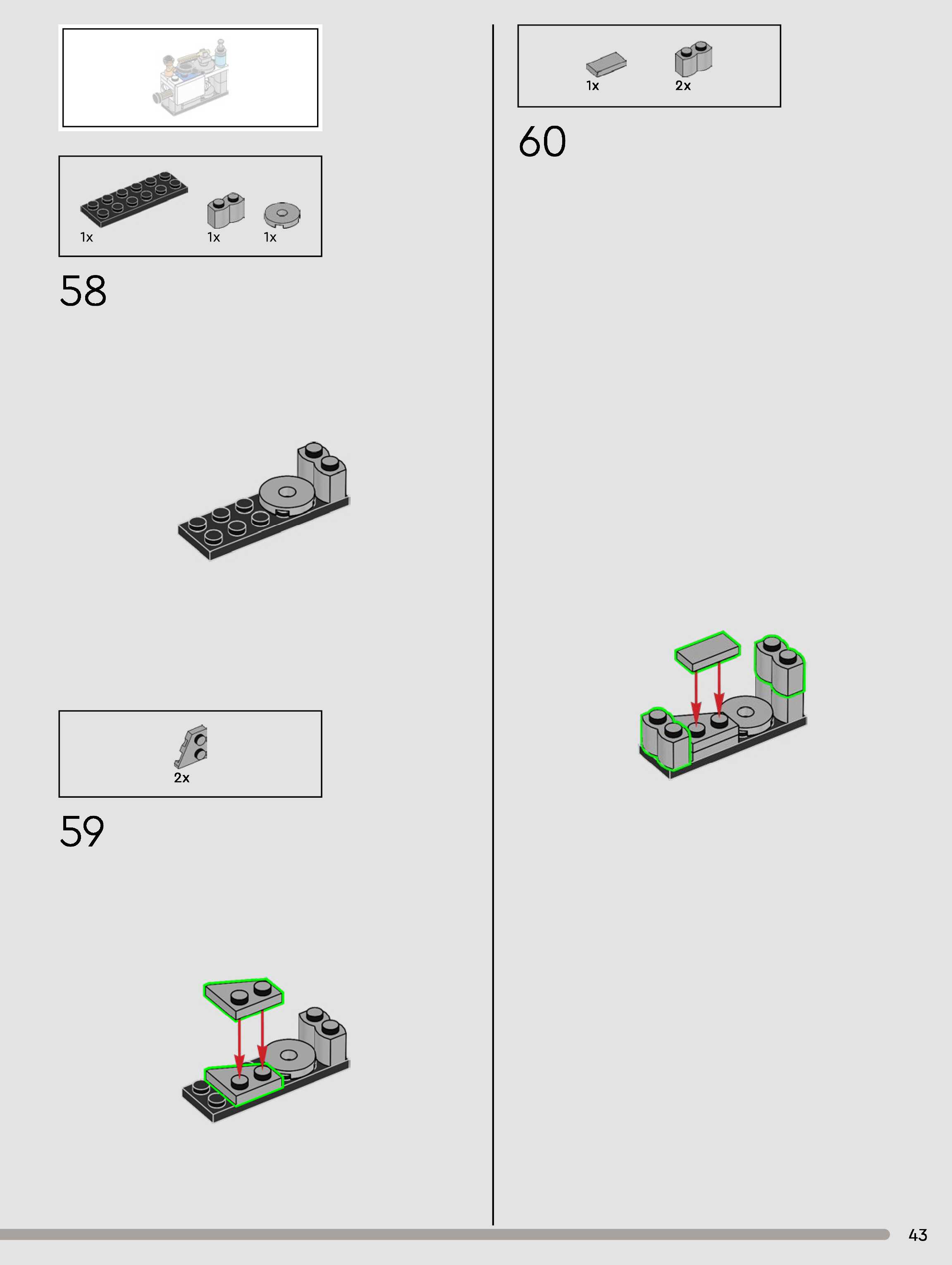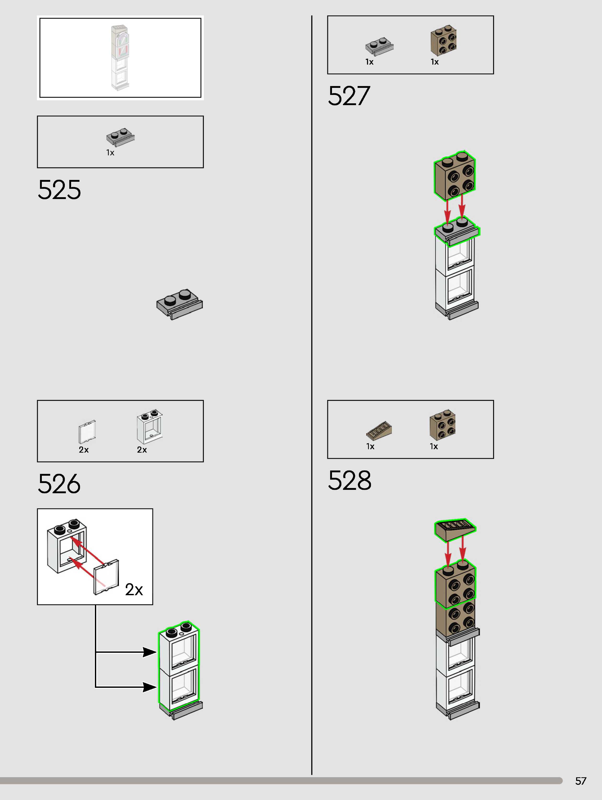 The assembly guide is prepared in a very understandable way for children and adult LEGO enthusiasts. A total of 432 picture galleries are shown, explaining the step-by-step construction stages for 3 different structures.