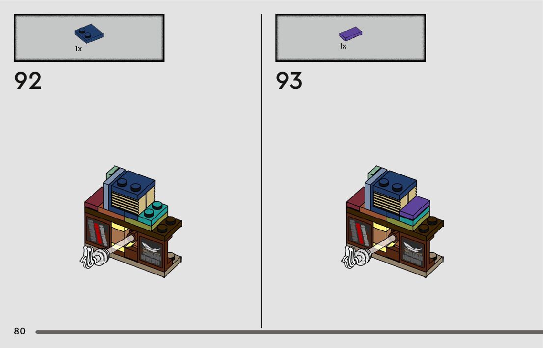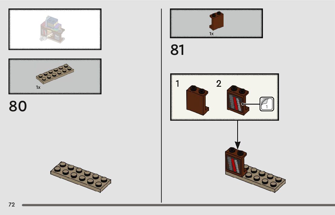 The assembly guide is prepared in a very understandable way for children and adult LEGO enthusiasts. A total of 96 picture galleries are shown, explaining the step-by-step construction stages for 1 different structures.