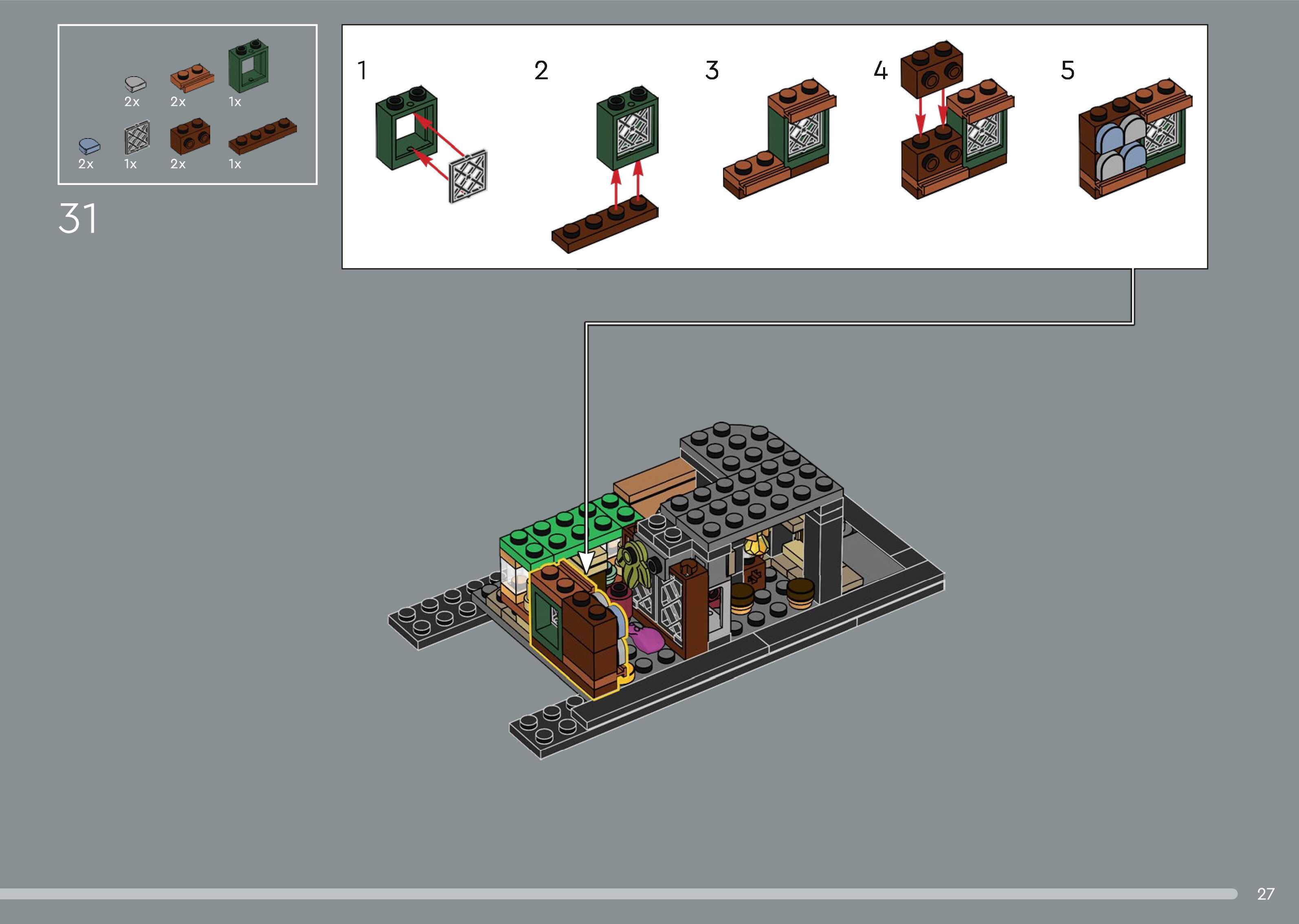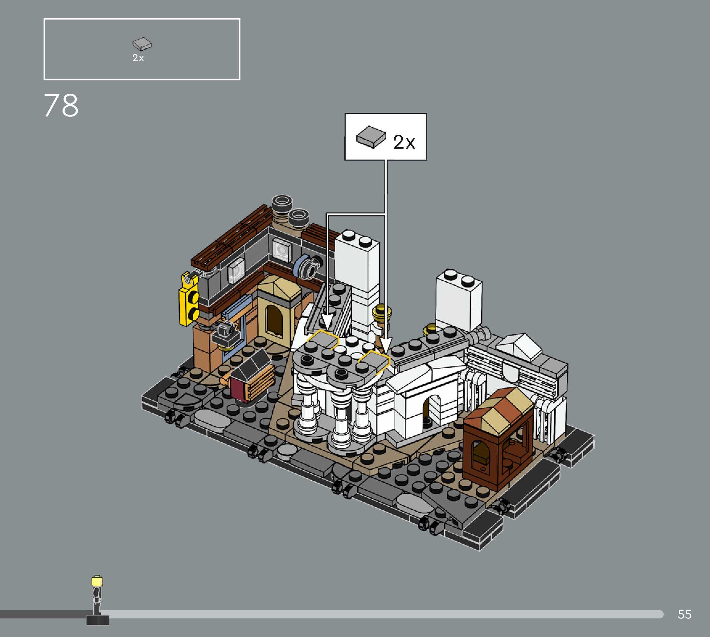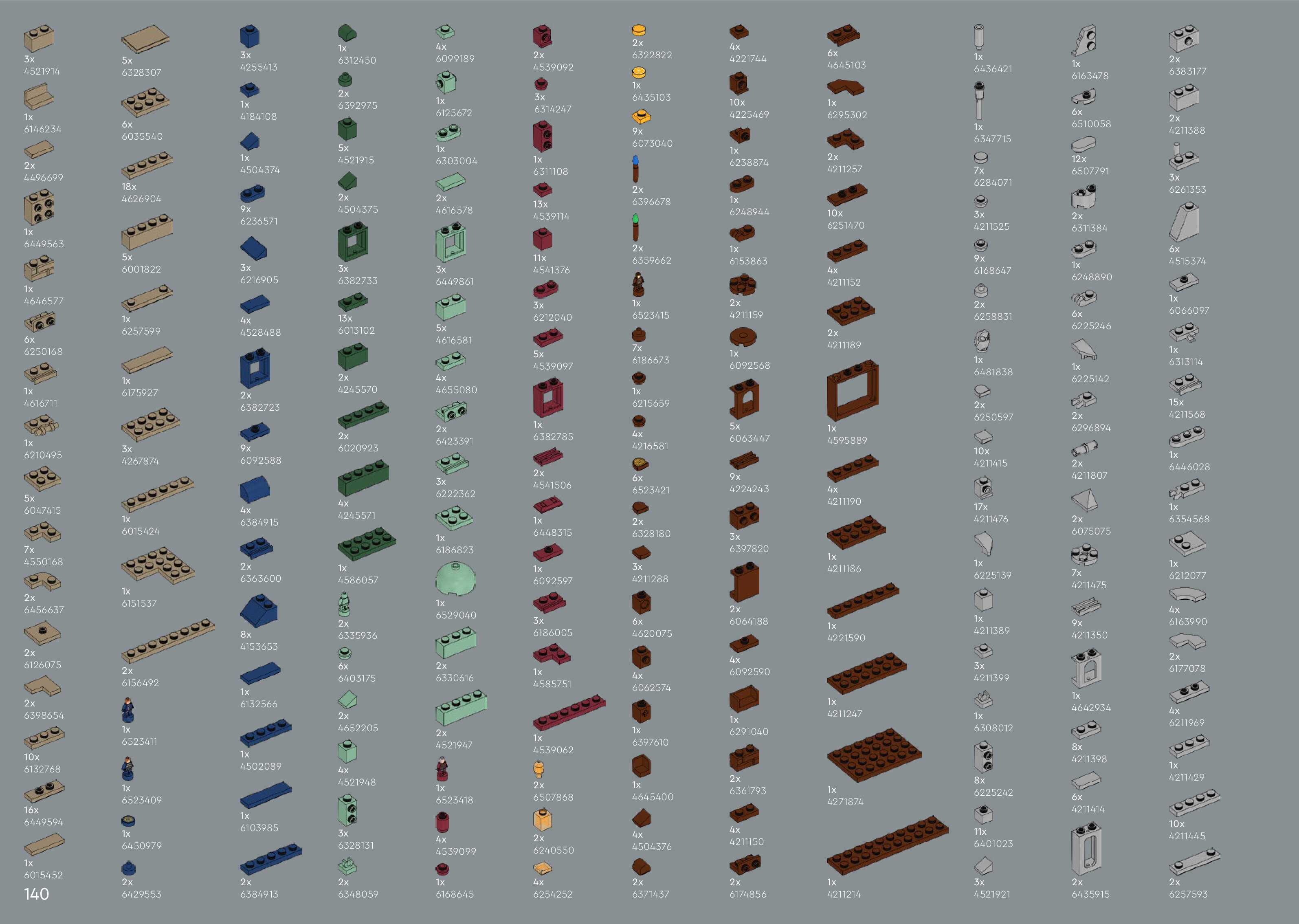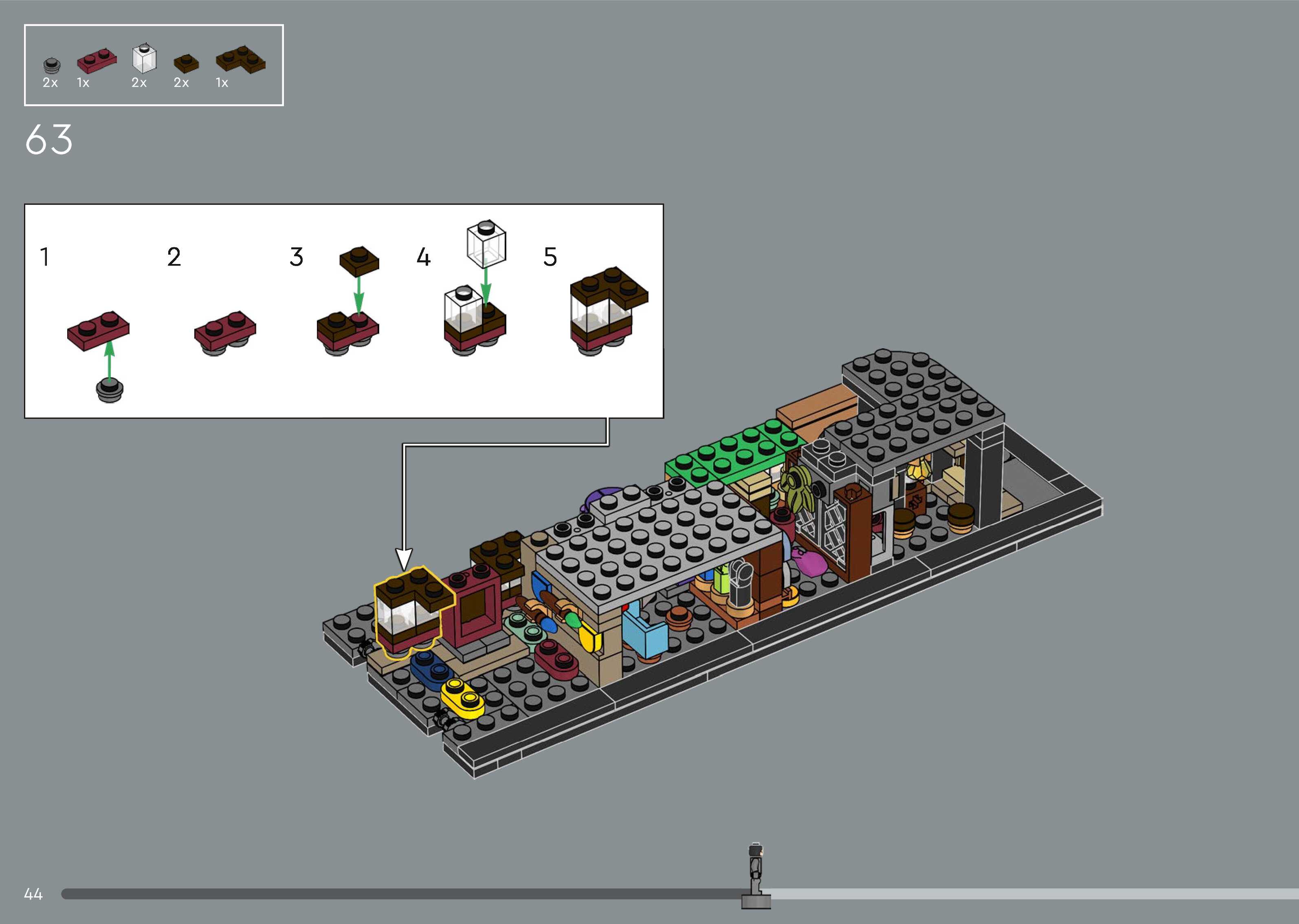 The assembly guide is prepared in a very understandable way for children and adult LEGO enthusiasts. A total of 544 picture galleries are shown, explaining the step-by-step construction stages for 5 different structures.