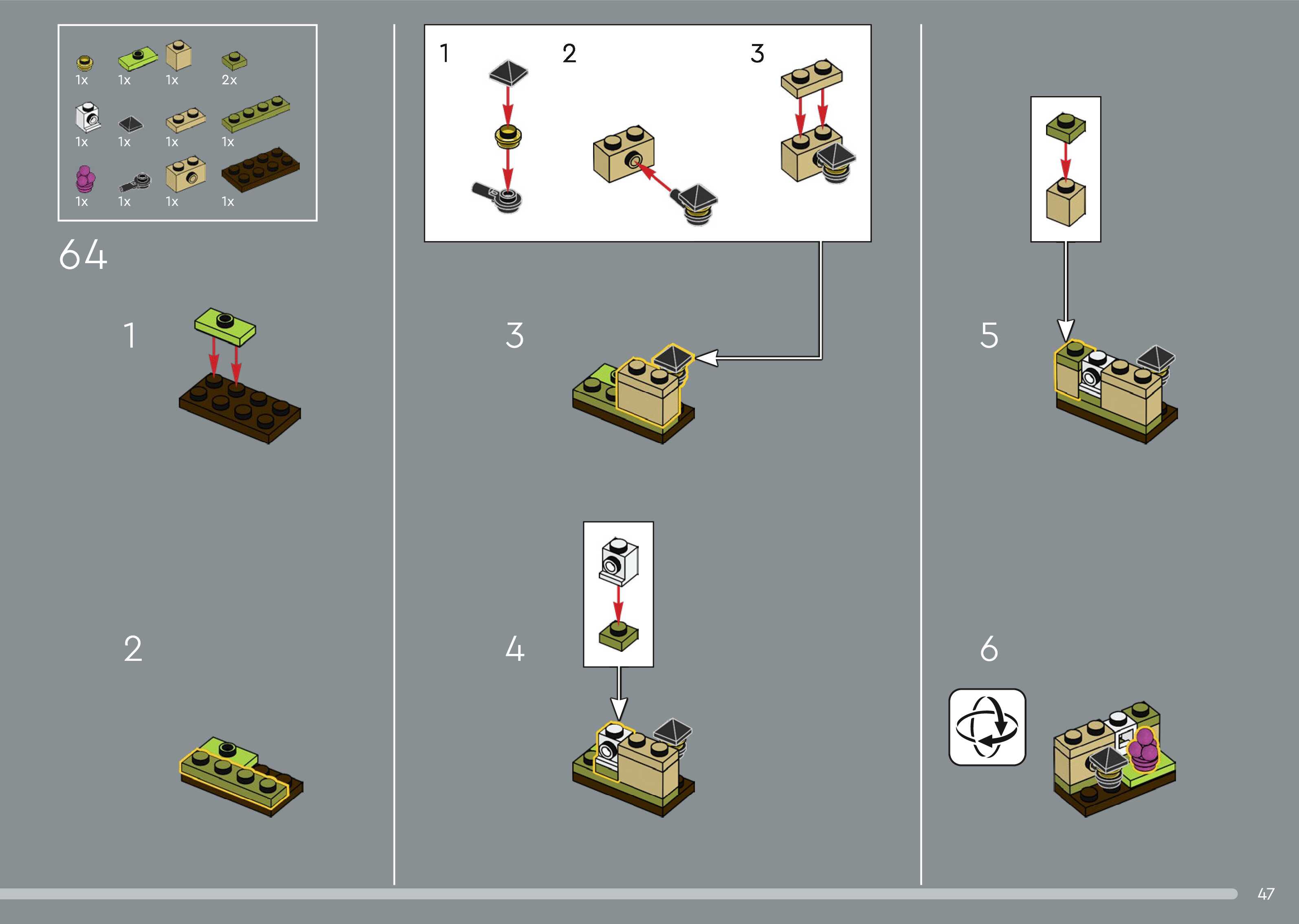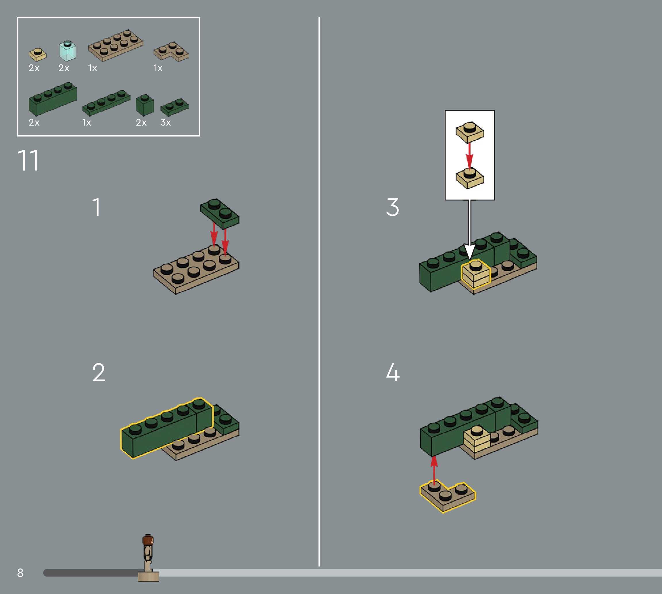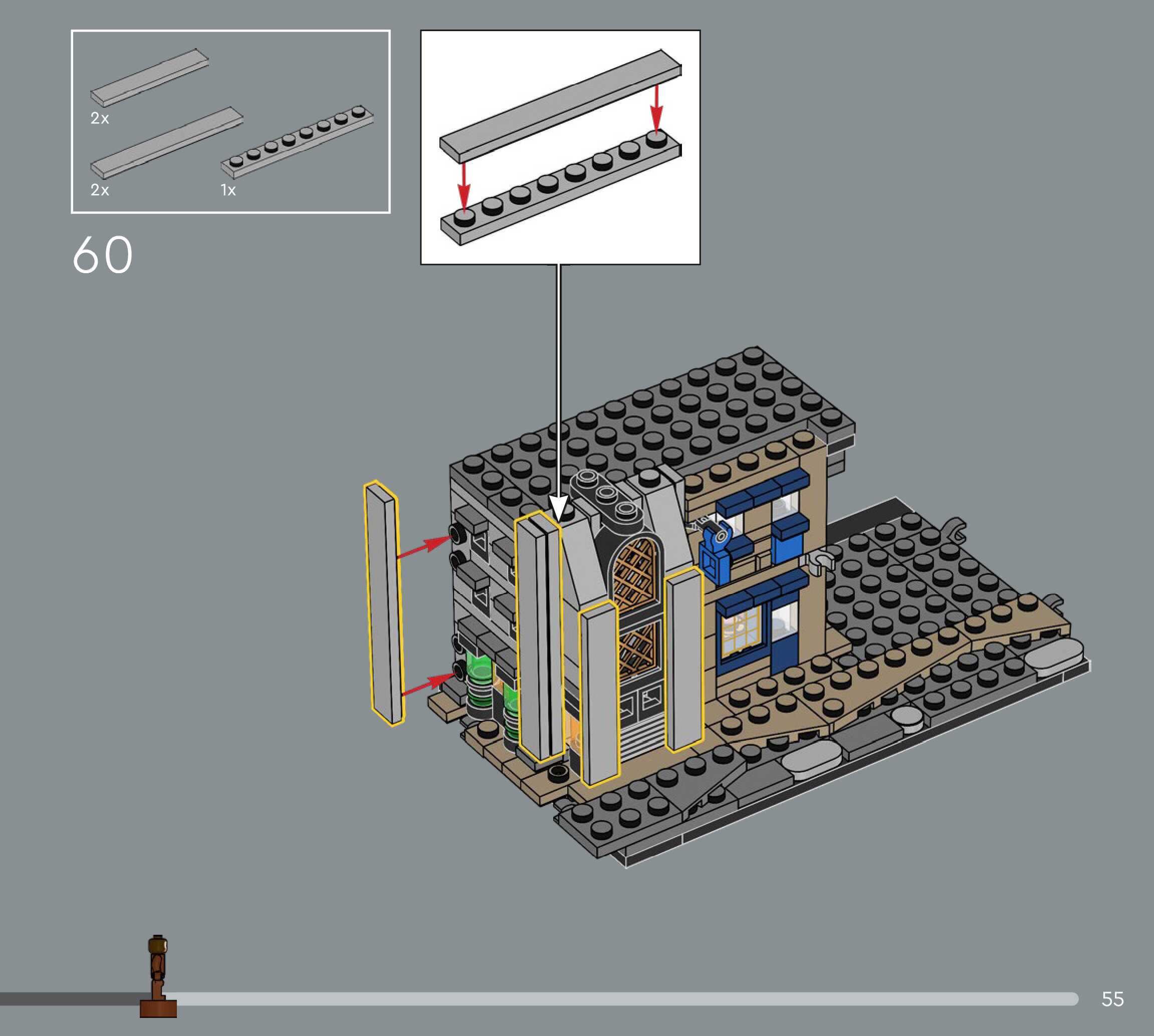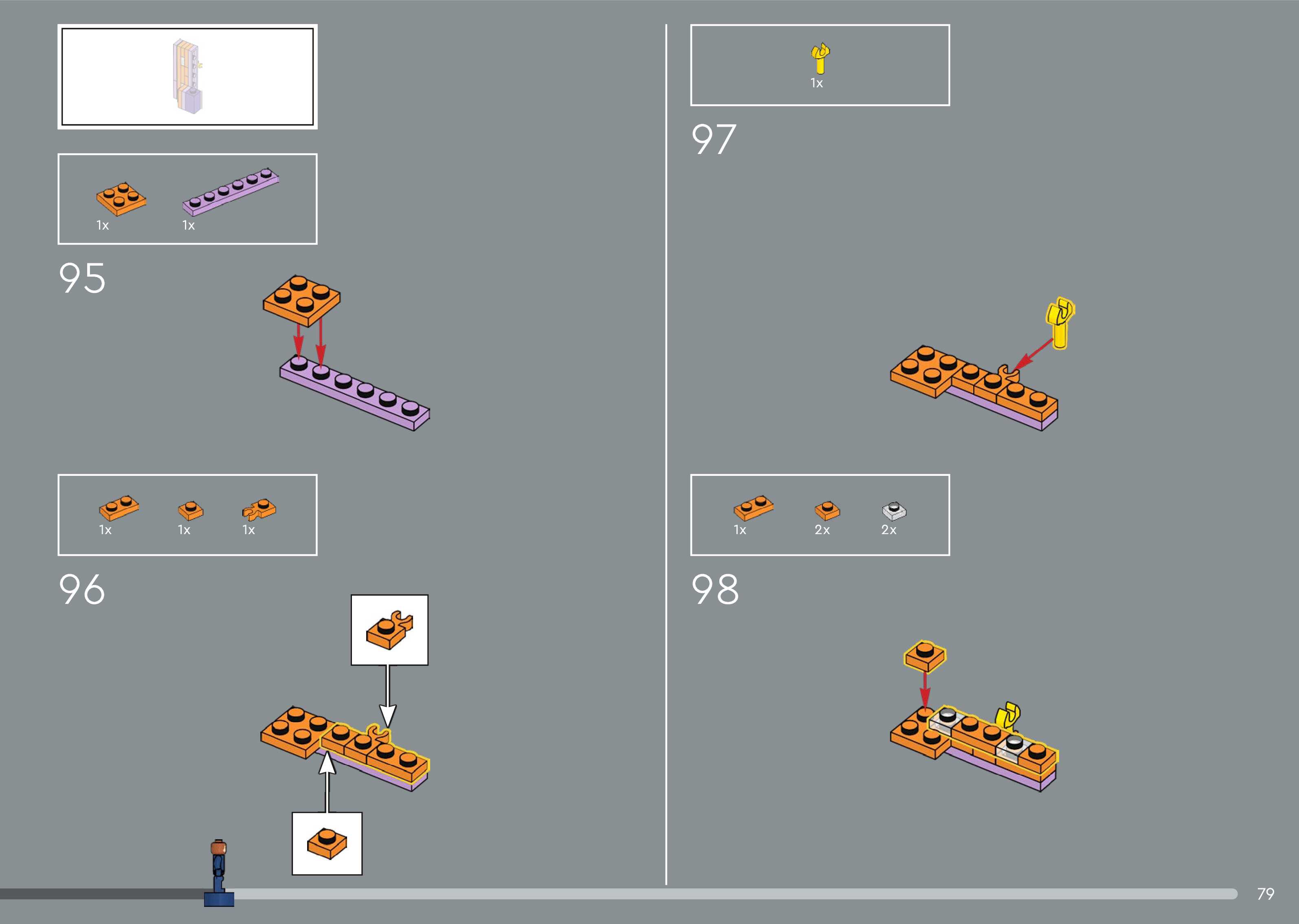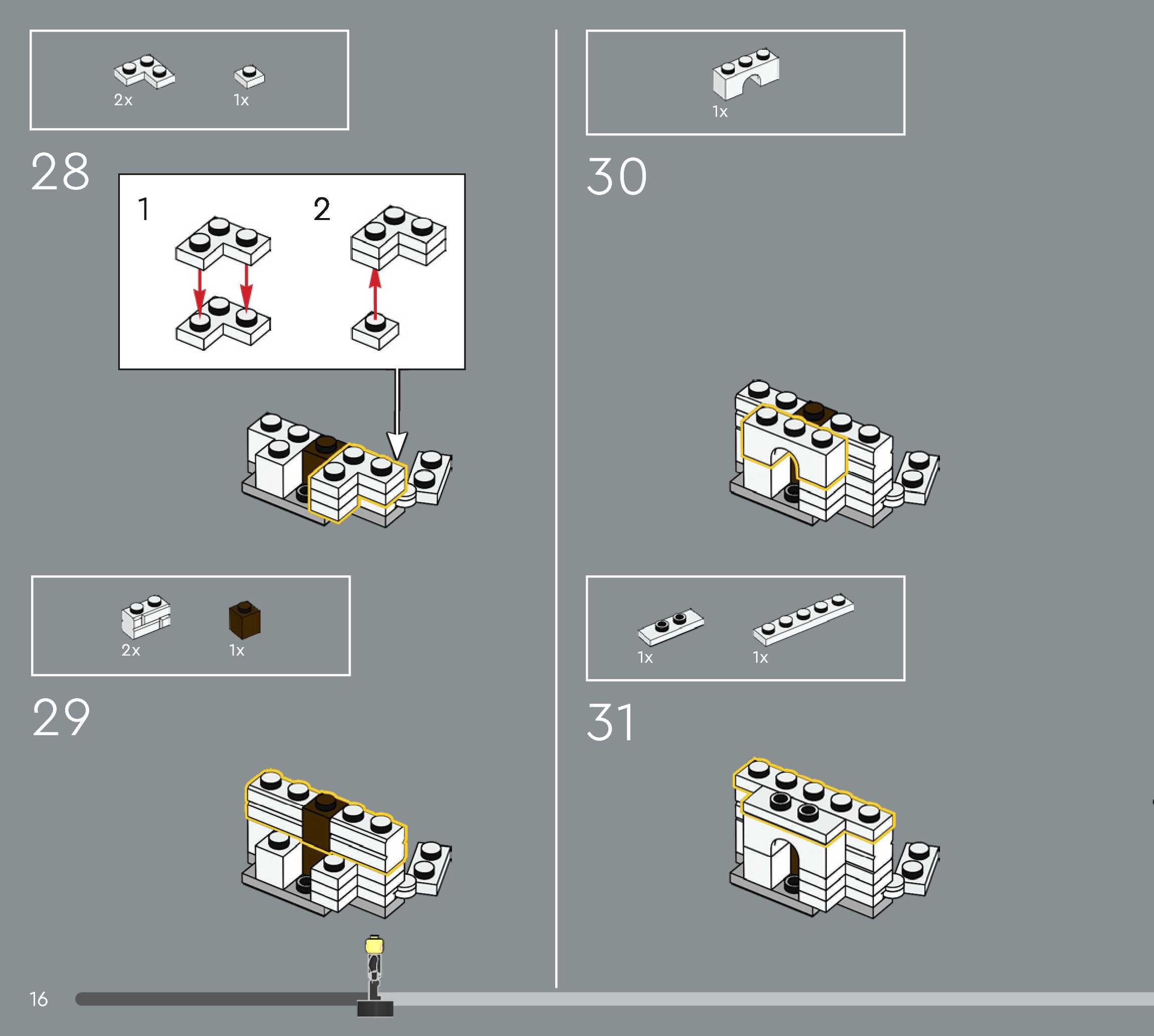 The assembly guide is prepared in a very understandable way for children and adult LEGO enthusiasts. A total of 544 picture galleries are shown, explaining the step-by-step construction stages for 5 different structures.