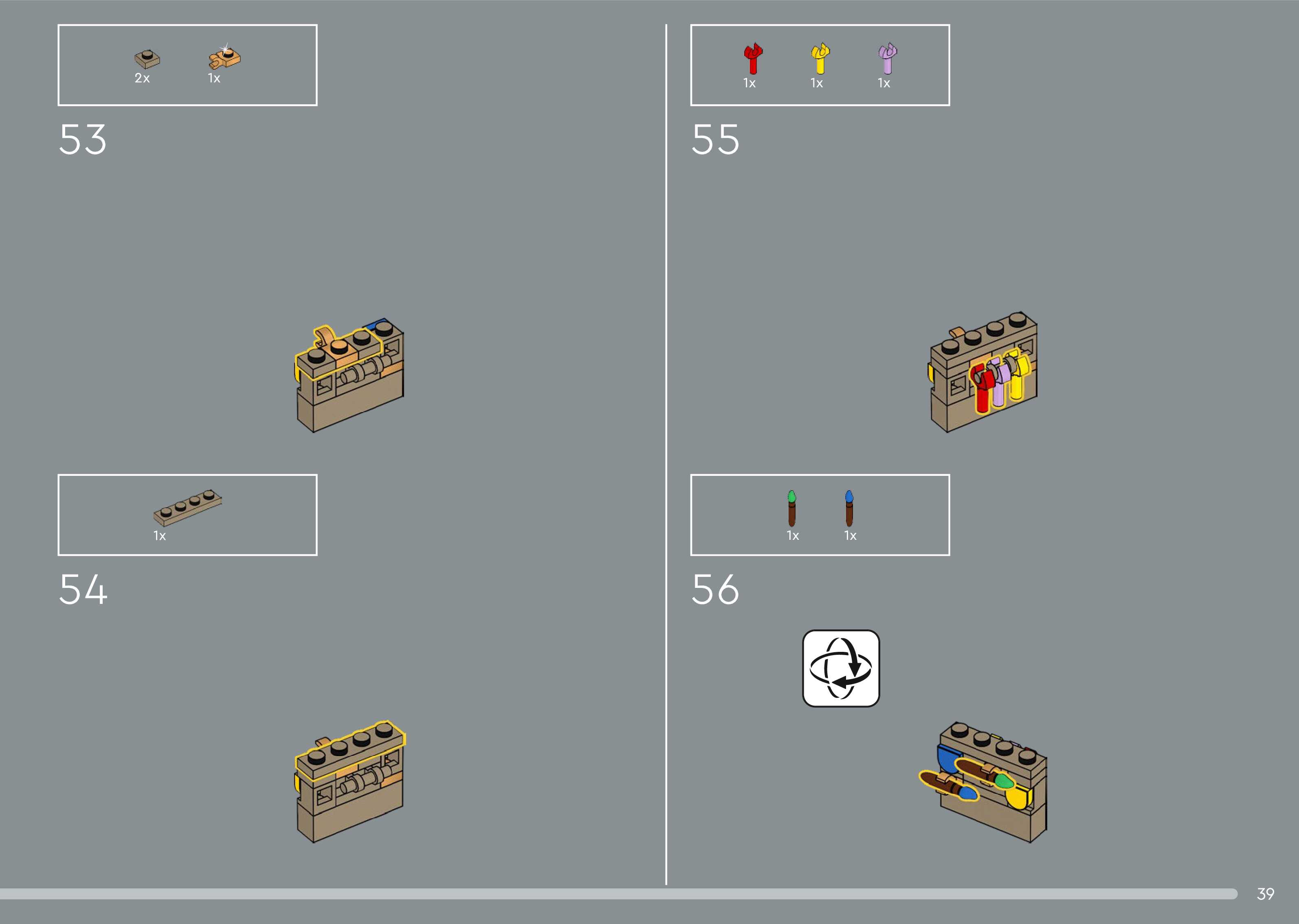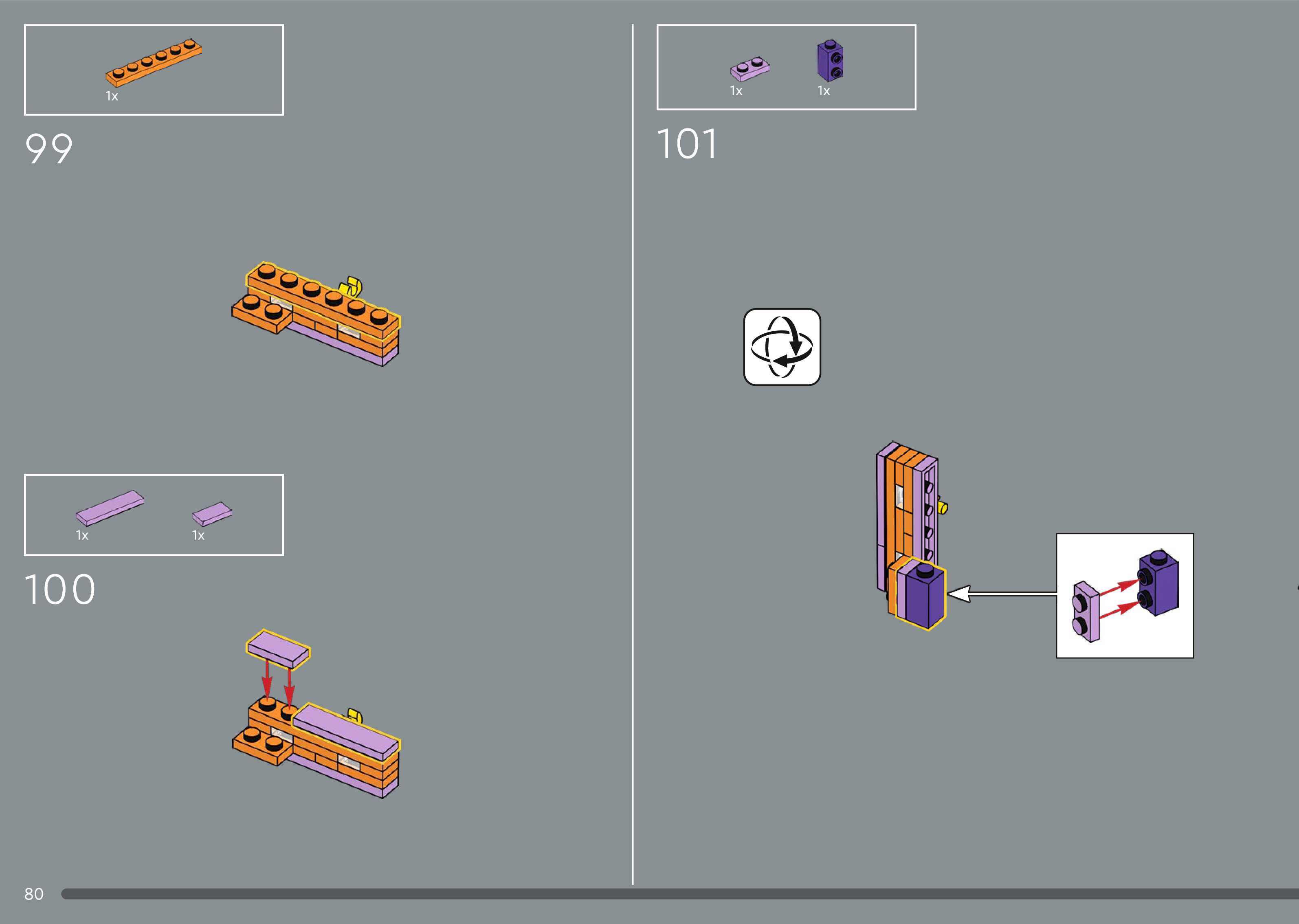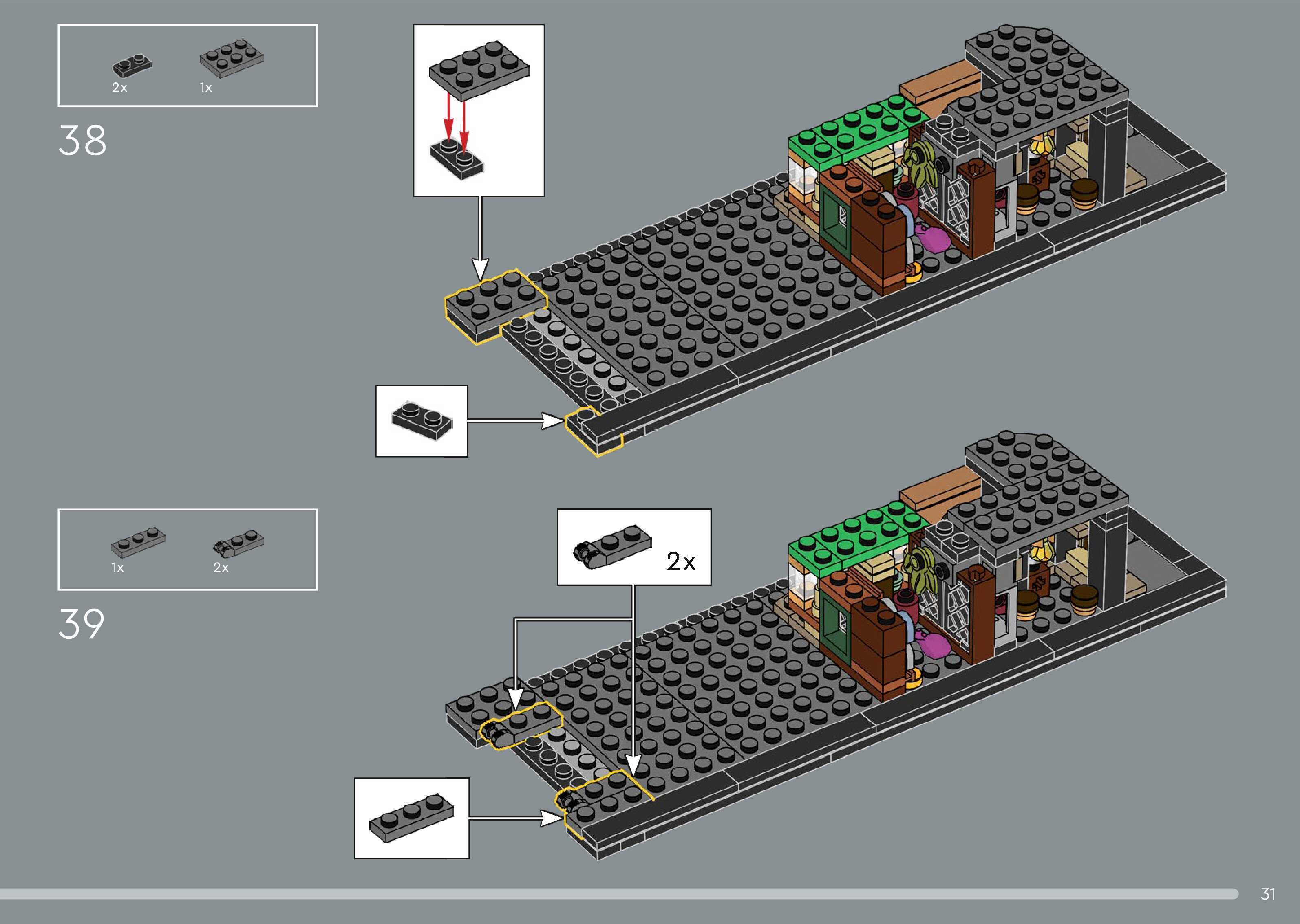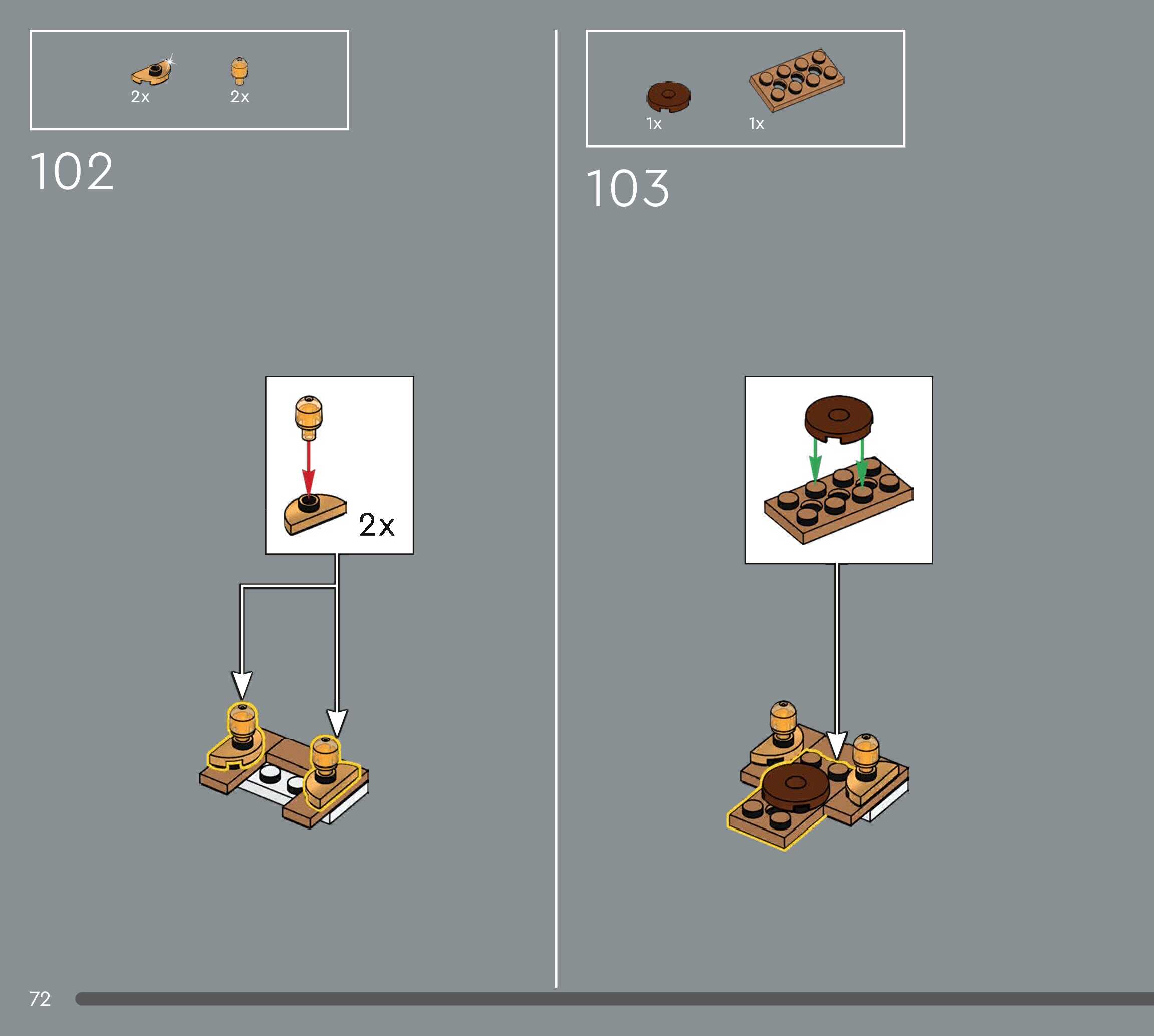 The assembly guide is prepared in a very understandable way for children and adult LEGO enthusiasts. A total of 544 picture galleries are shown, explaining the step-by-step construction stages for 5 different structures.