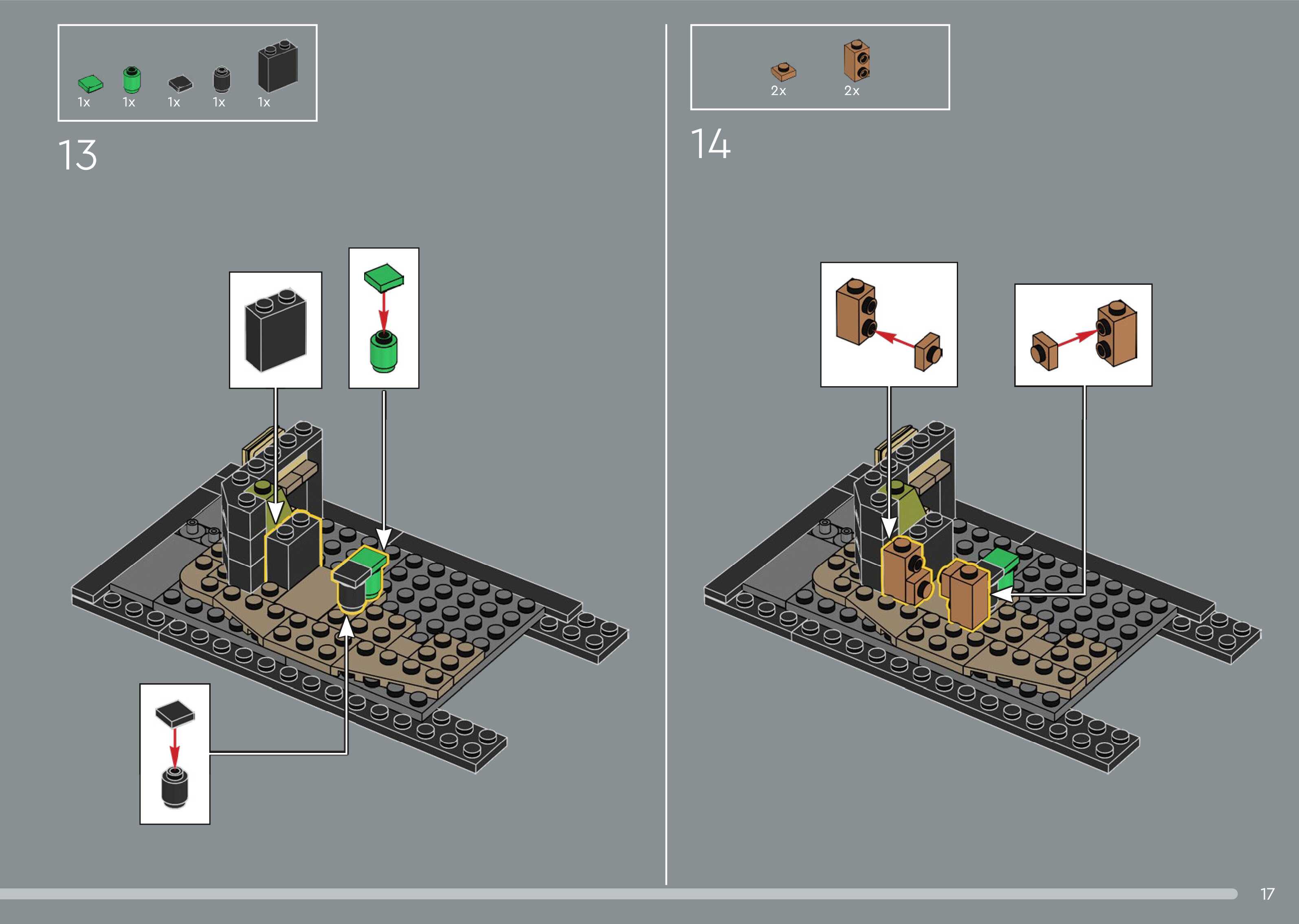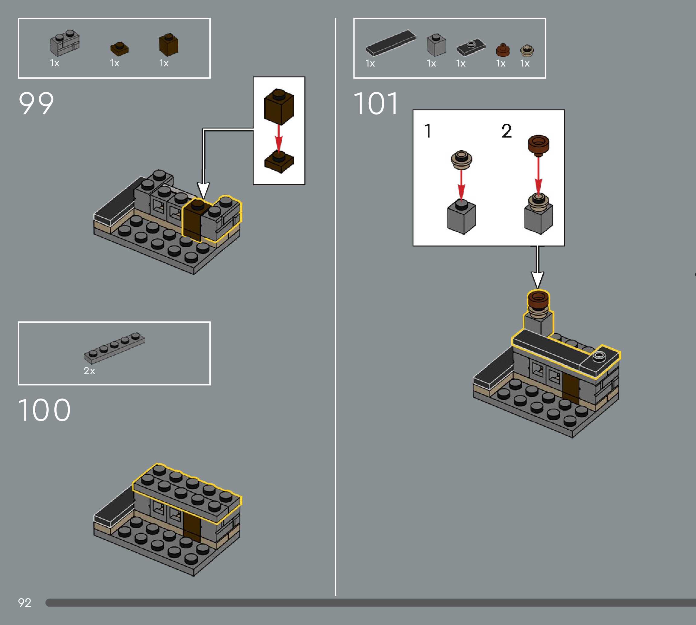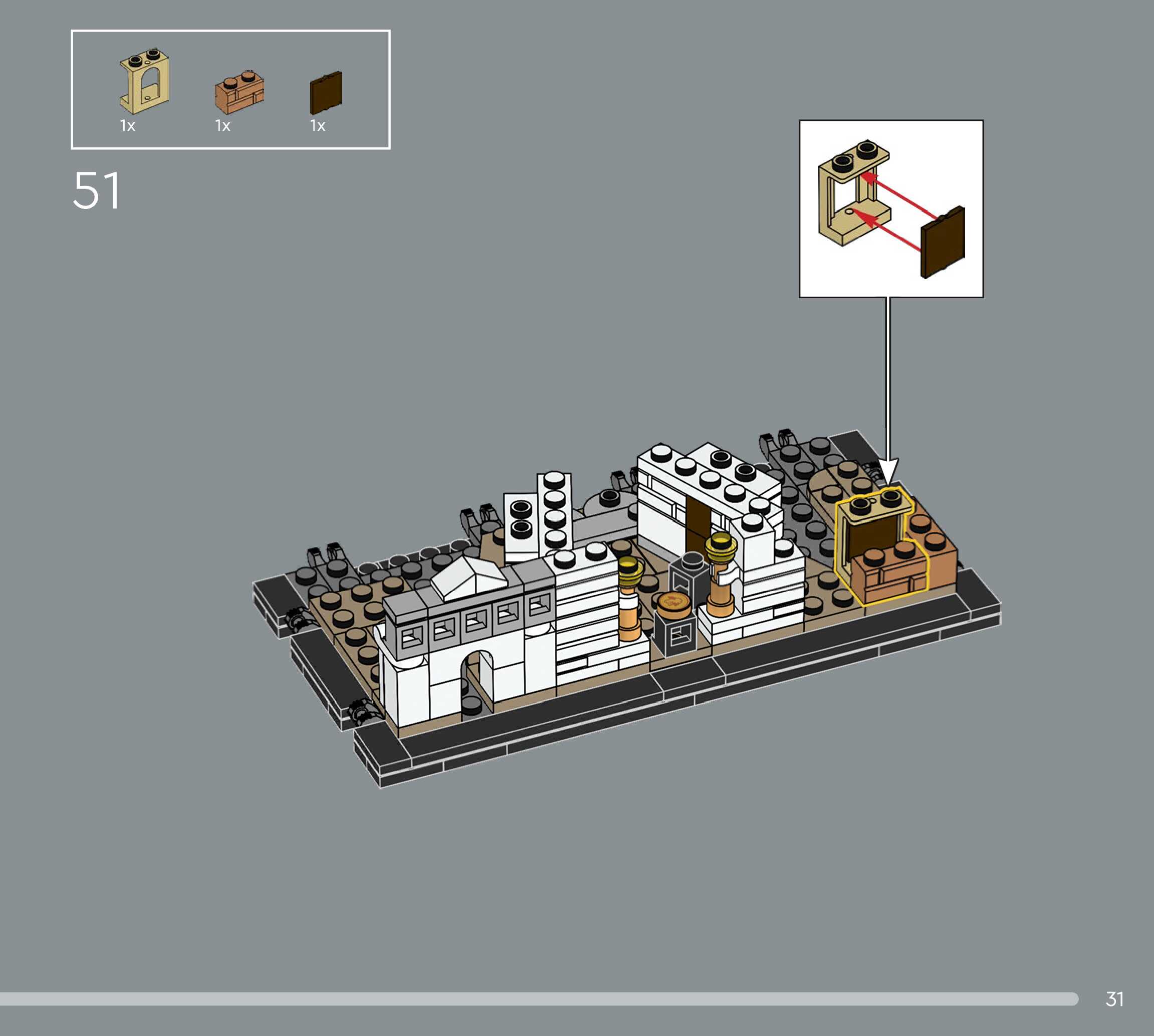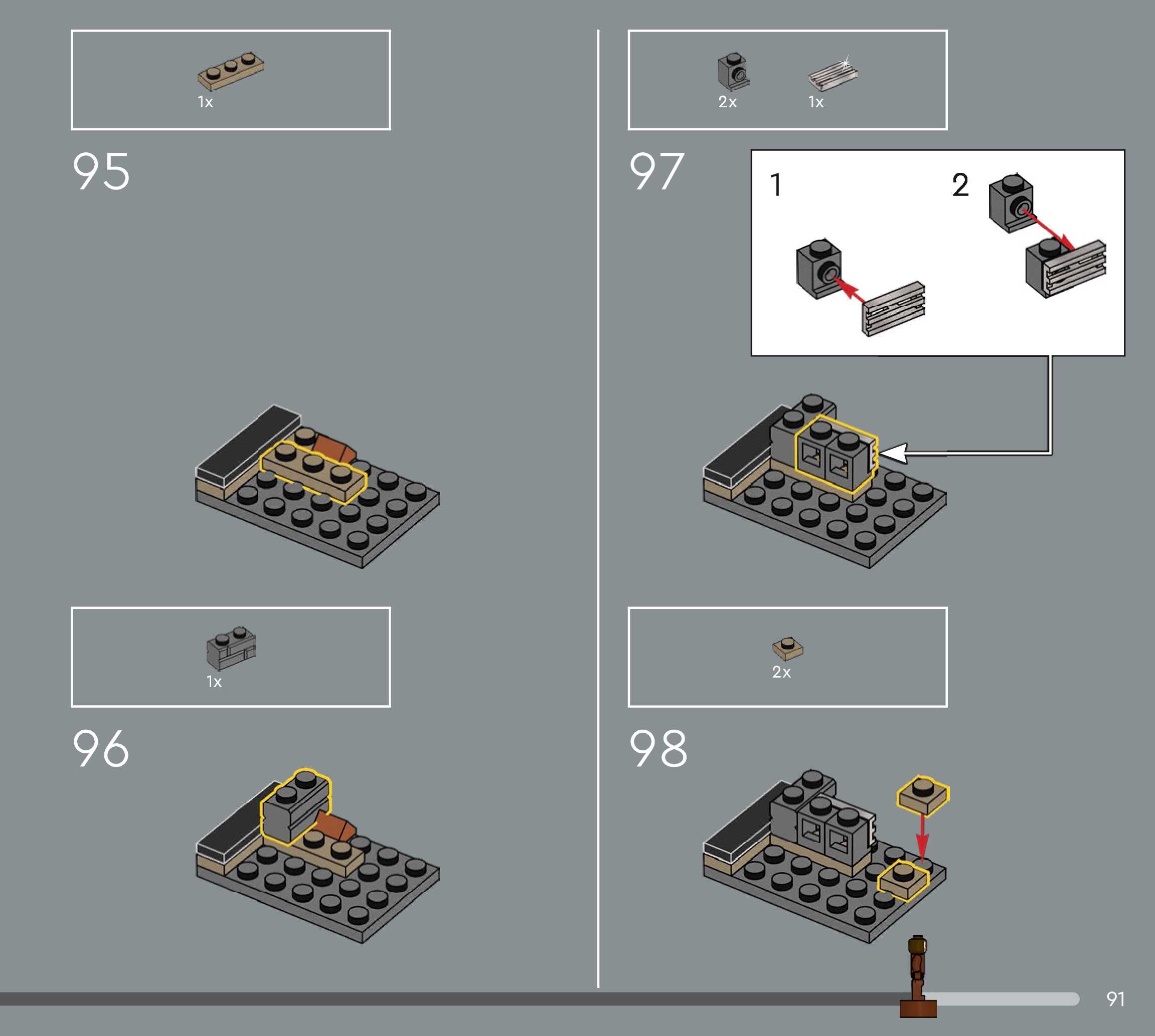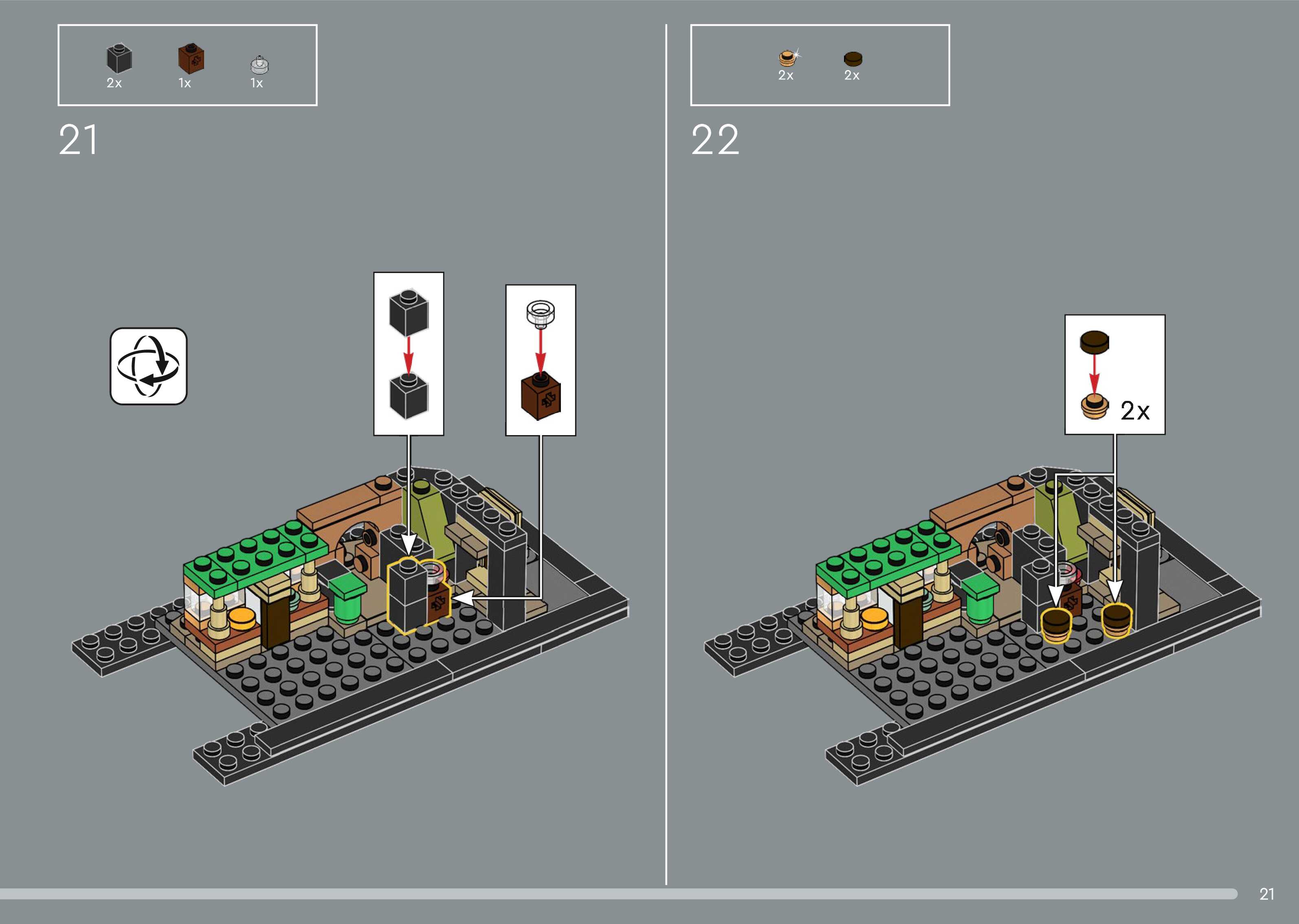 The assembly guide is prepared in a very understandable way for children and adult LEGO enthusiasts. A total of 544 picture galleries are shown, explaining the step-by-step construction stages for 5 different structures.