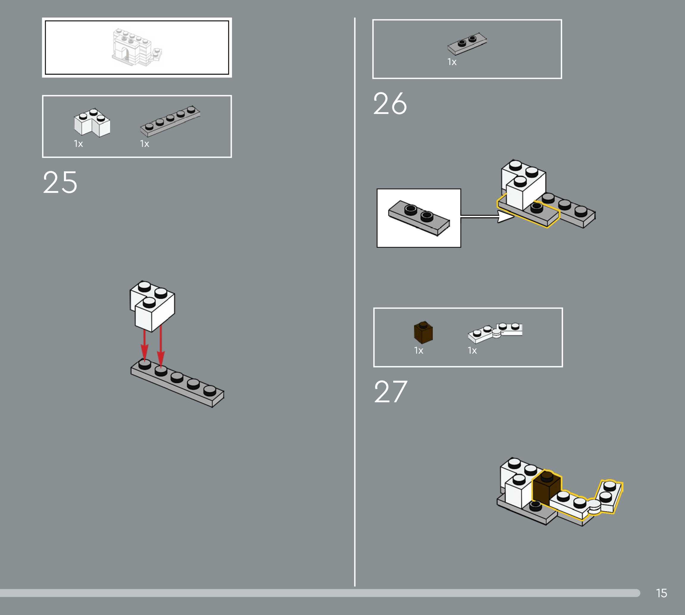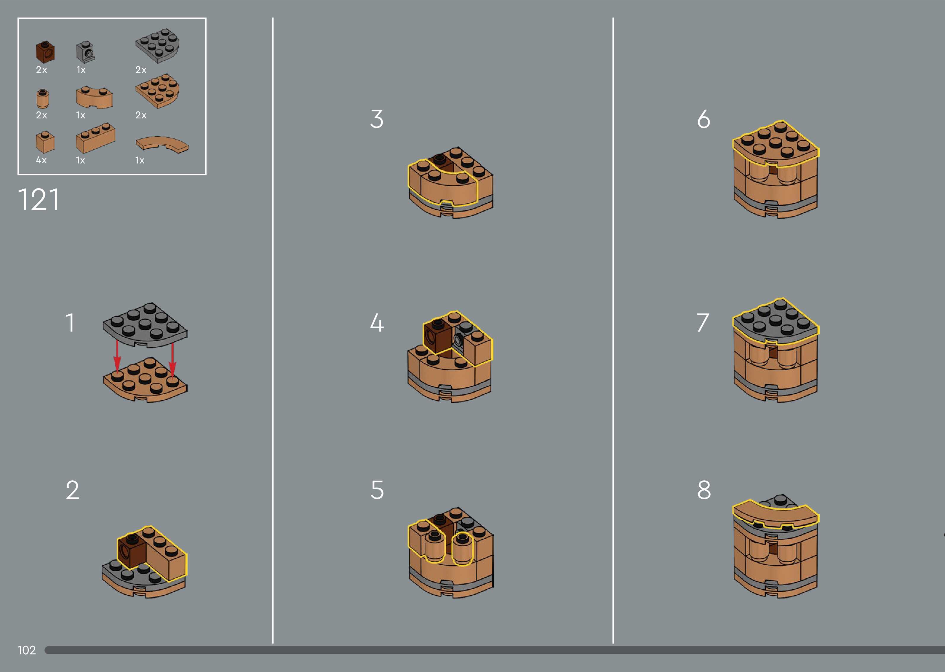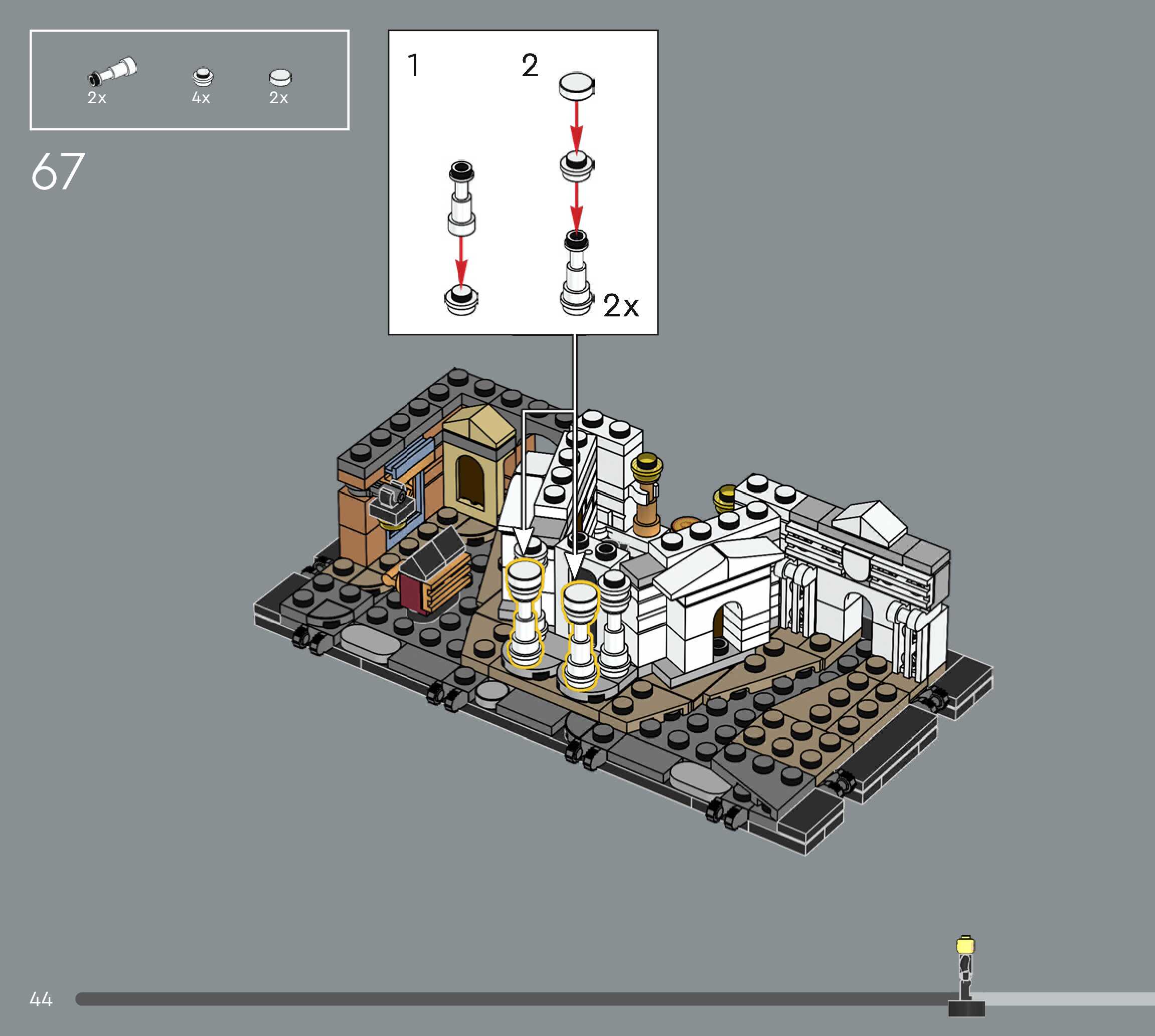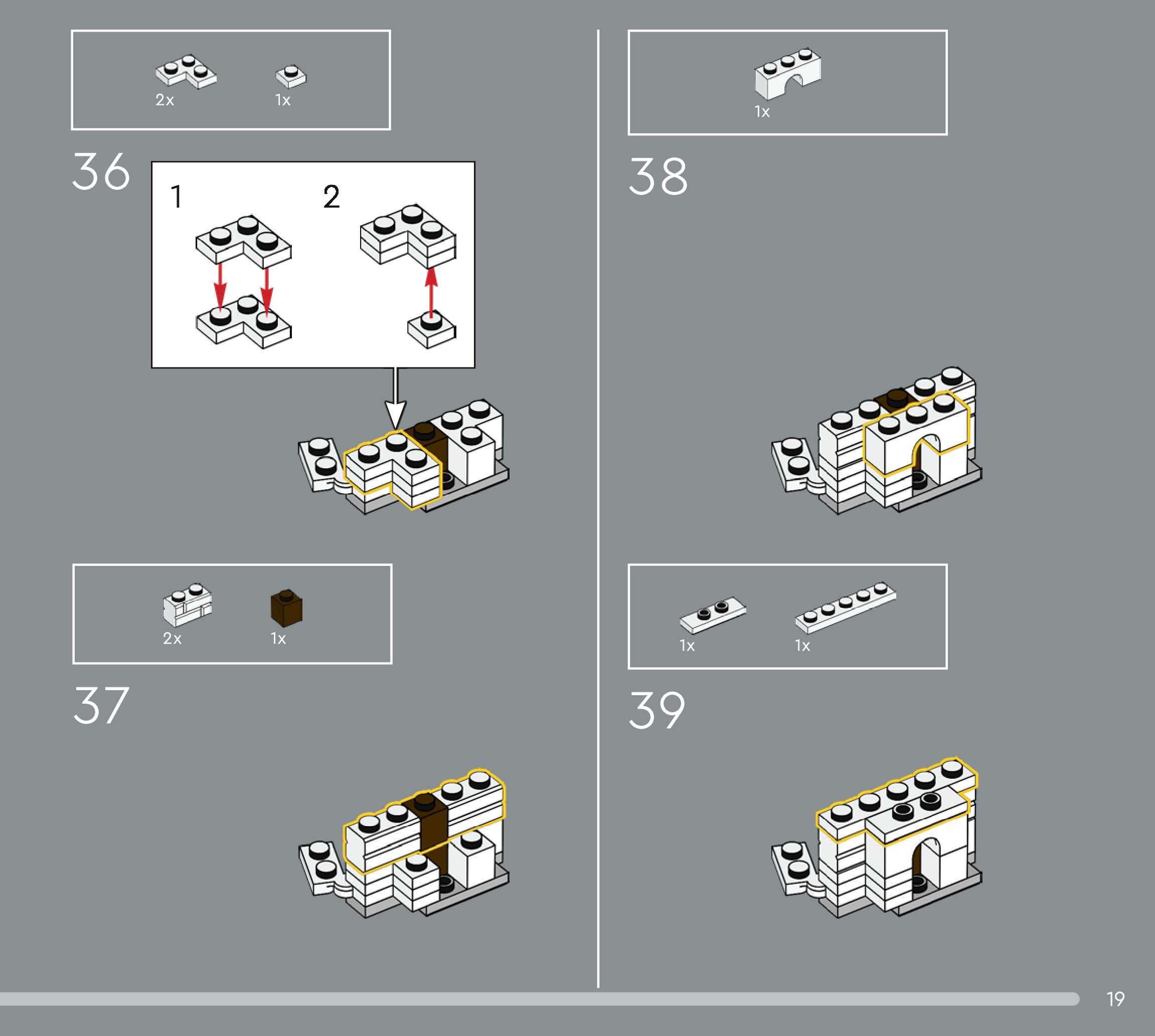 The assembly guide is prepared in a very understandable way for children and adult LEGO enthusiasts. A total of 544 picture galleries are shown, explaining the step-by-step construction stages for 5 different structures.