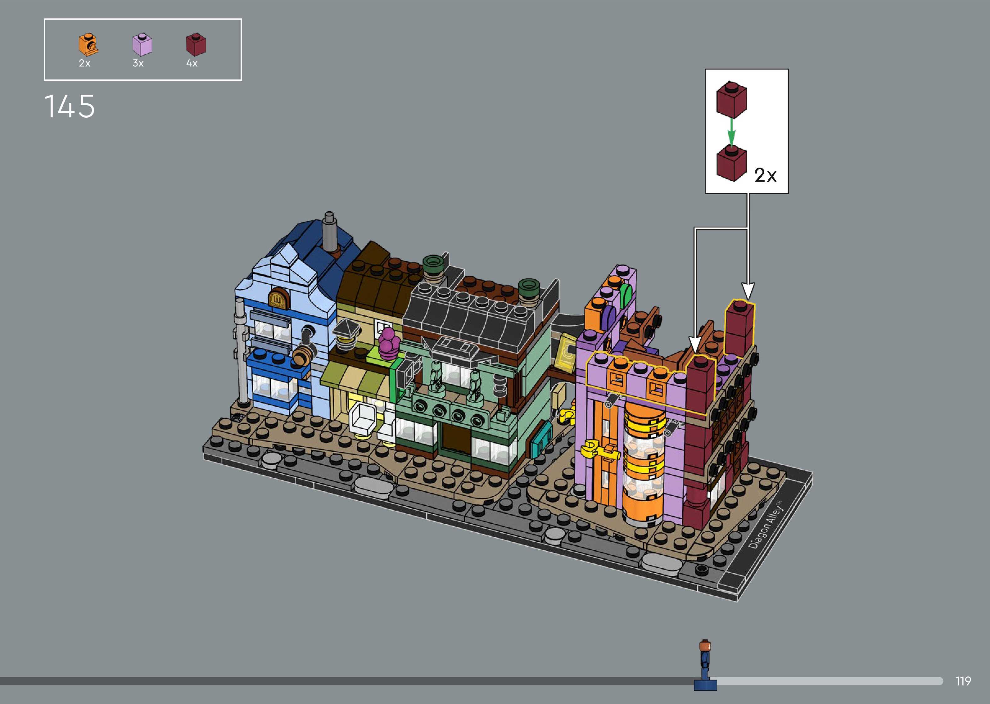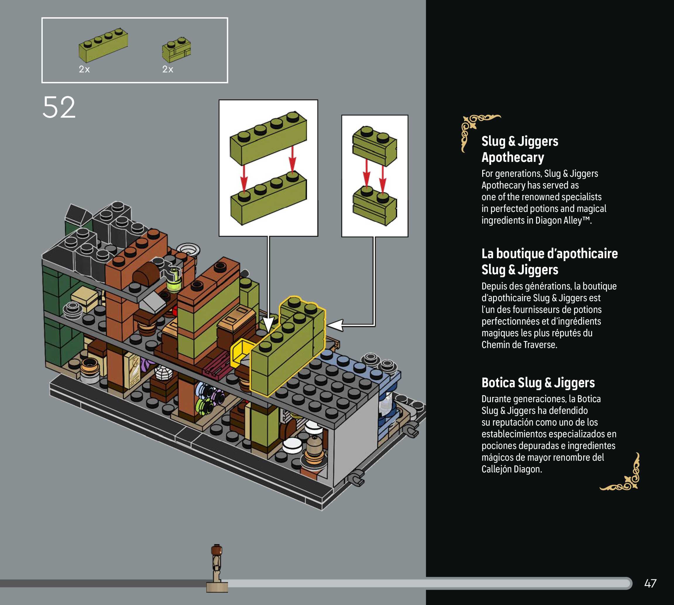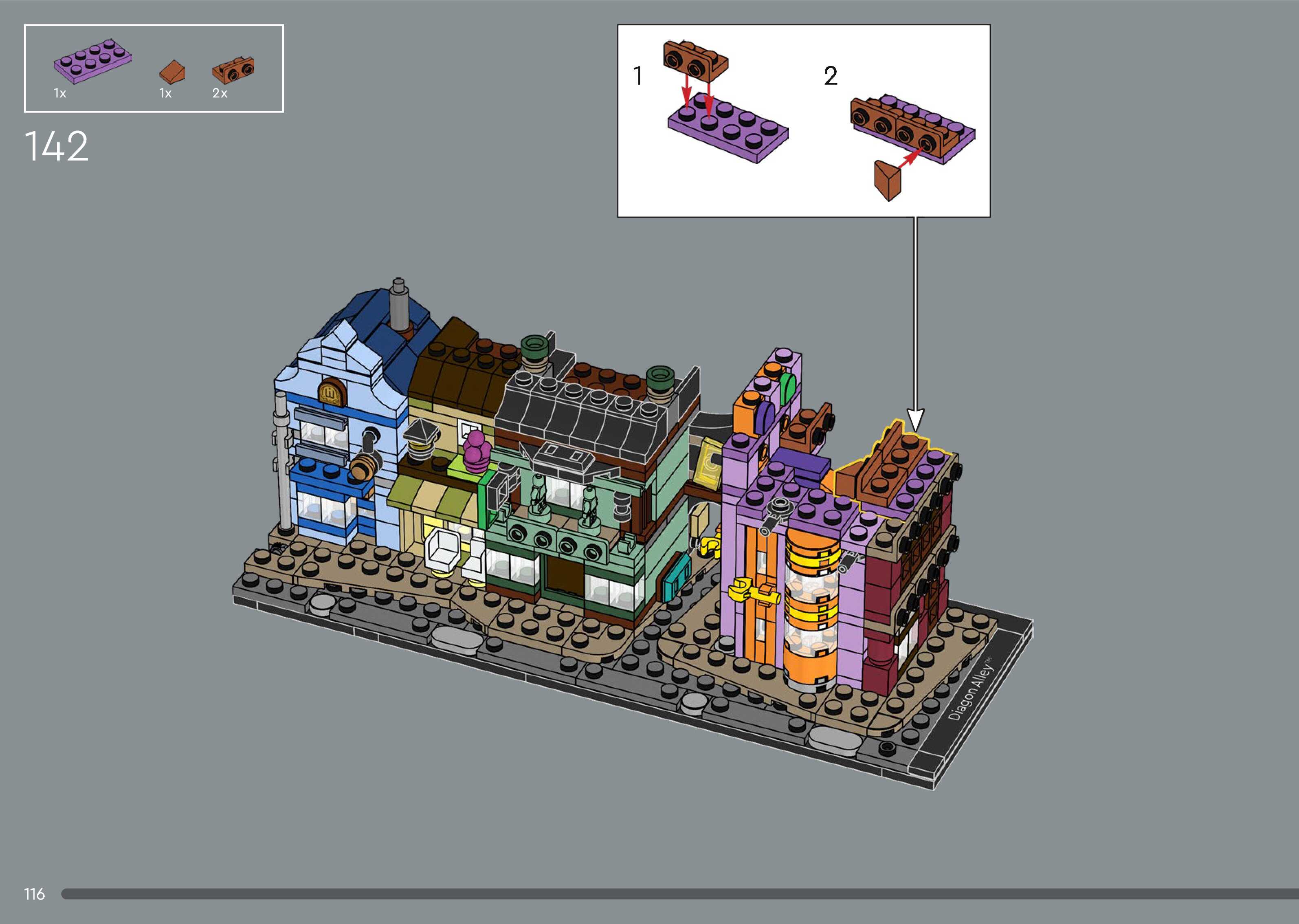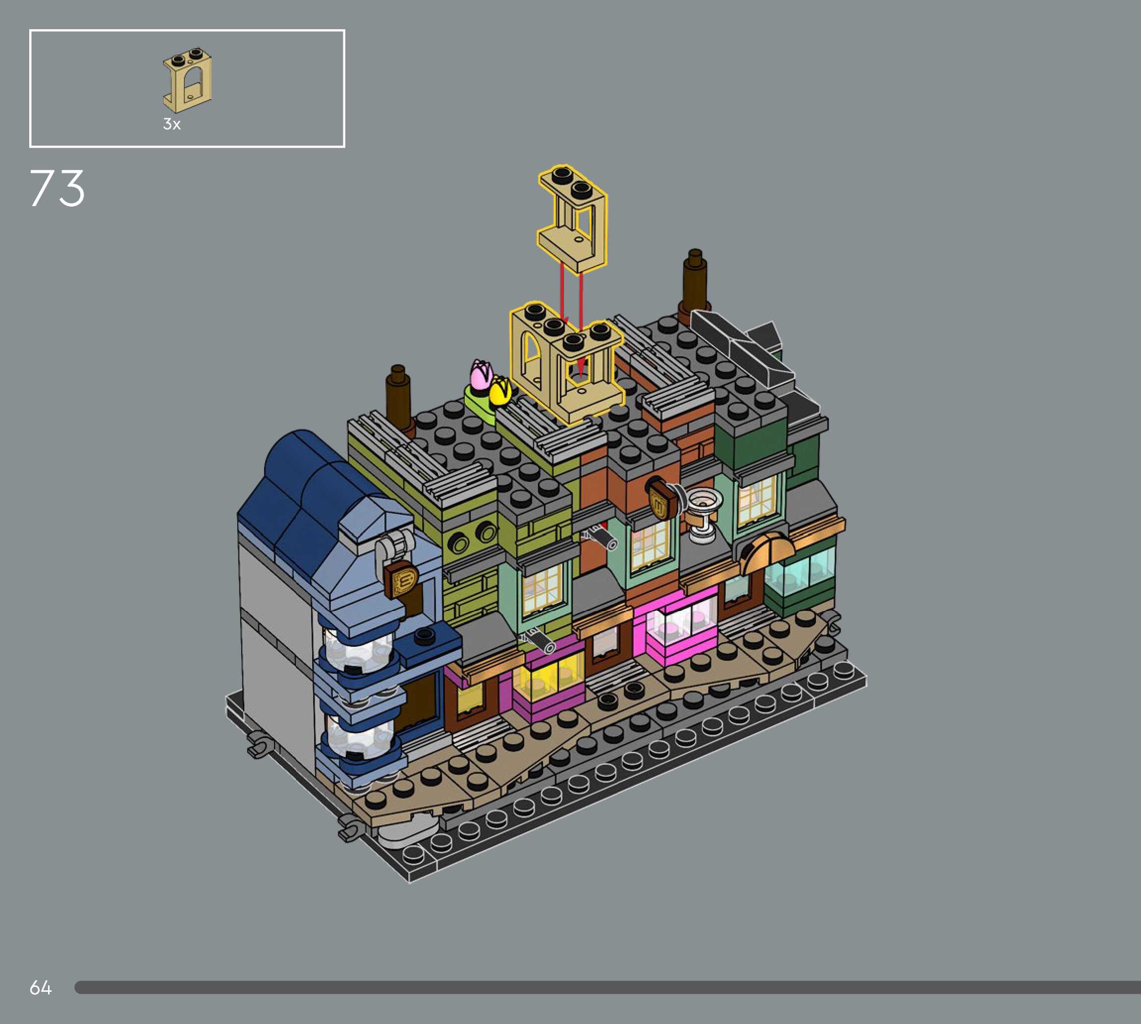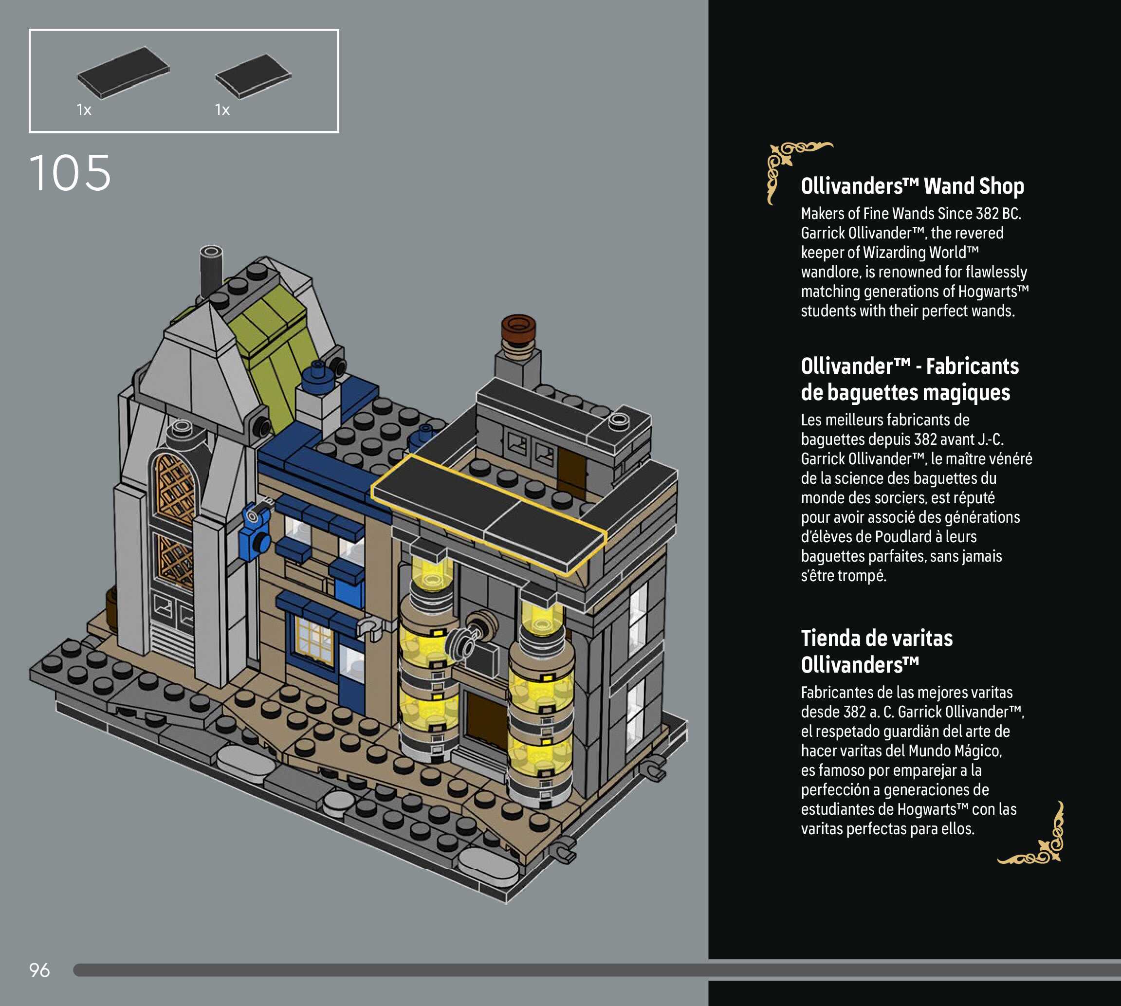 On this page you can find the original construction manual for the LEGO 76444 set. With the assembly manual you can easily learn how to build the Diagon Alley™ Wizarding Shops step by step. The set was released in 2025.