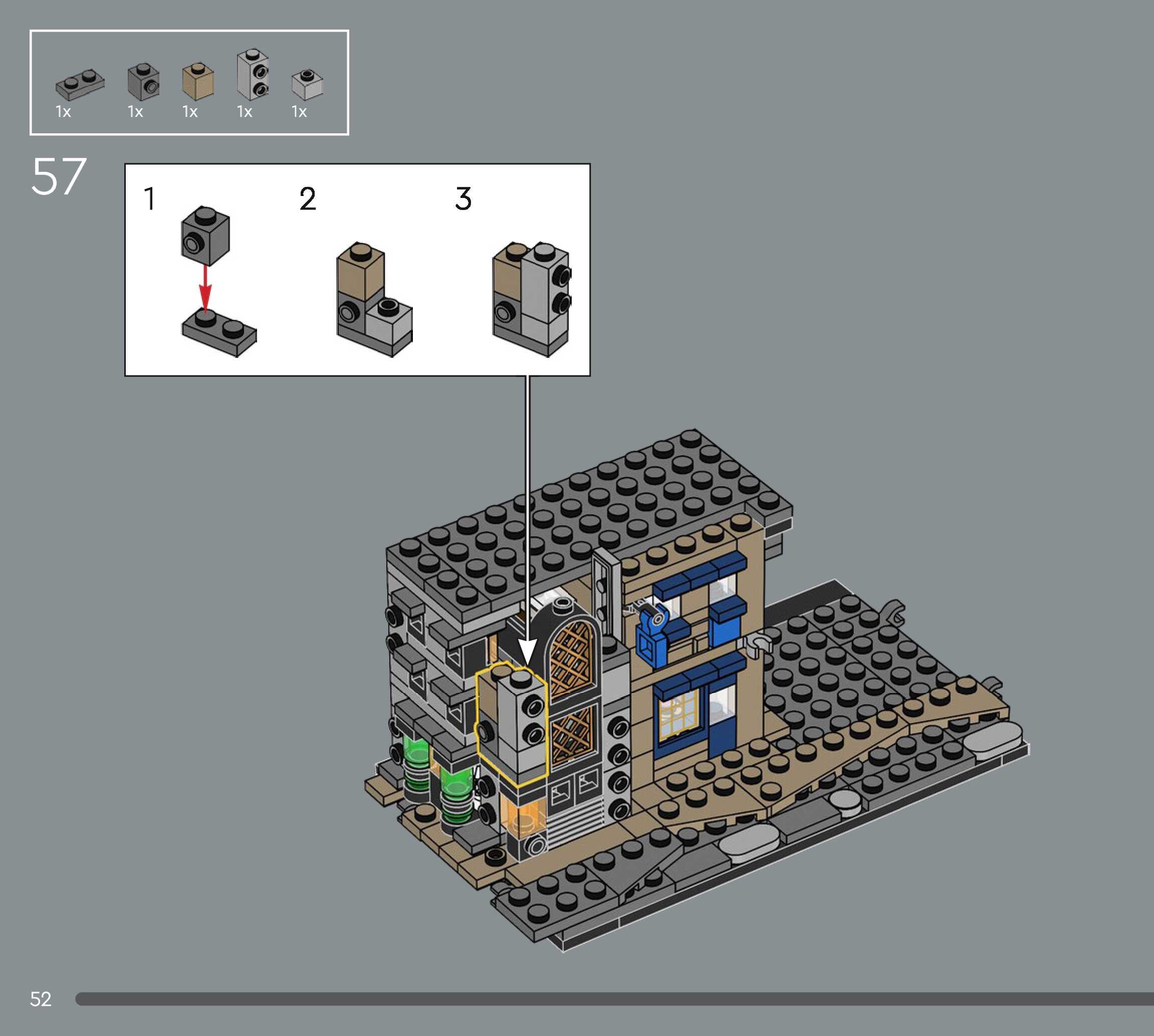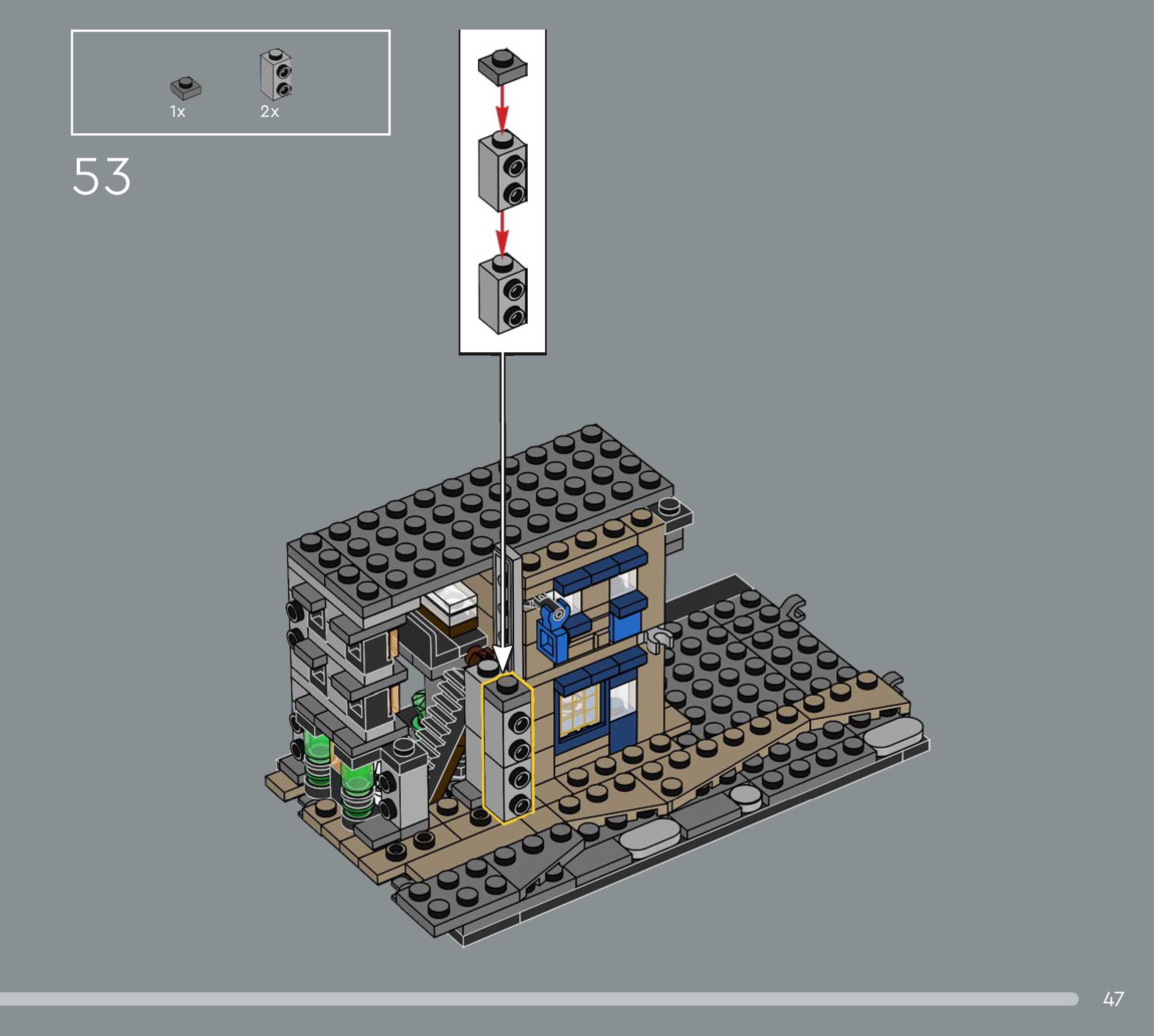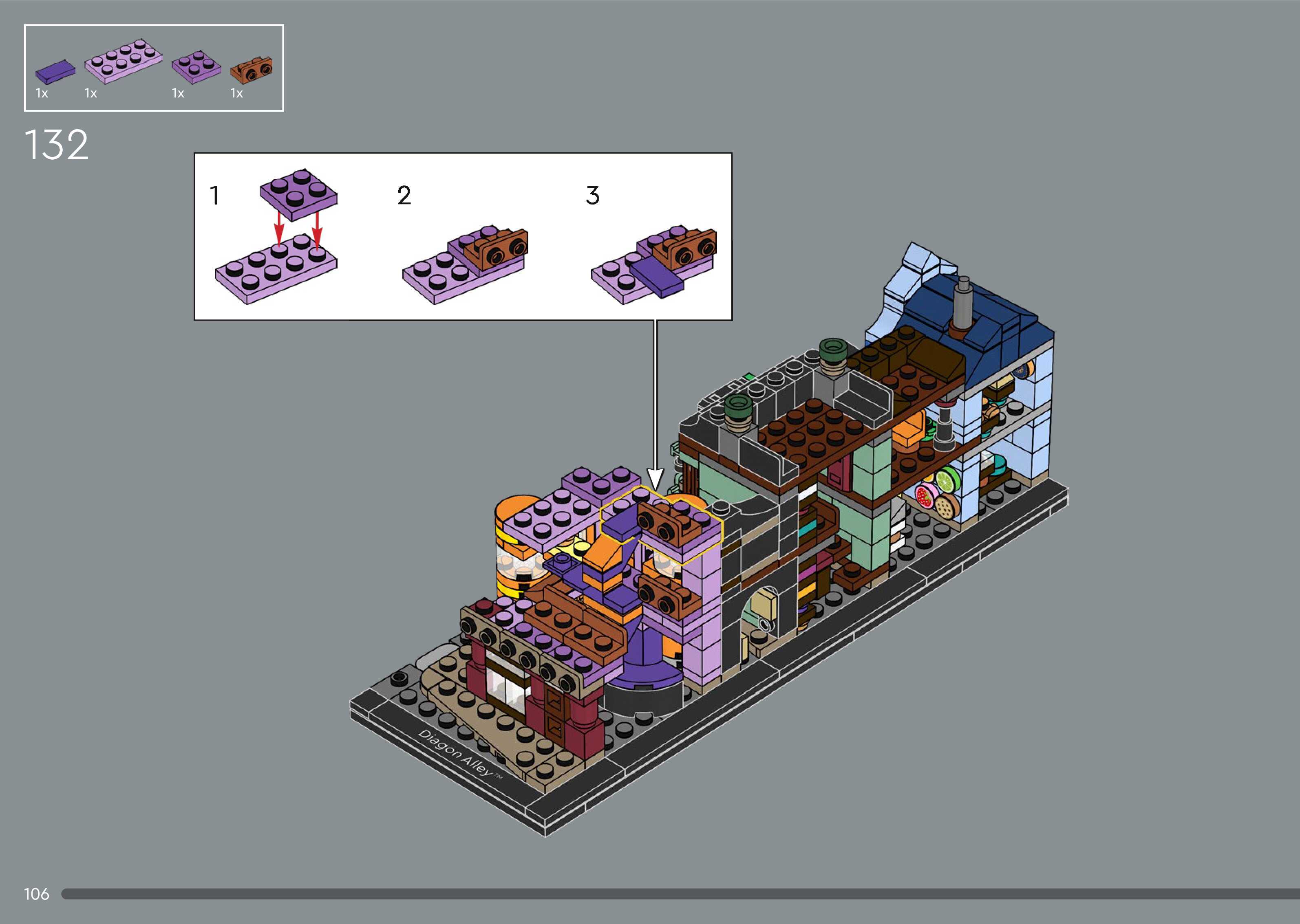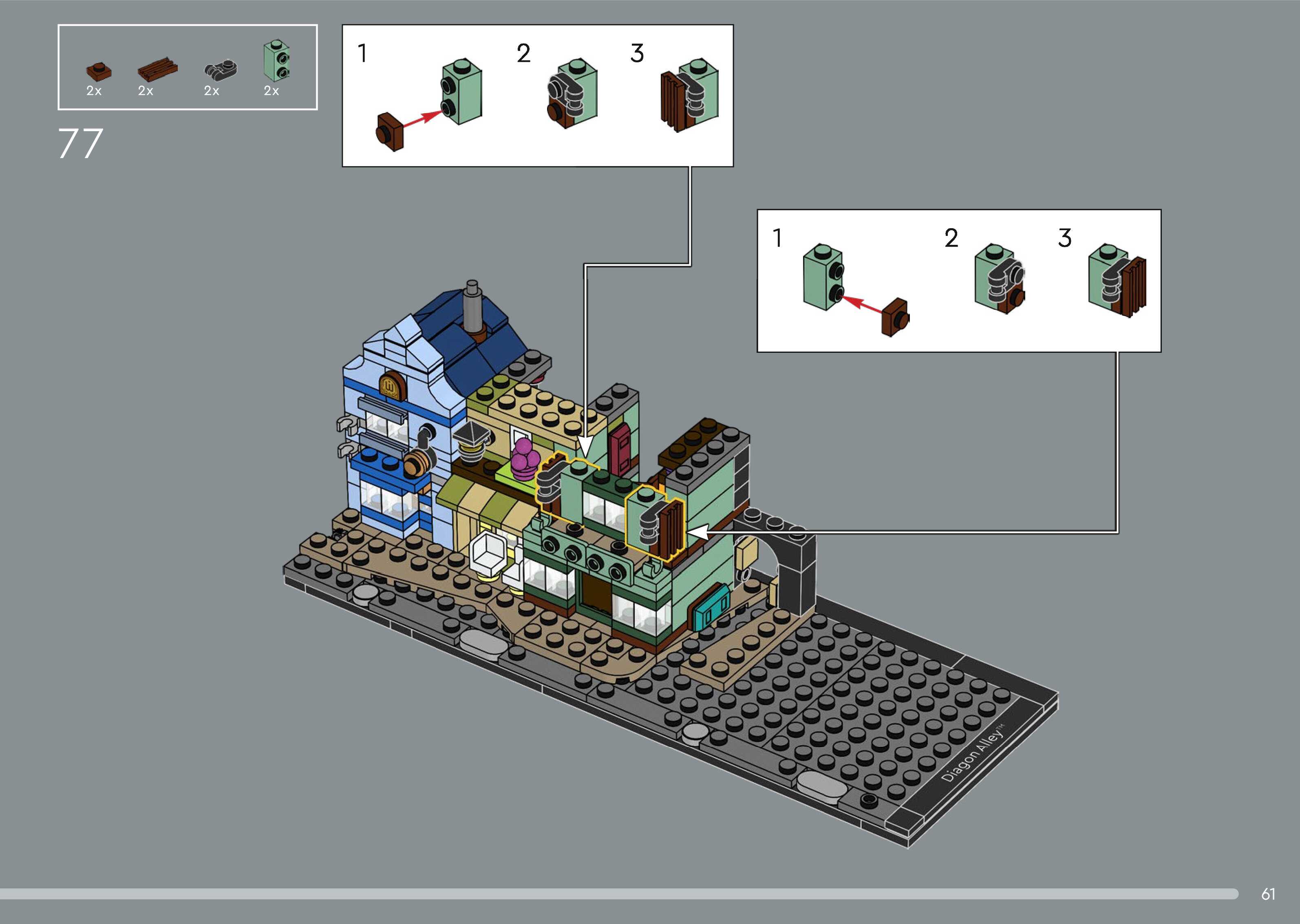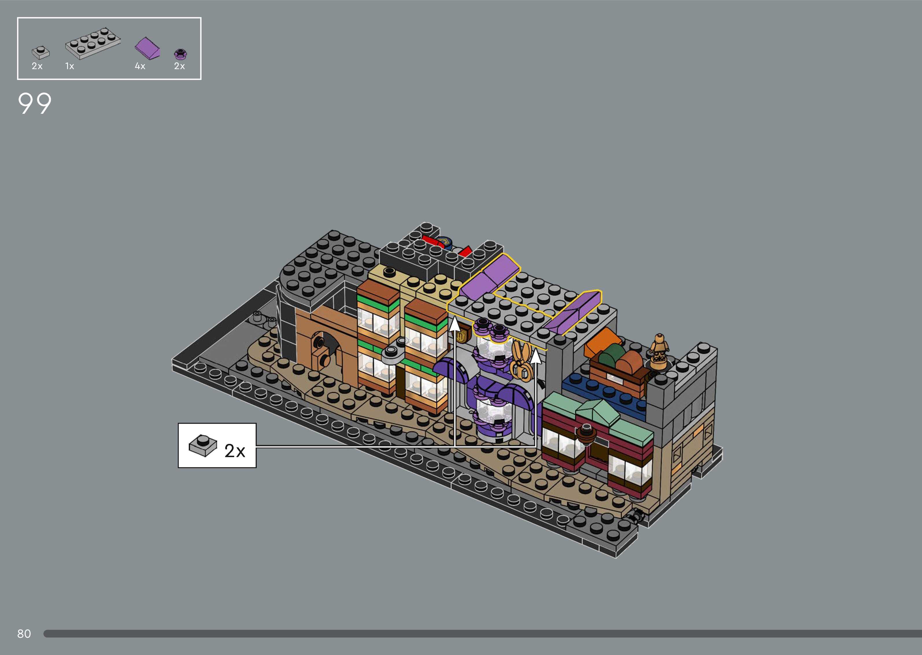 On this page you can find the original construction manual for the LEGO 76444 set. With the assembly manual you can easily learn how to build the Diagon Alley™ Wizarding Shops step by step. The set was released in 2025.