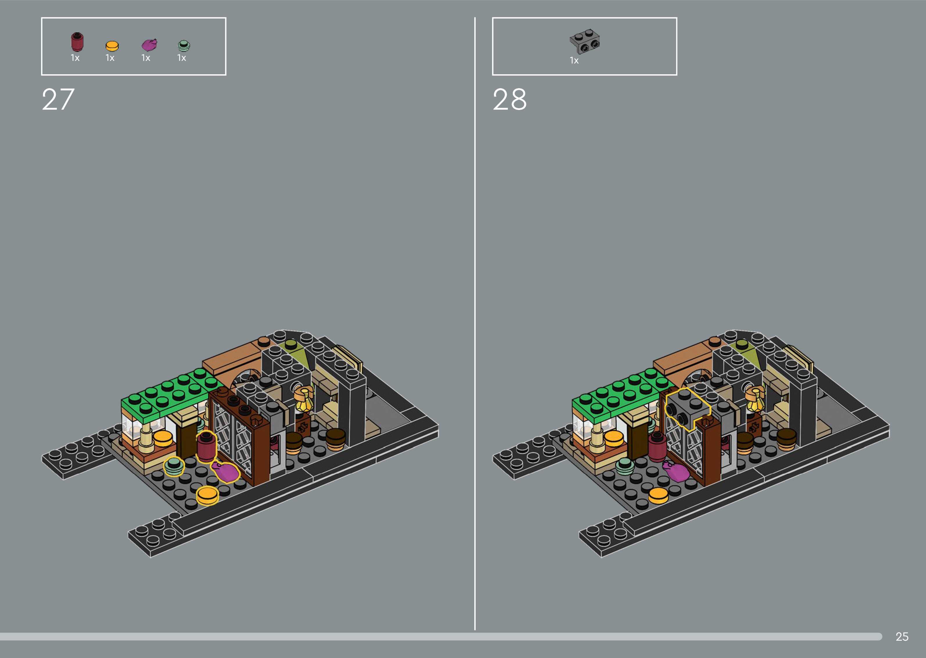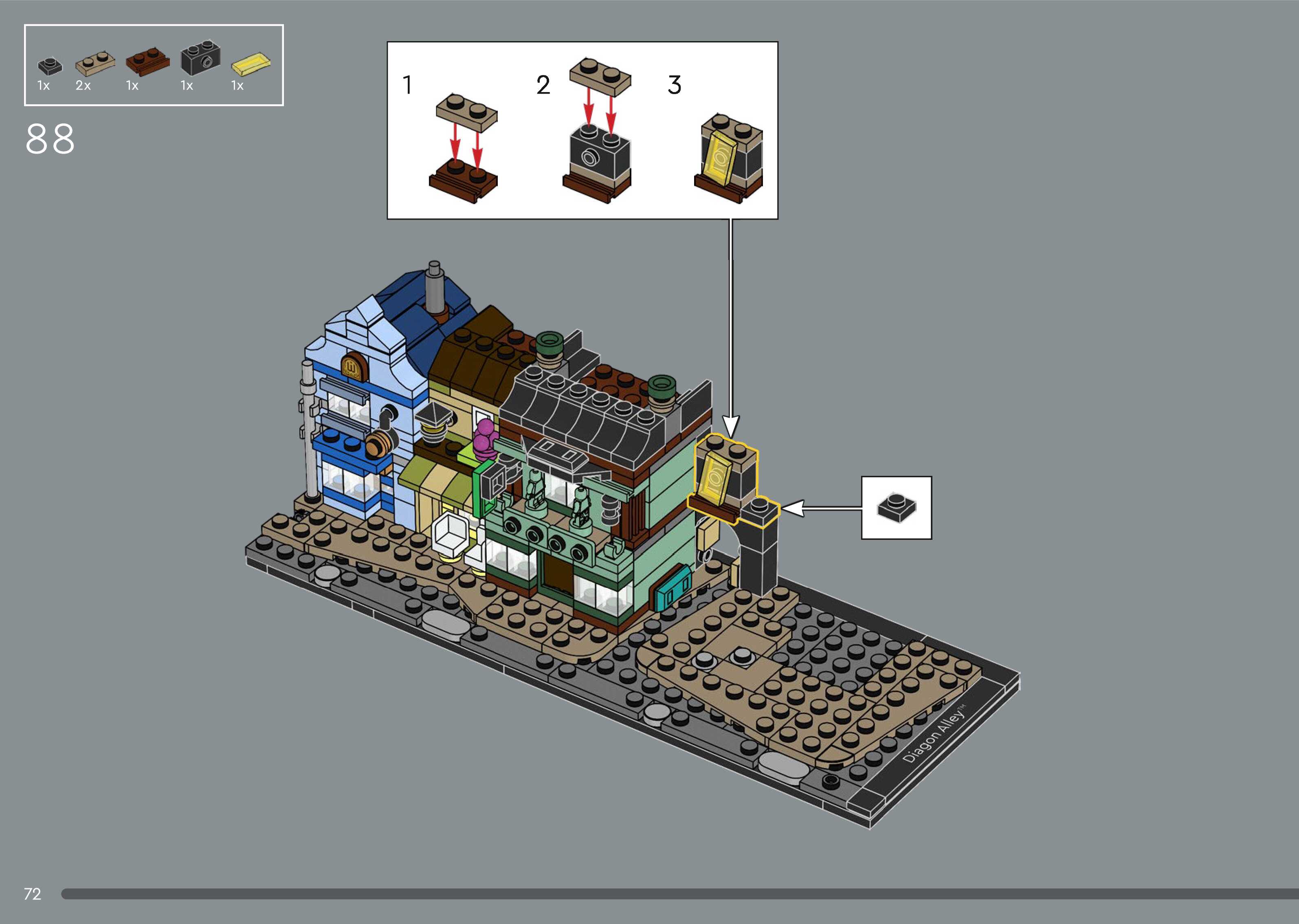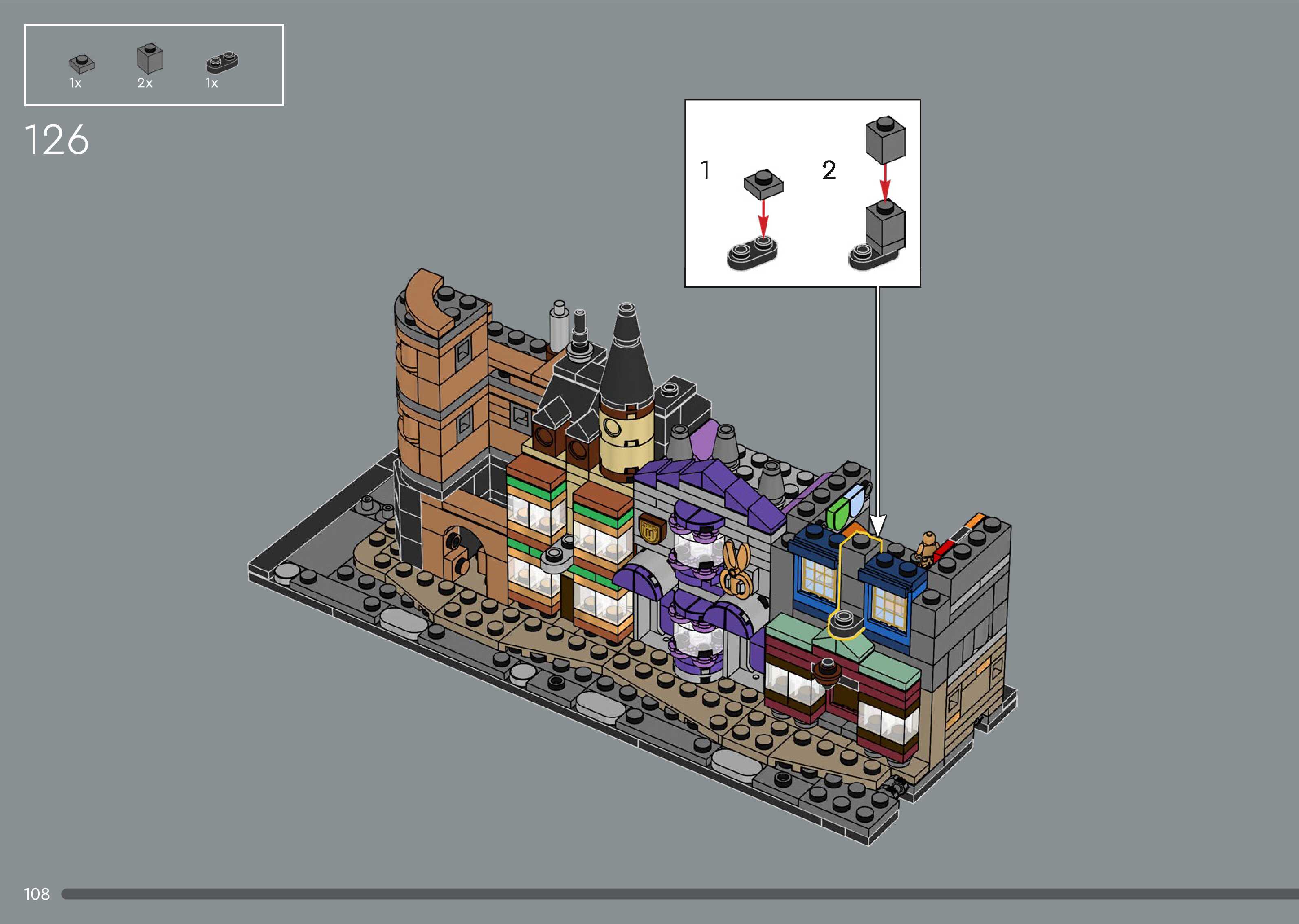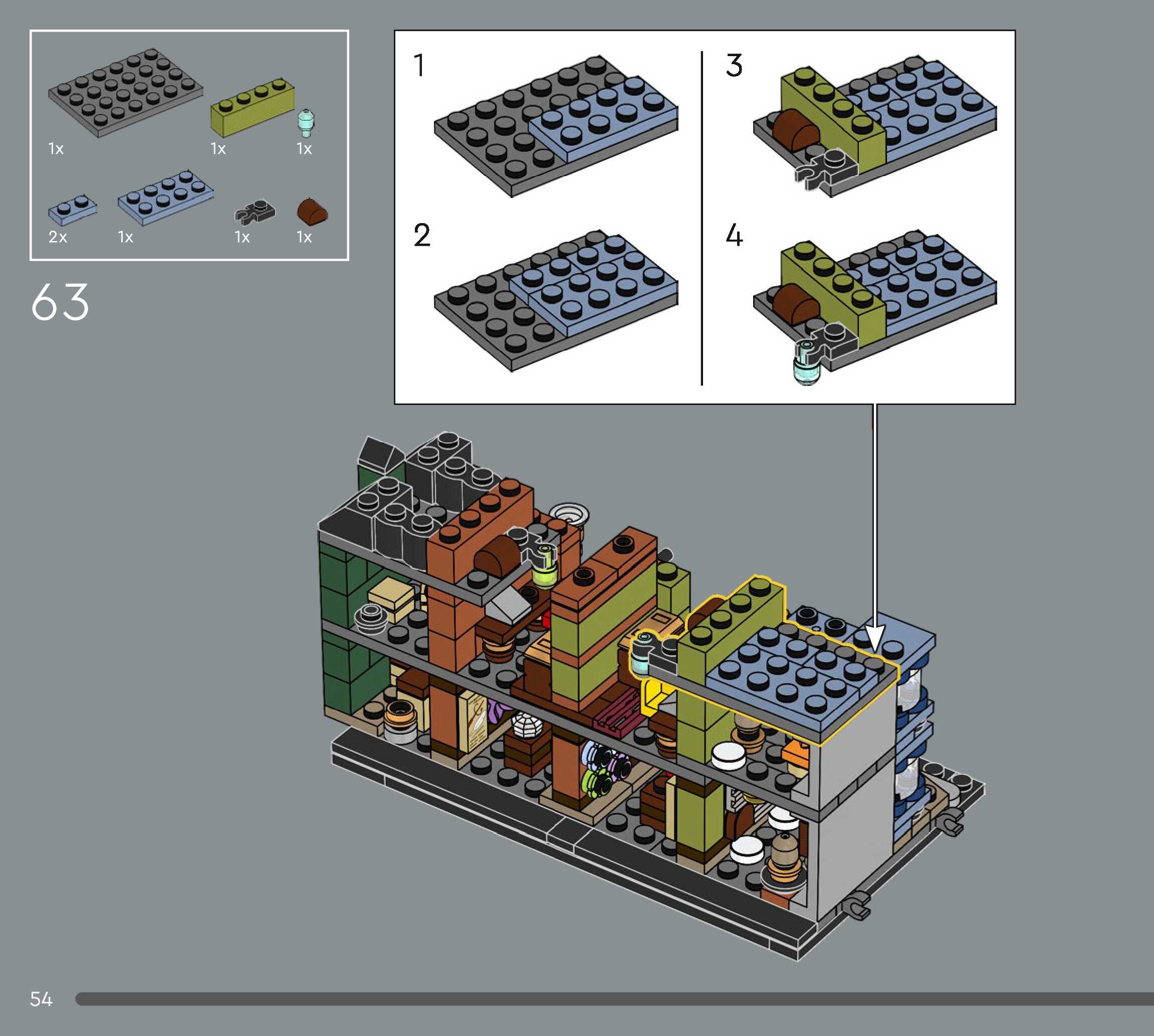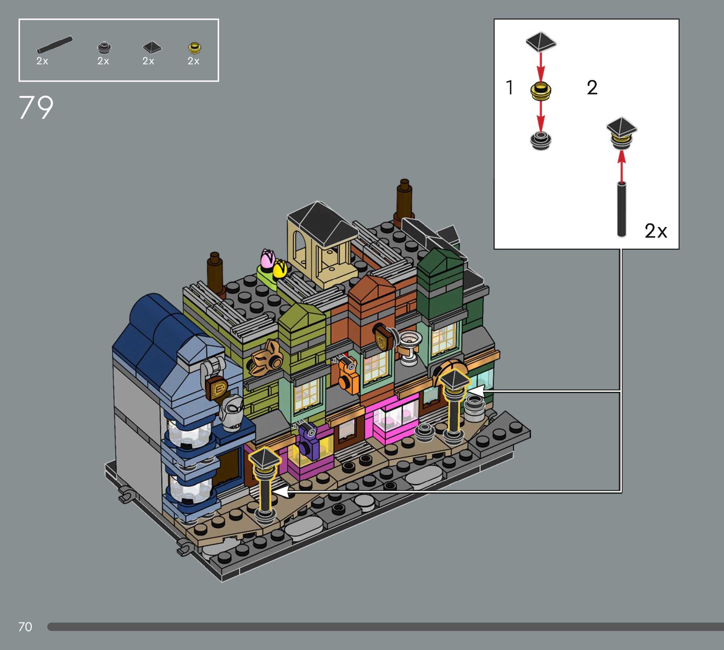 On this page you can find the original construction manual for the LEGO 76444 set. With the assembly manual you can easily learn how to build the Diagon Alley™ Wizarding Shops step by step. The set was released in 2025.