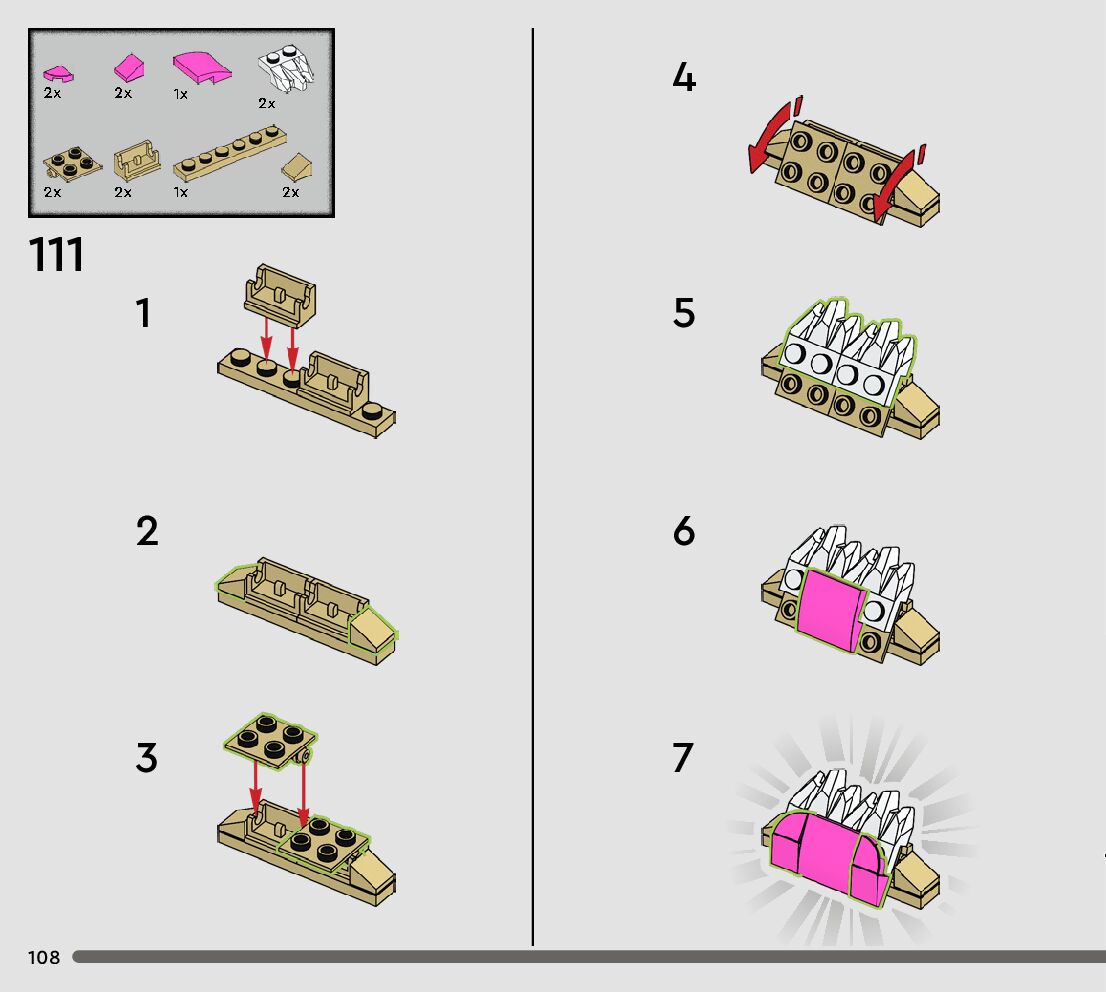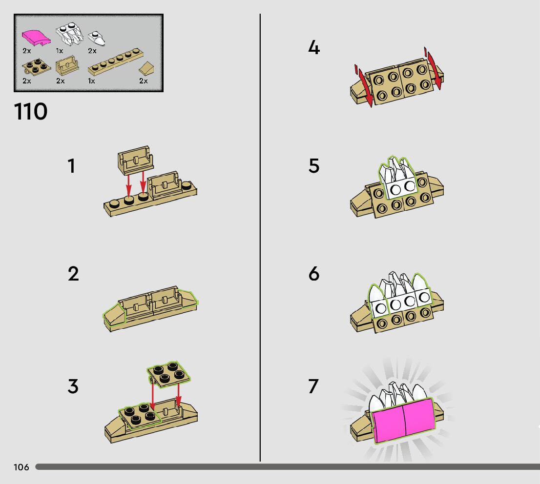 The assembly guide is prepared in a very understandable way for children and adult LEGO enthusiasts. A total of 144 picture galleries are shown, explaining the step-by-step construction stages for 1 different structures.