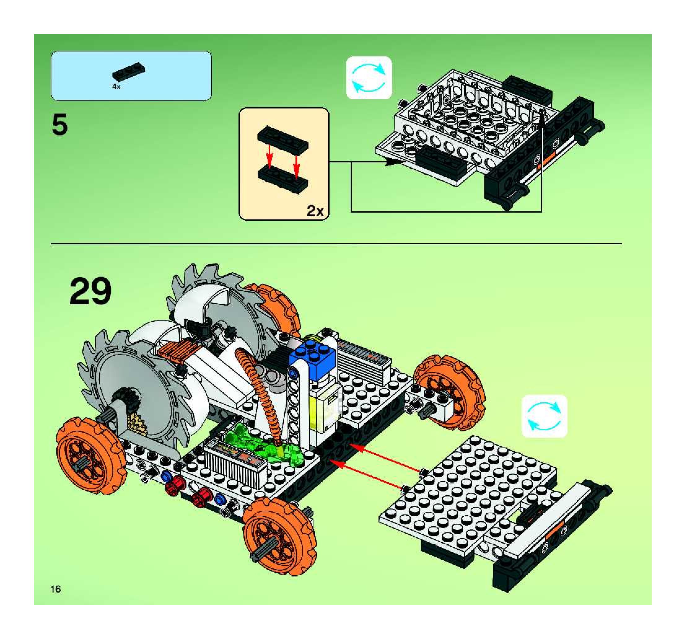 The assembly guide is prepared in a very understandable way for children and adult LEGO enthusiasts. A total of 152 picture galleries are shown, explaining the step-by-step construction stages for 2 different structures.