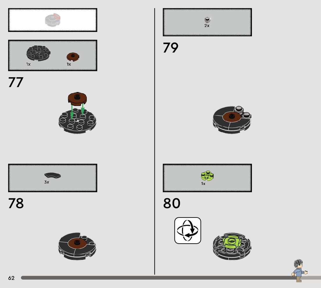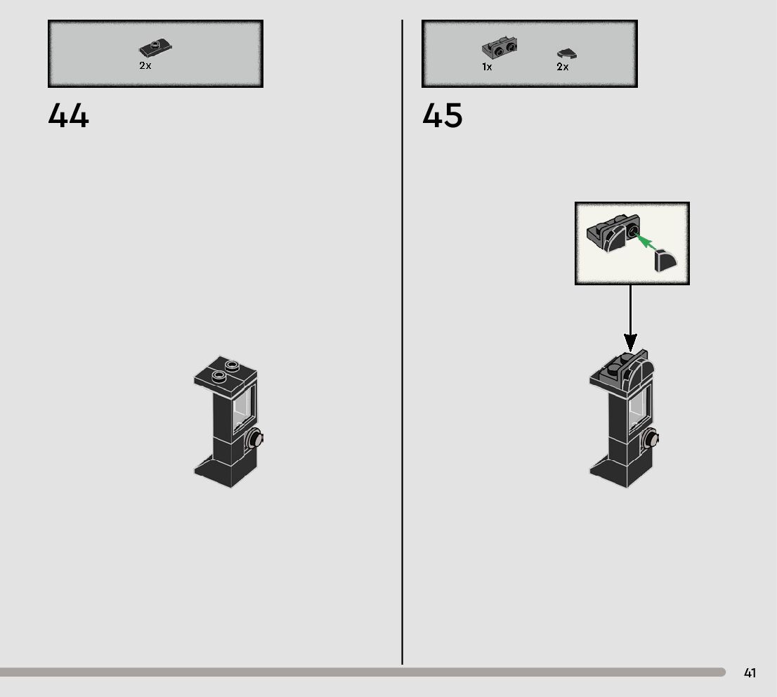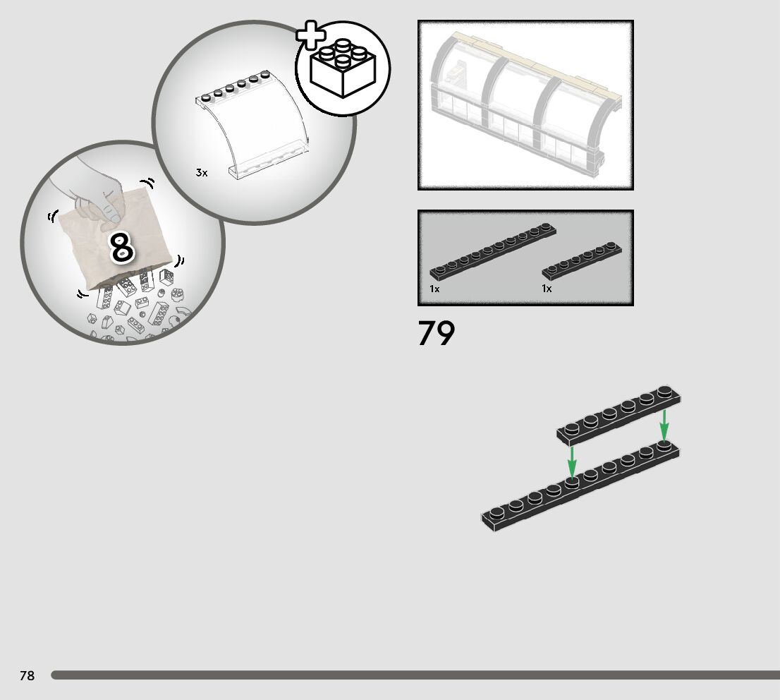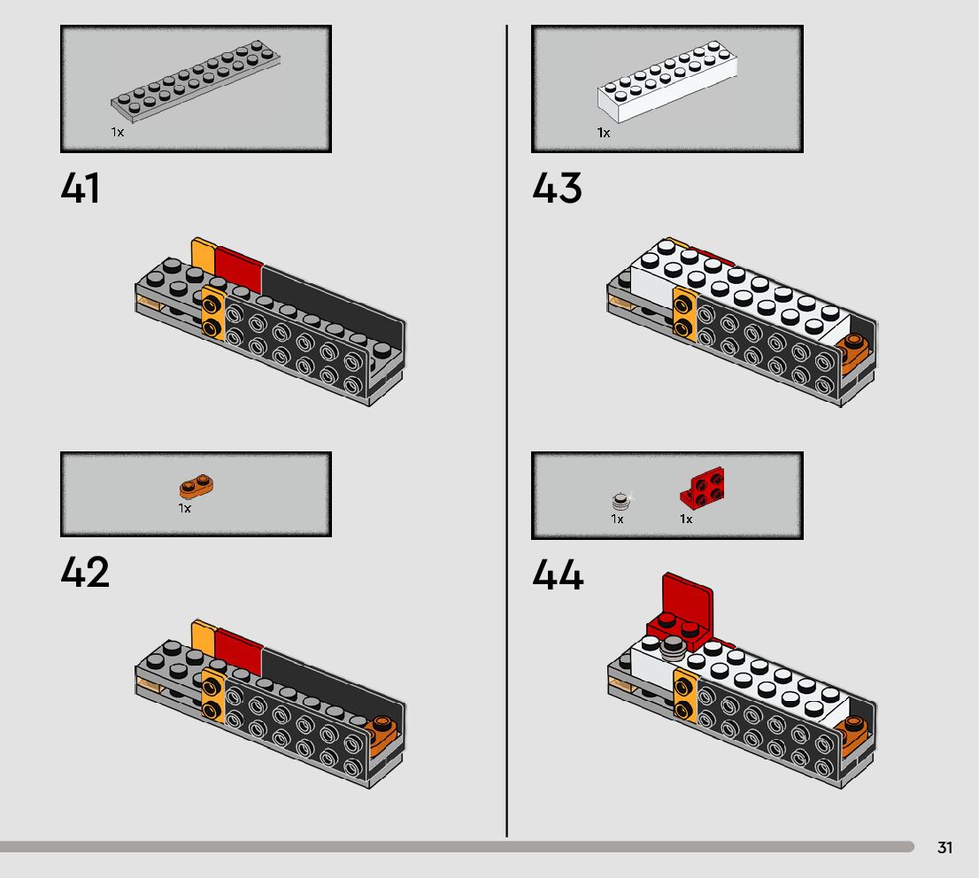 The assembly guide is prepared in a very understandable way for children and adult LEGO enthusiasts. A total of 240 picture galleries are shown, explaining the step-by-step construction stages for 2 different structures.