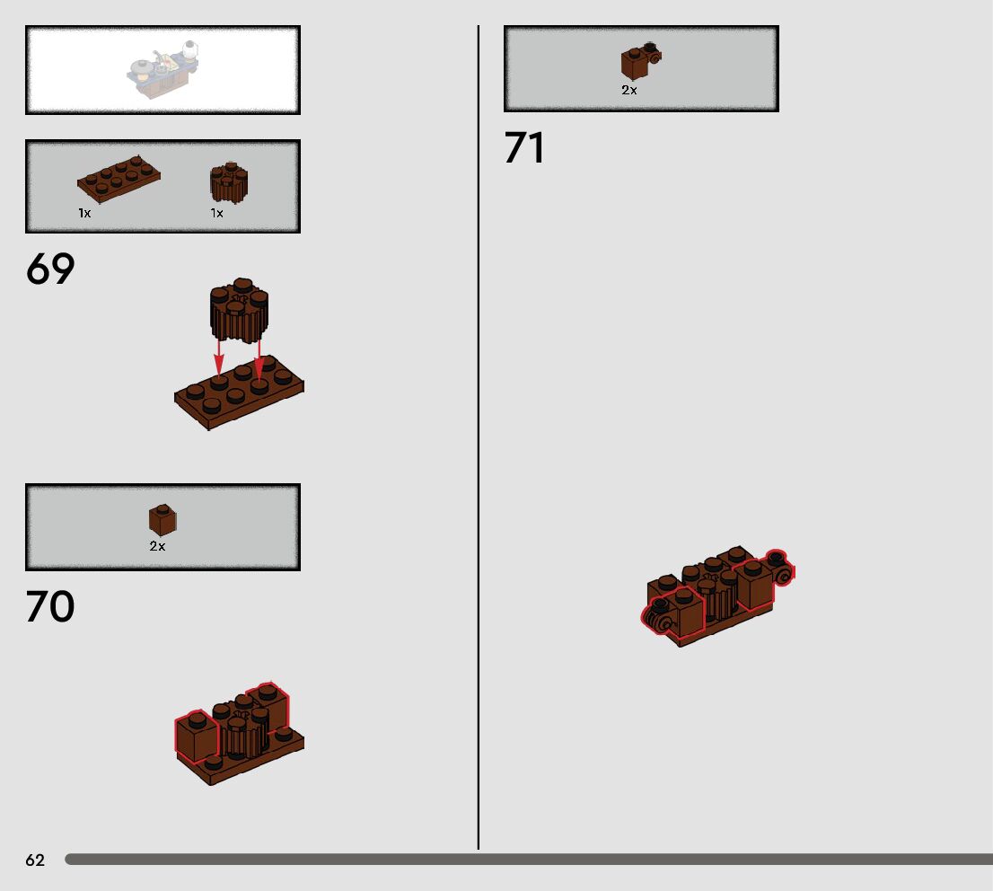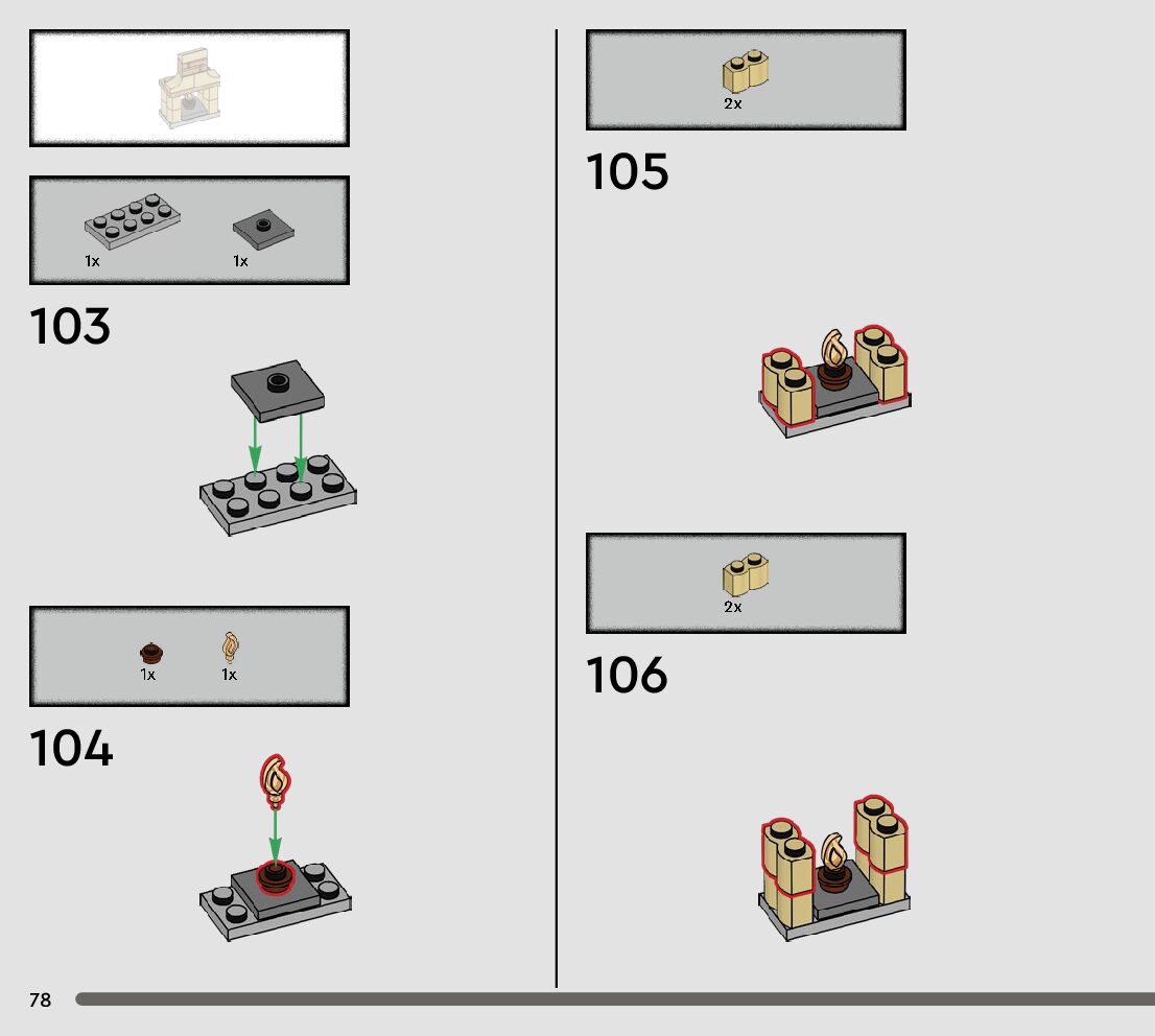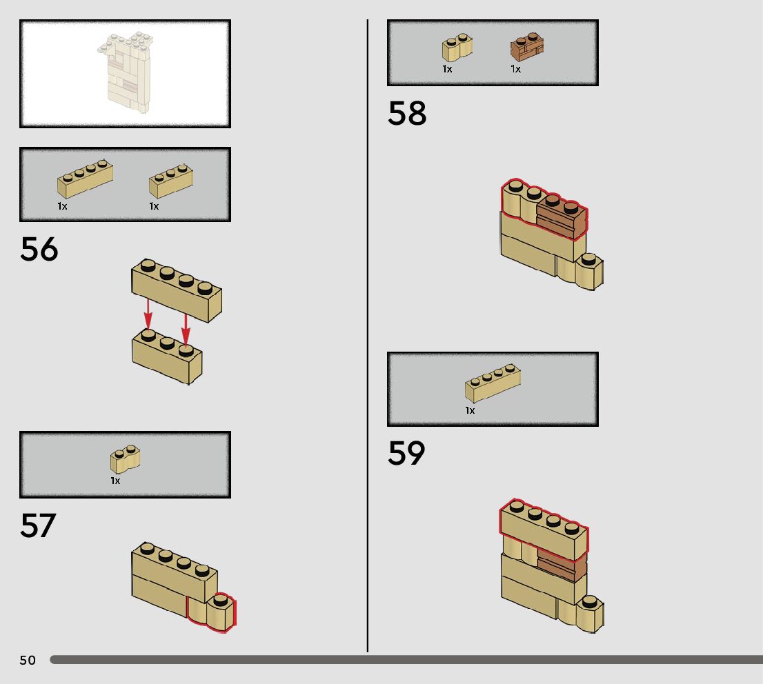 The assembly guide is prepared in a very understandable way for children and adult LEGO enthusiasts. A total of 568 picture galleries are shown, explaining the step-by-step construction stages for 7 different structures.