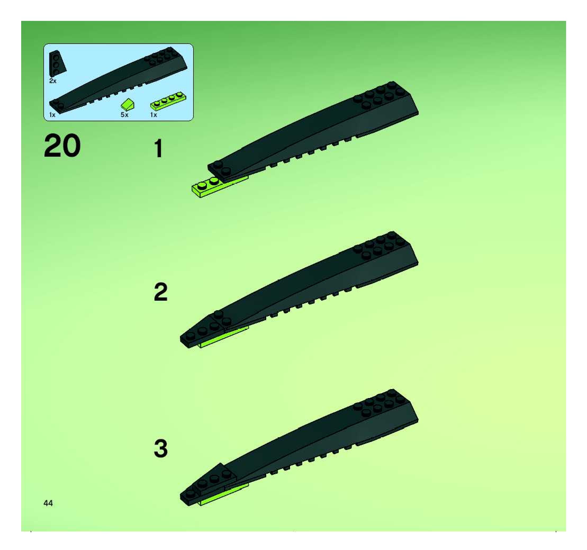 The assembly guide is prepared in a very understandable way for children and adult LEGO enthusiasts. A total of 76 picture galleries are shown, explaining the step-by-step construction stages for 1 different structures.