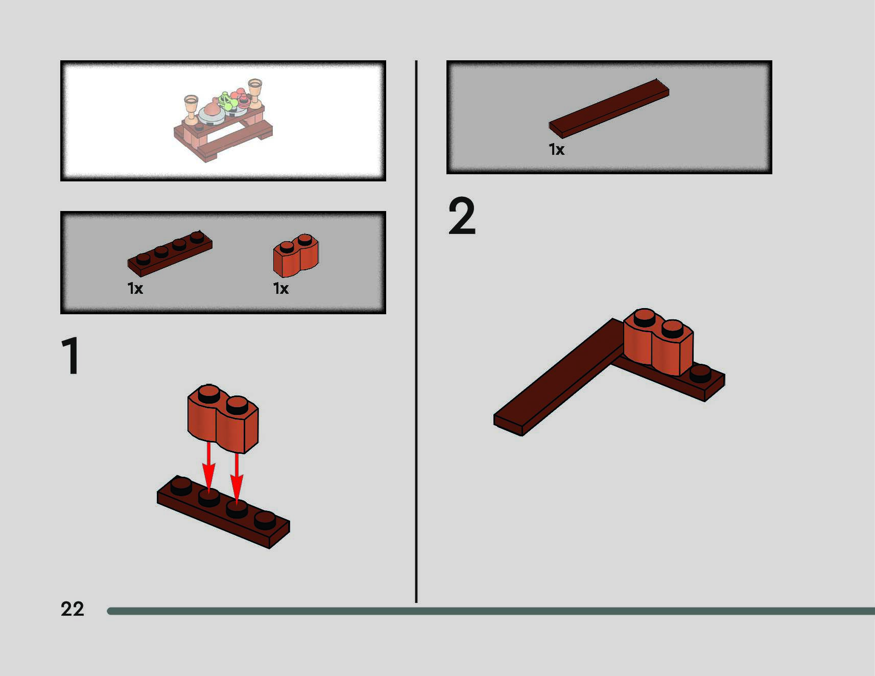 The assembly guide is prepared in a very understandable way for children and adult LEGO enthusiasts. A total of 48 picture galleries are shown, explaining the step-by-step construction stages for 1 different structures.