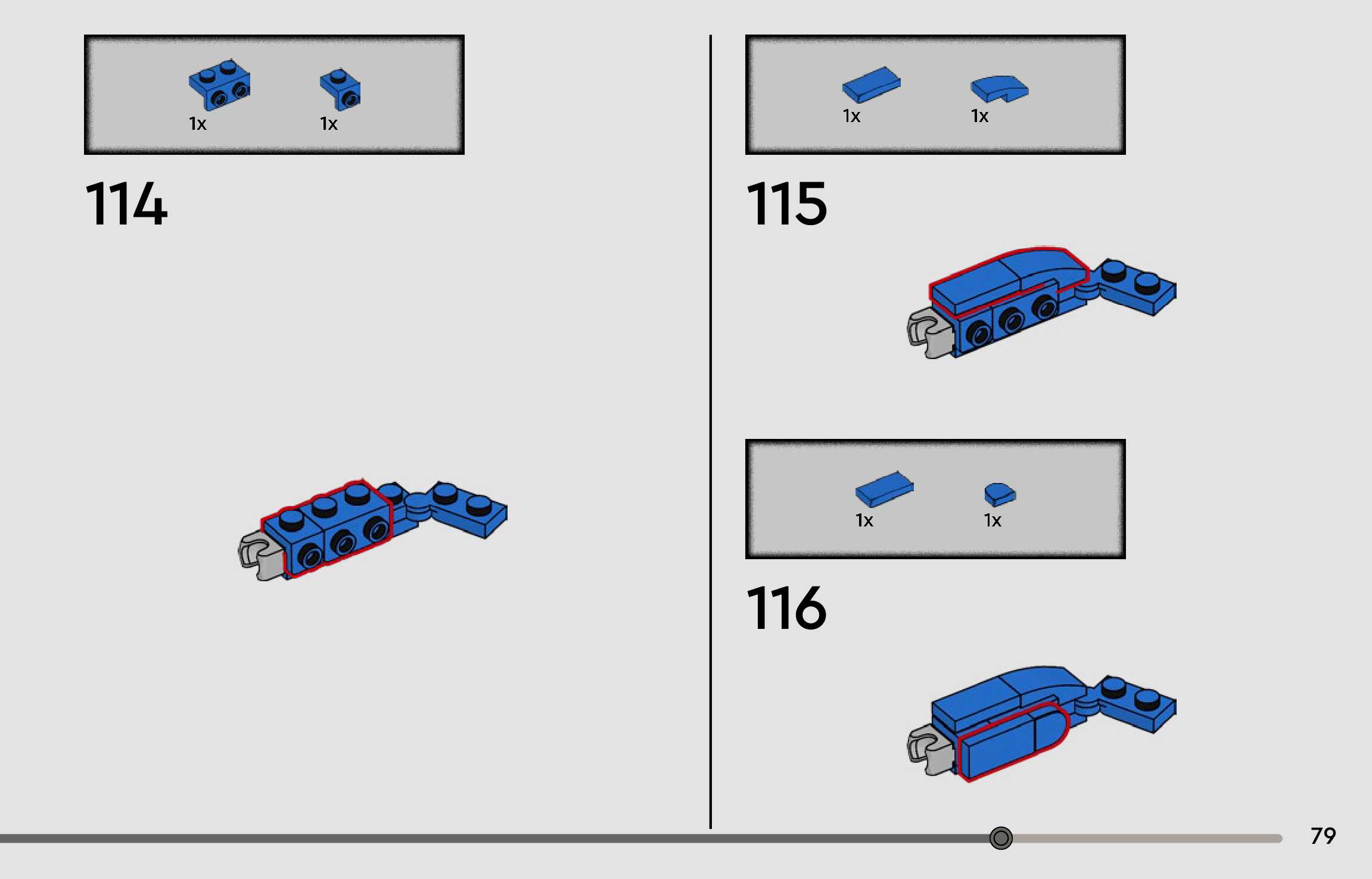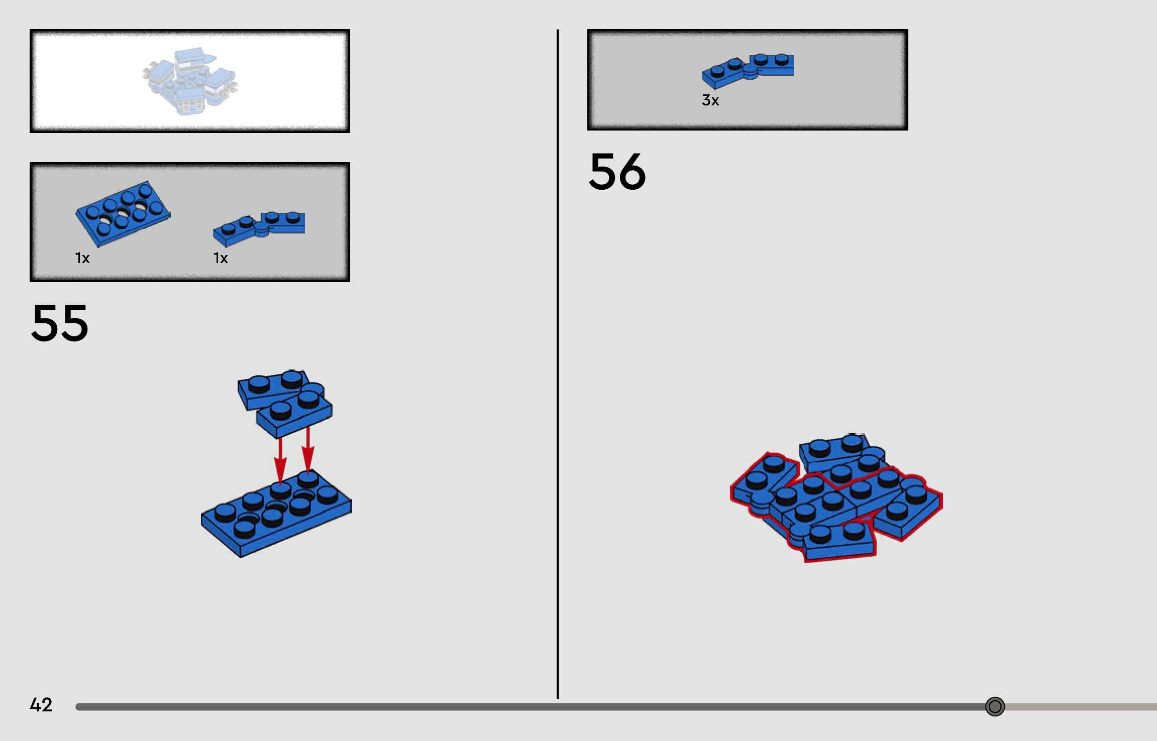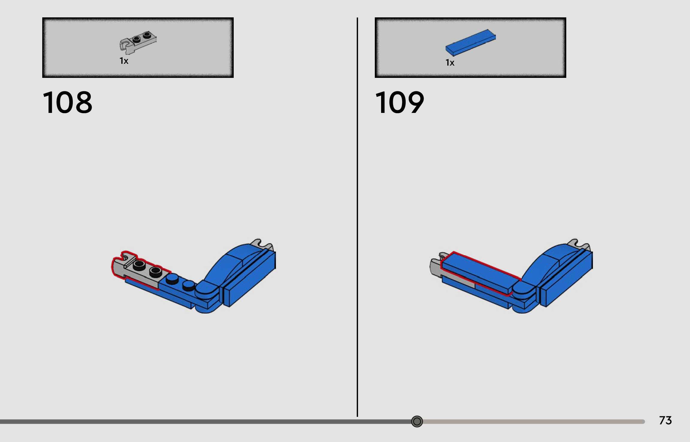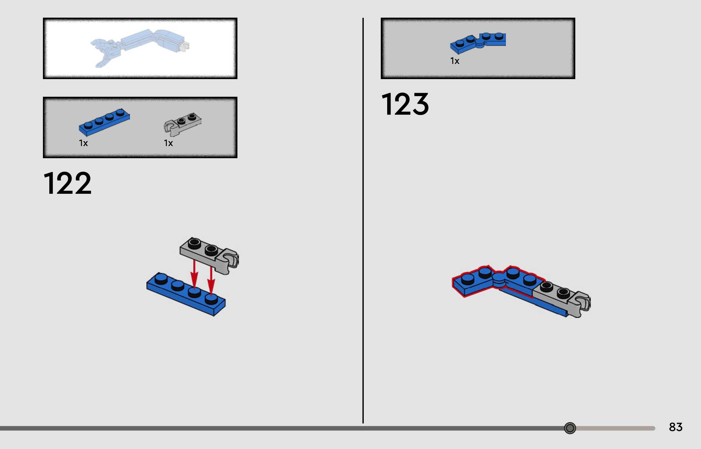 The assembly guide is prepared in a very understandable way for children and adult LEGO enthusiasts. A total of 96 picture galleries are shown, explaining the step-by-step construction stages for 1 different structures.
