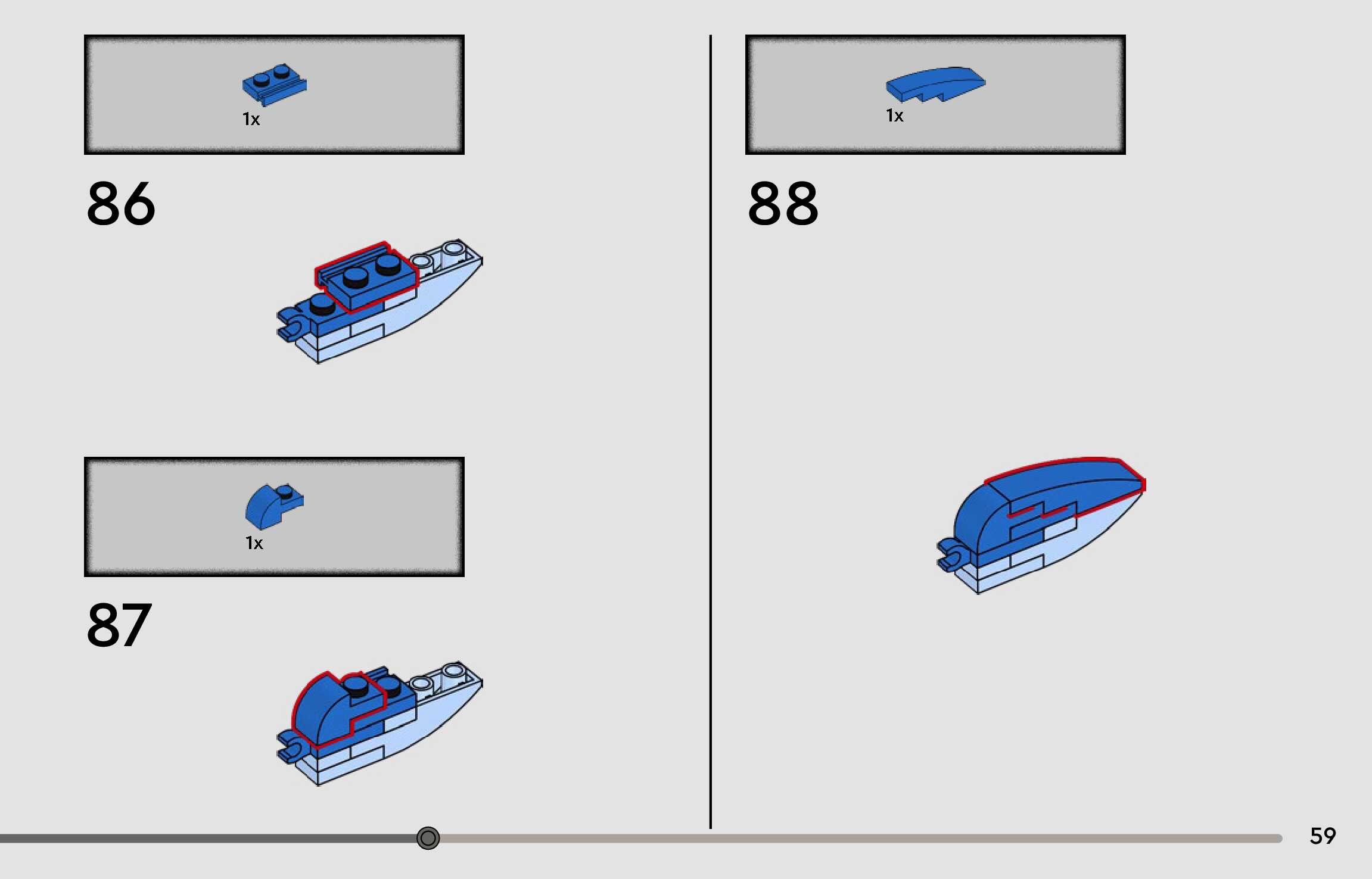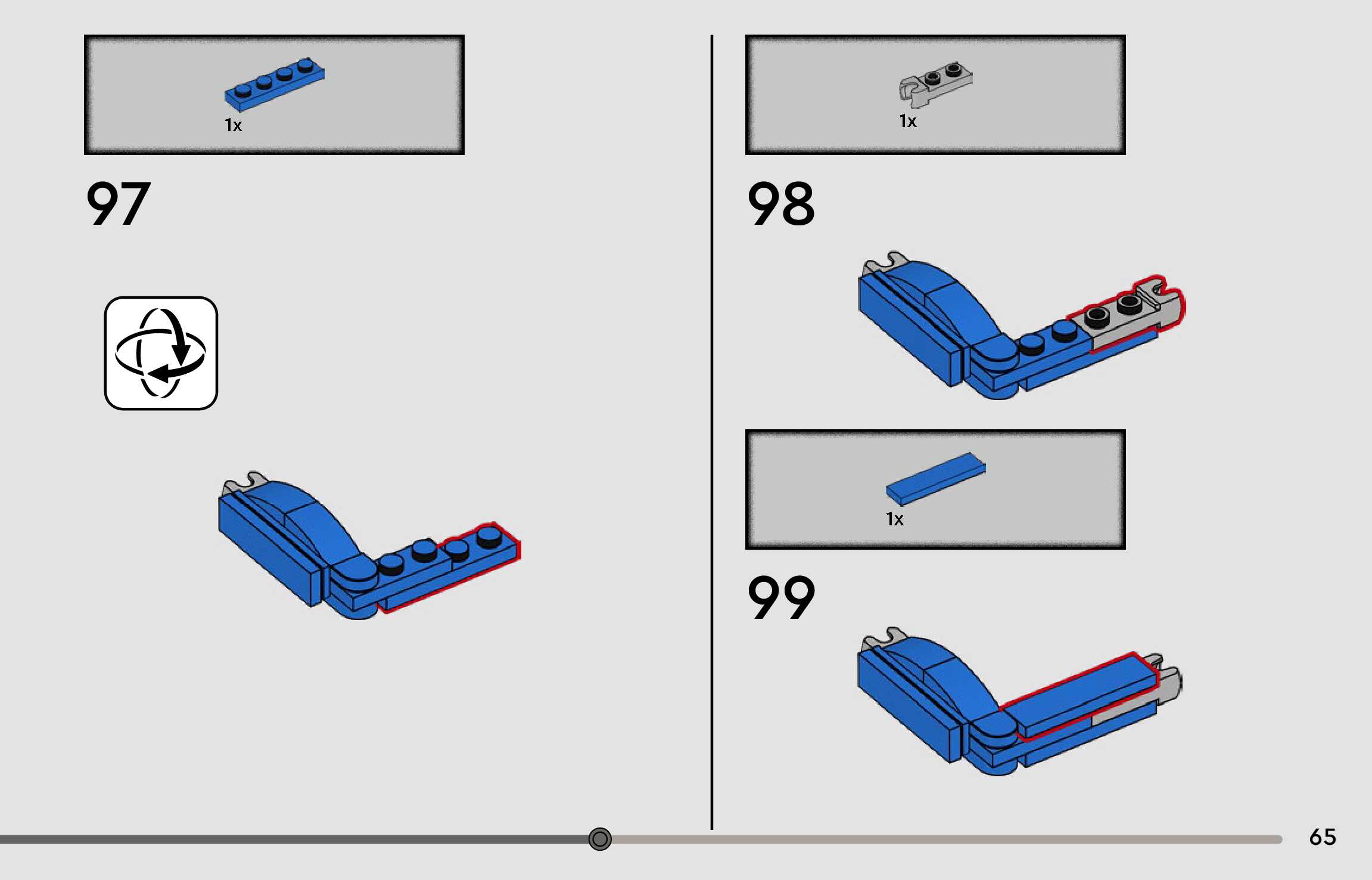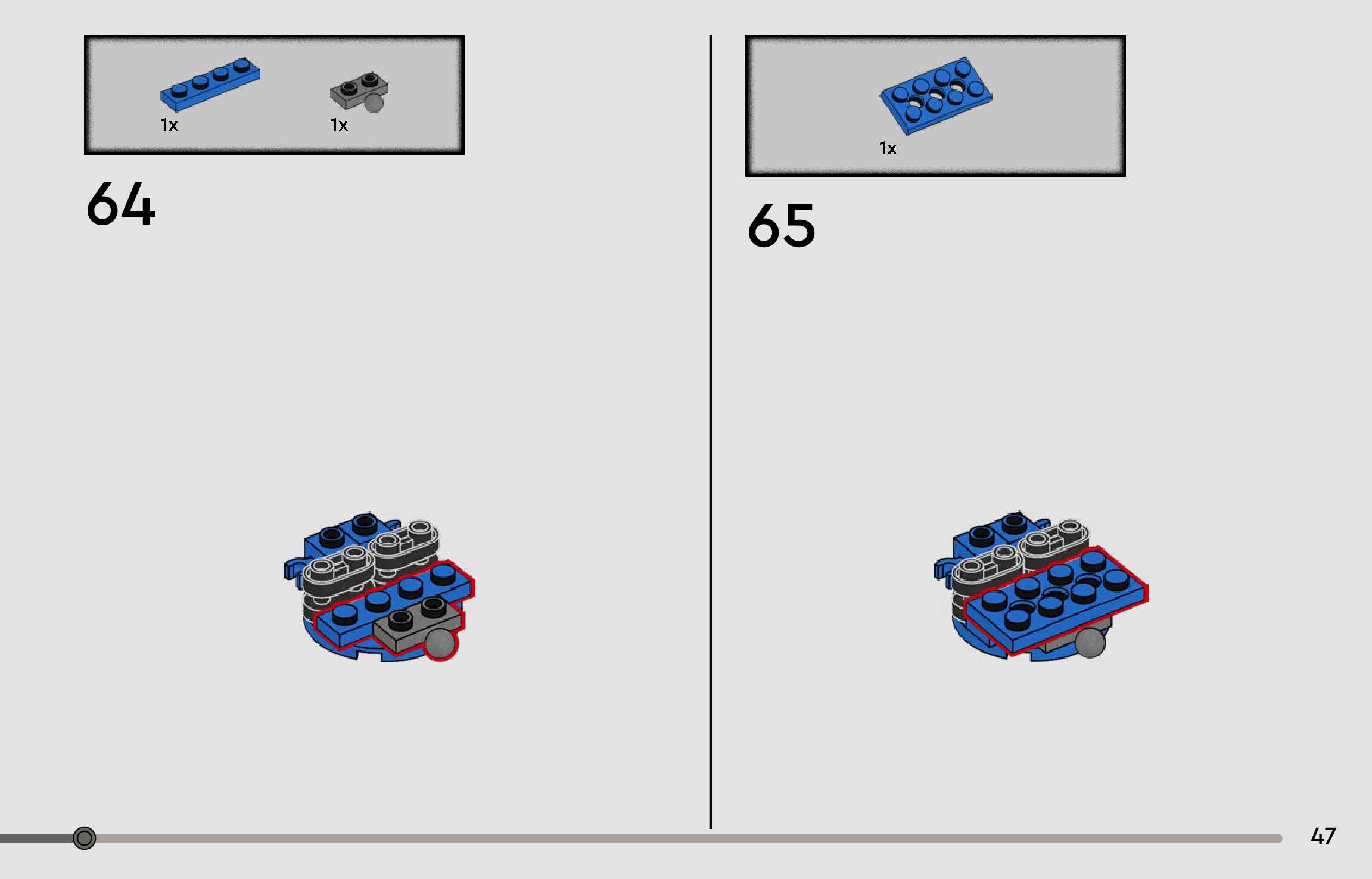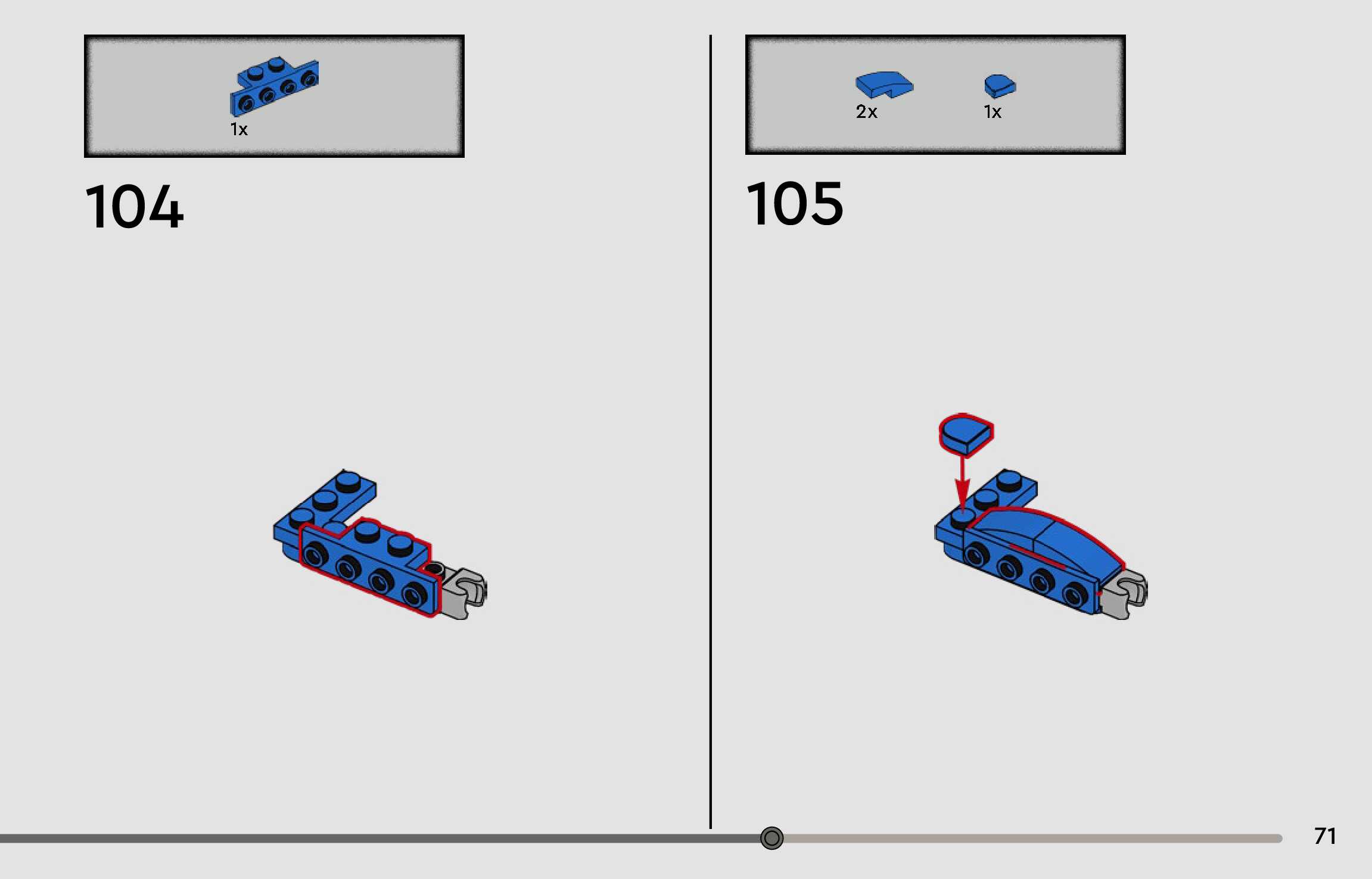 The assembly guide is prepared in a very understandable way for children and adult LEGO enthusiasts. A total of 96 picture galleries are shown, explaining the step-by-step construction stages for 1 different structures.