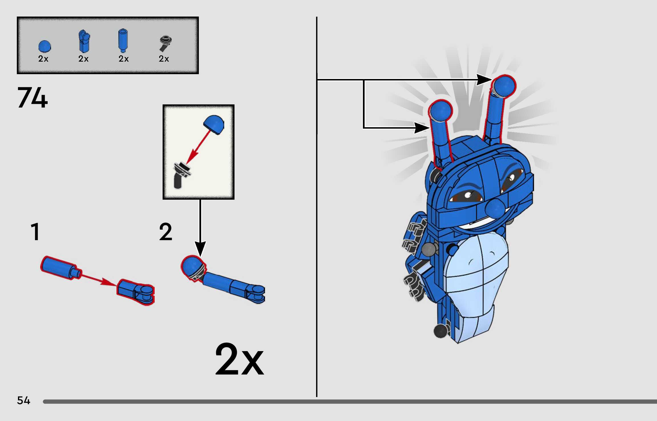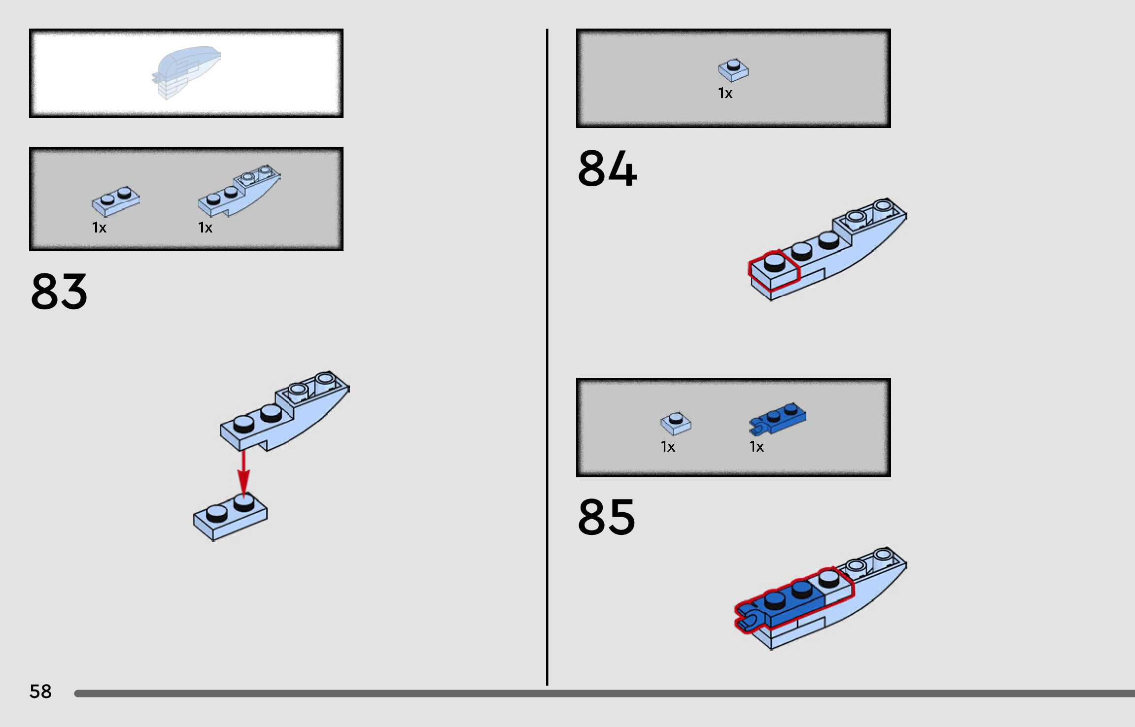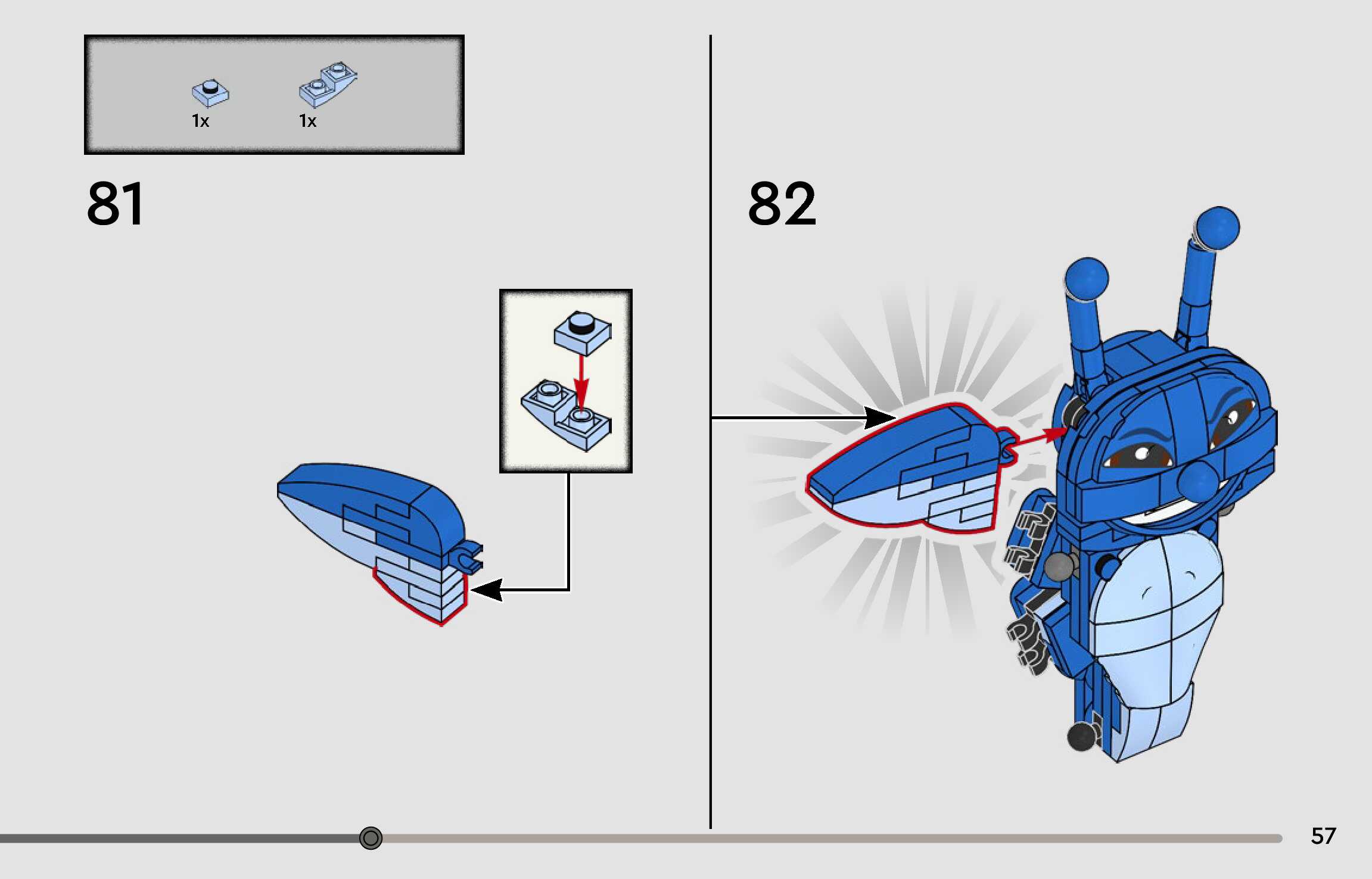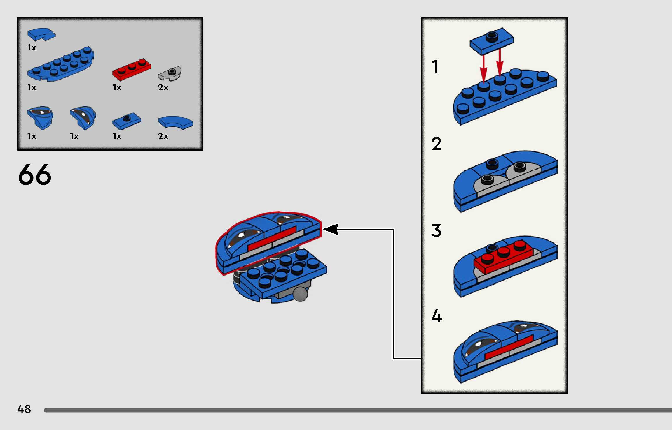 The assembly guide is prepared in a very understandable way for children and adult LEGO enthusiasts. A total of 96 picture galleries are shown, explaining the step-by-step construction stages for 1 different structures.