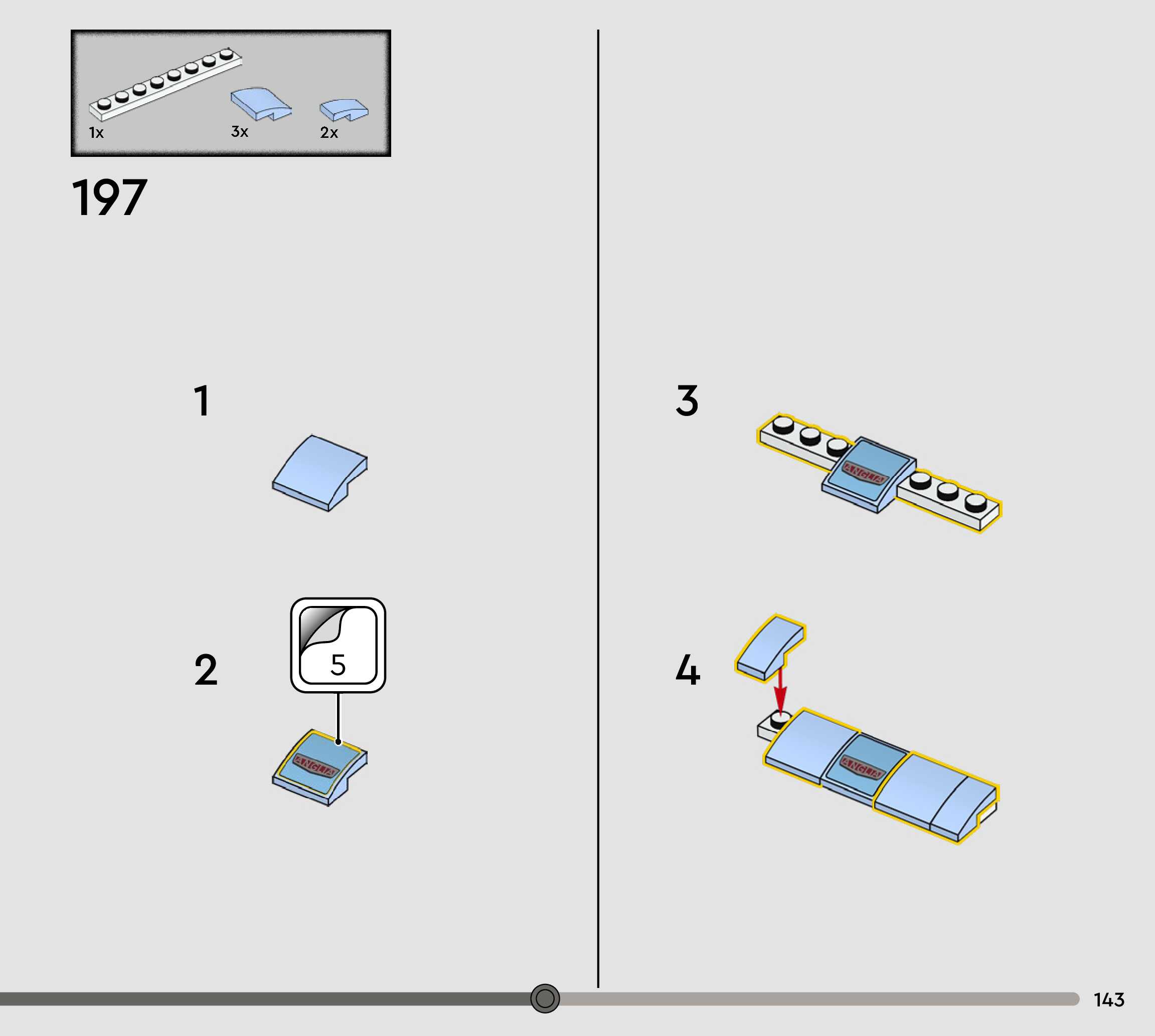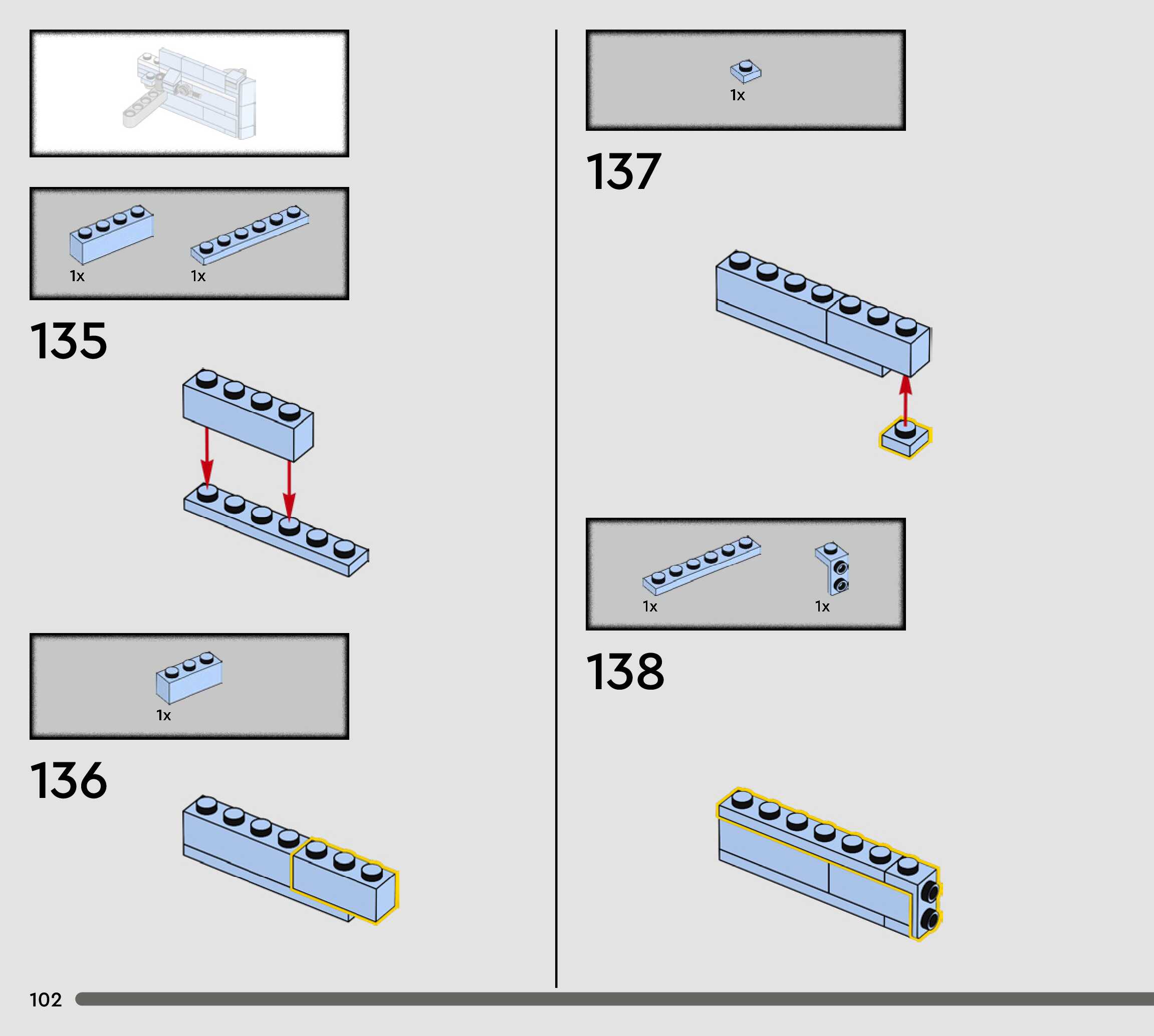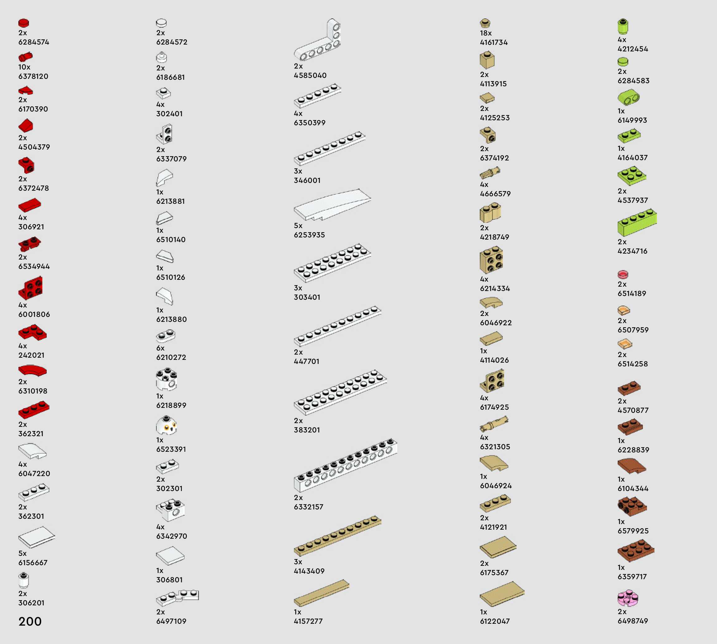 The assembly guide is prepared in a very understandable way for children and adult LEGO enthusiasts. A total of 204 picture galleries are shown, explaining the step-by-step construction stages for 1 different structures.