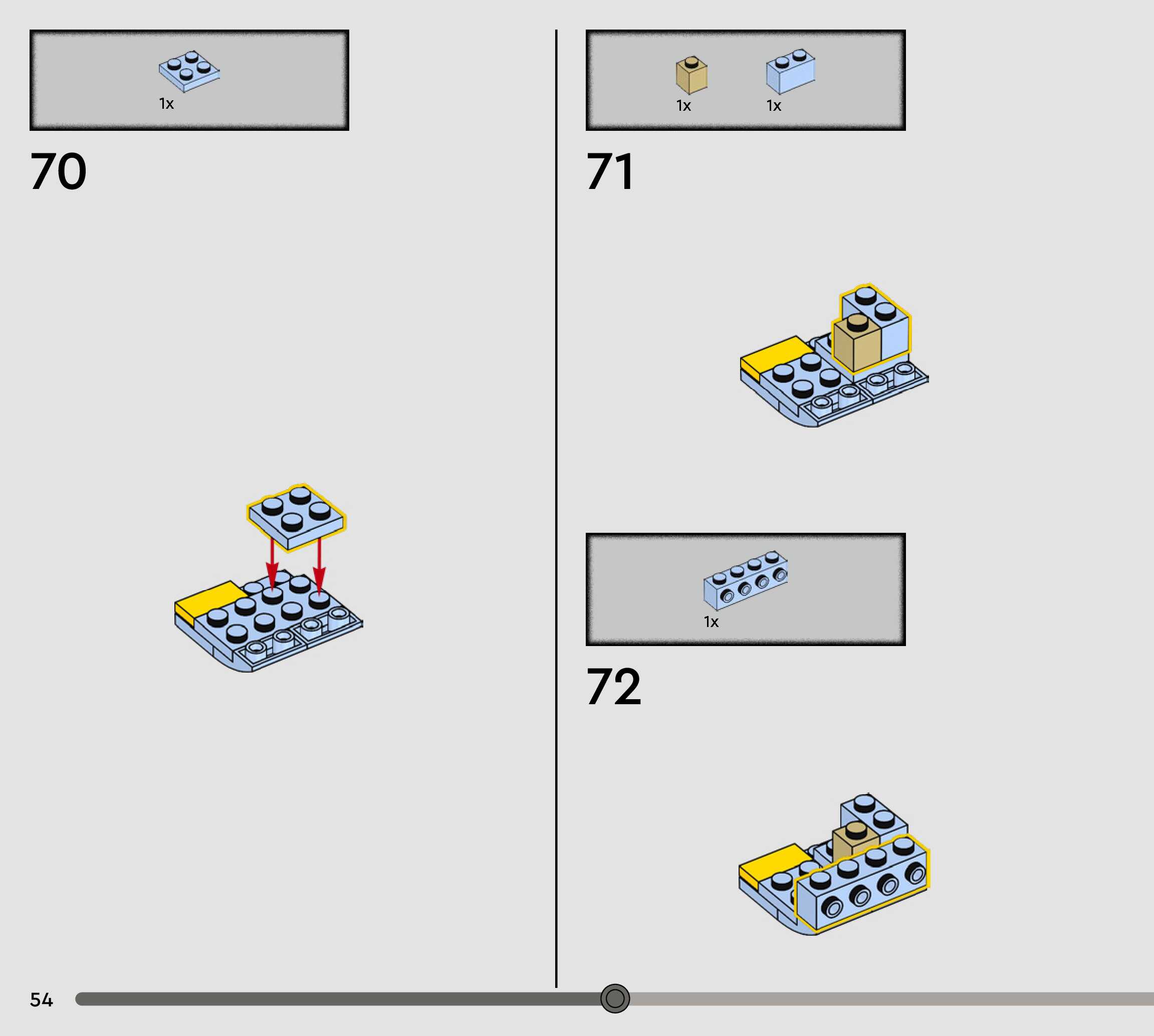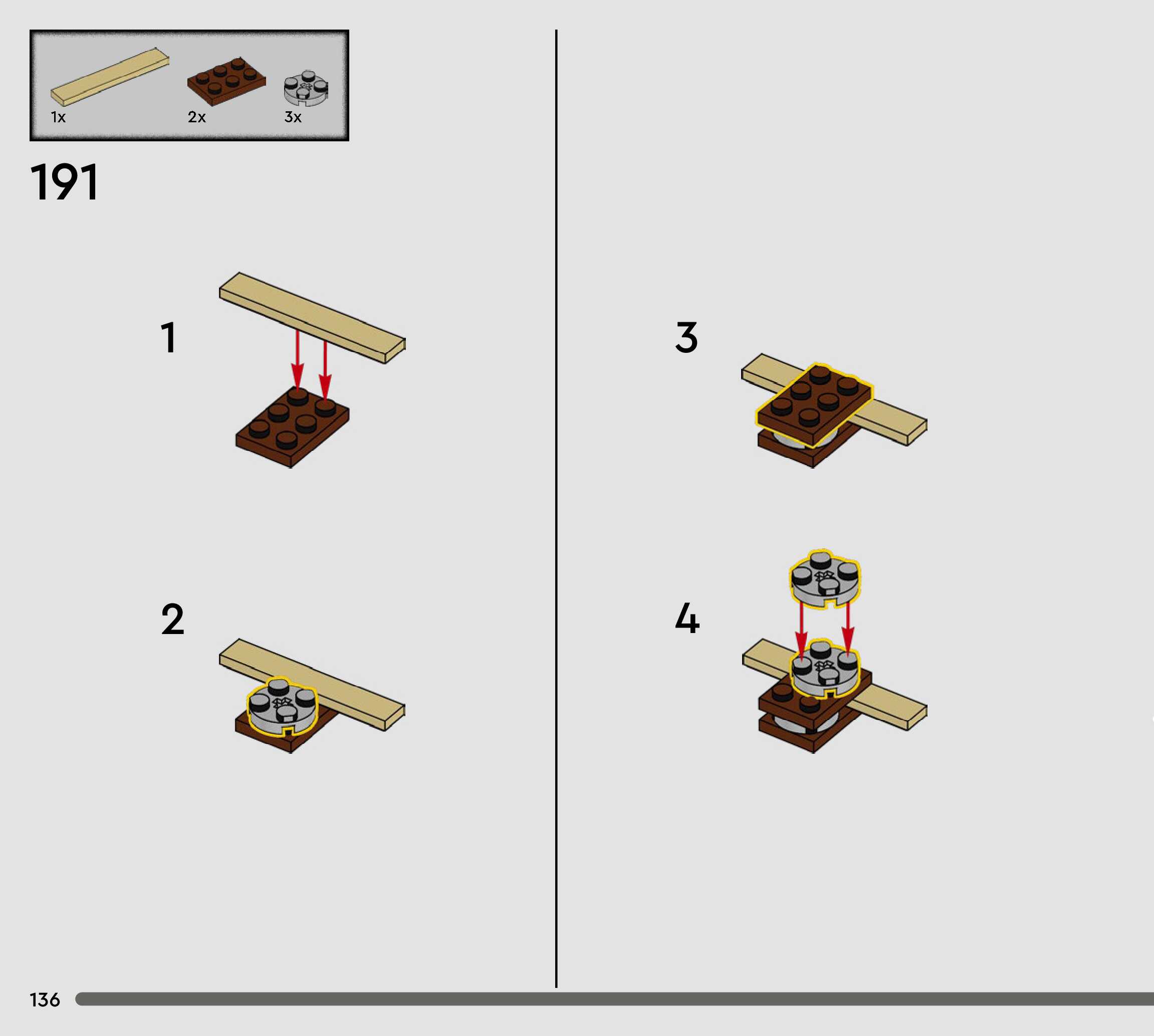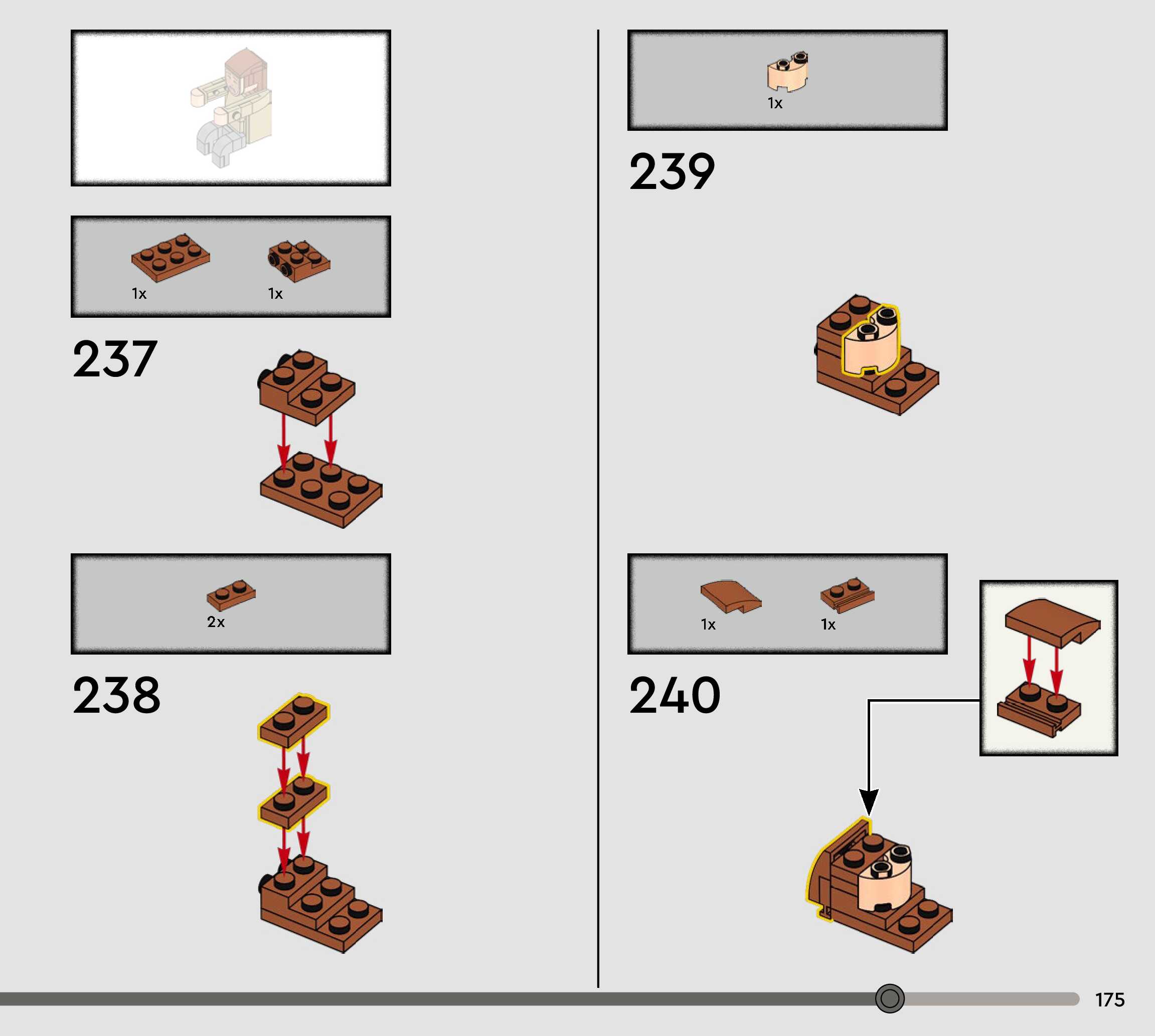 The assembly guide is prepared in a very understandable way for children and adult LEGO enthusiasts. A total of 204 picture galleries are shown, explaining the step-by-step construction stages for 1 different structures.