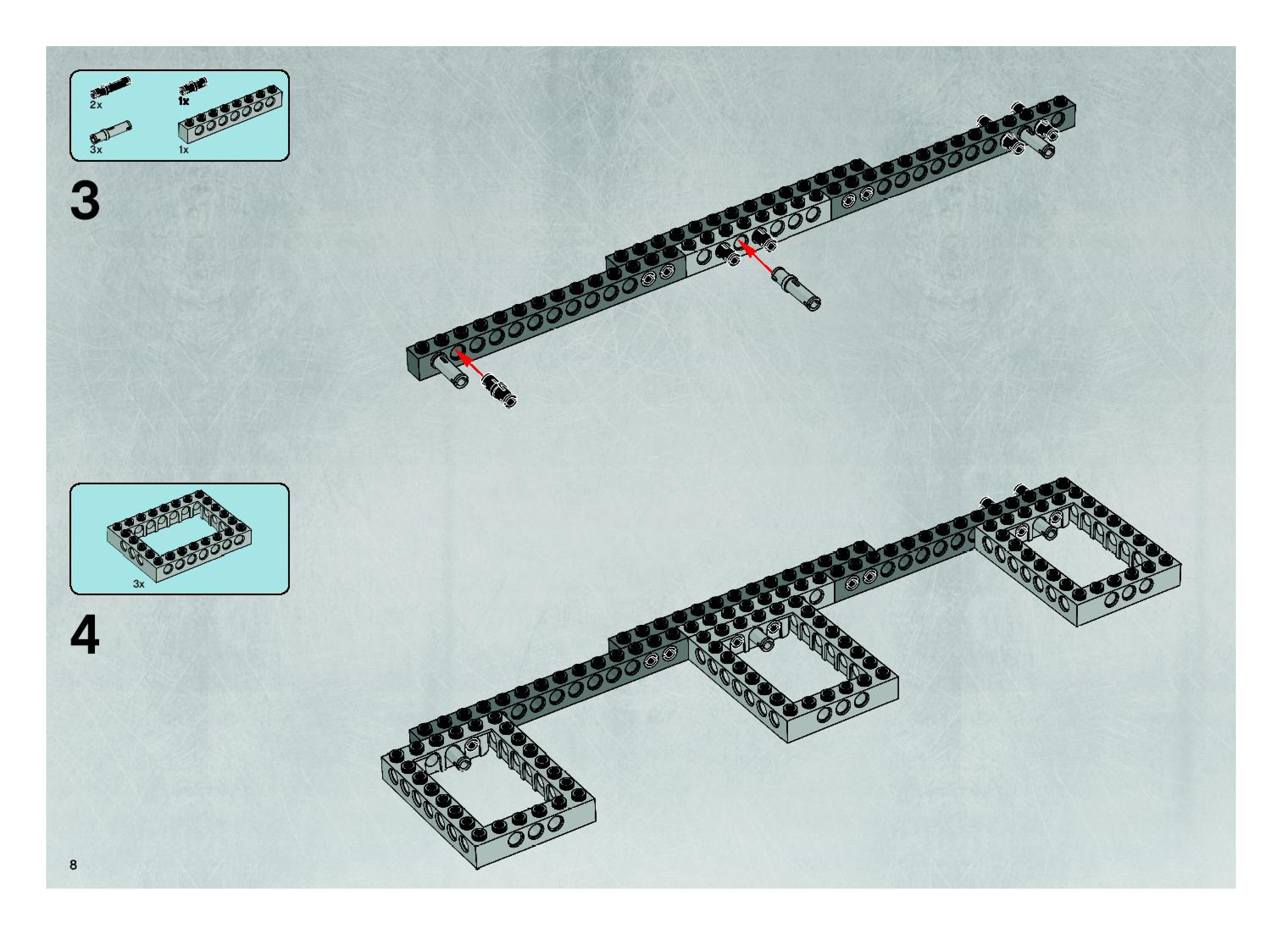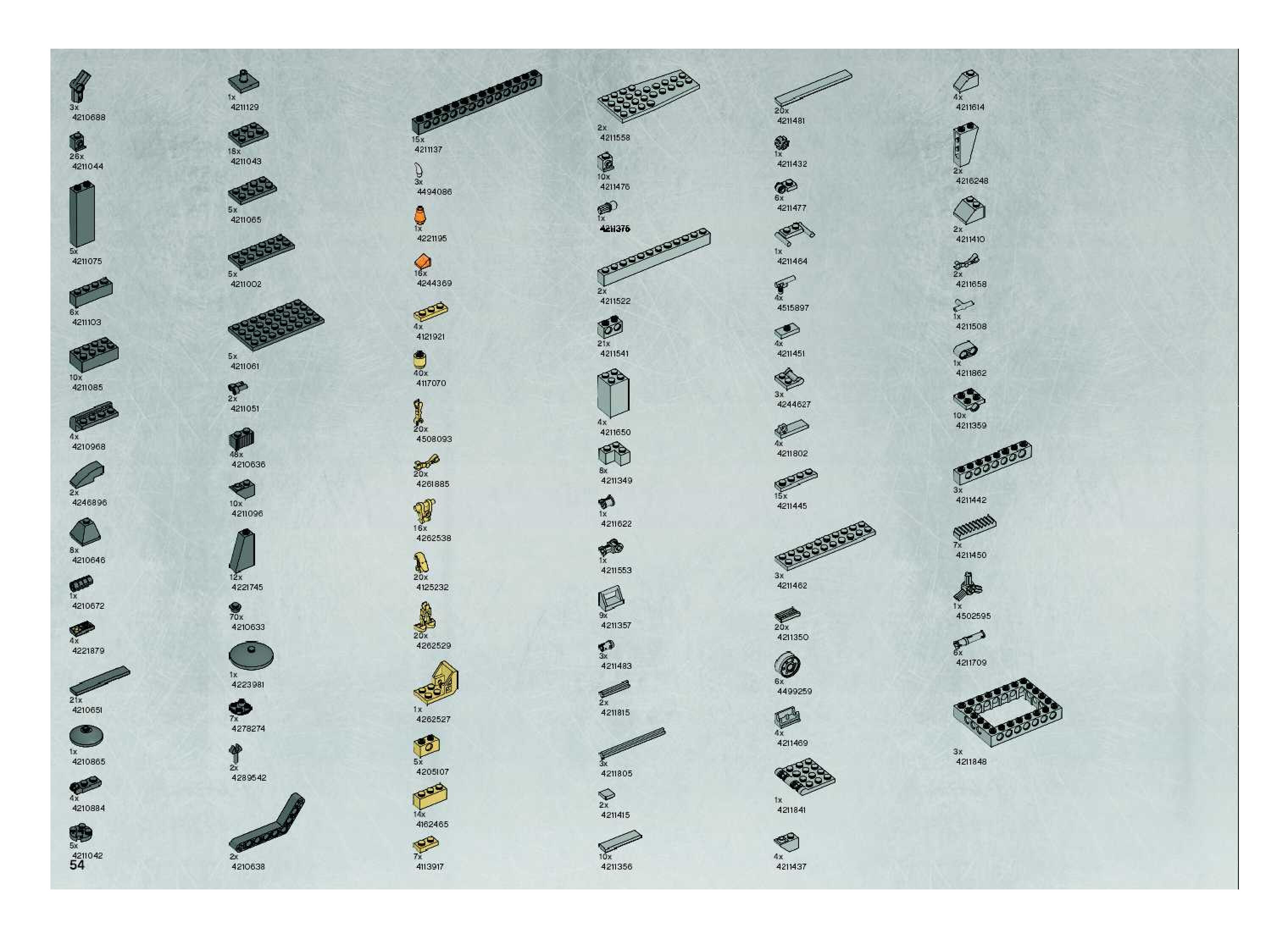 The assembly guide is prepared in a very understandable way for children and adult LEGO enthusiasts. A total of 140 picture galleries are shown, explaining the step-by-step construction stages for 2 different structures.
