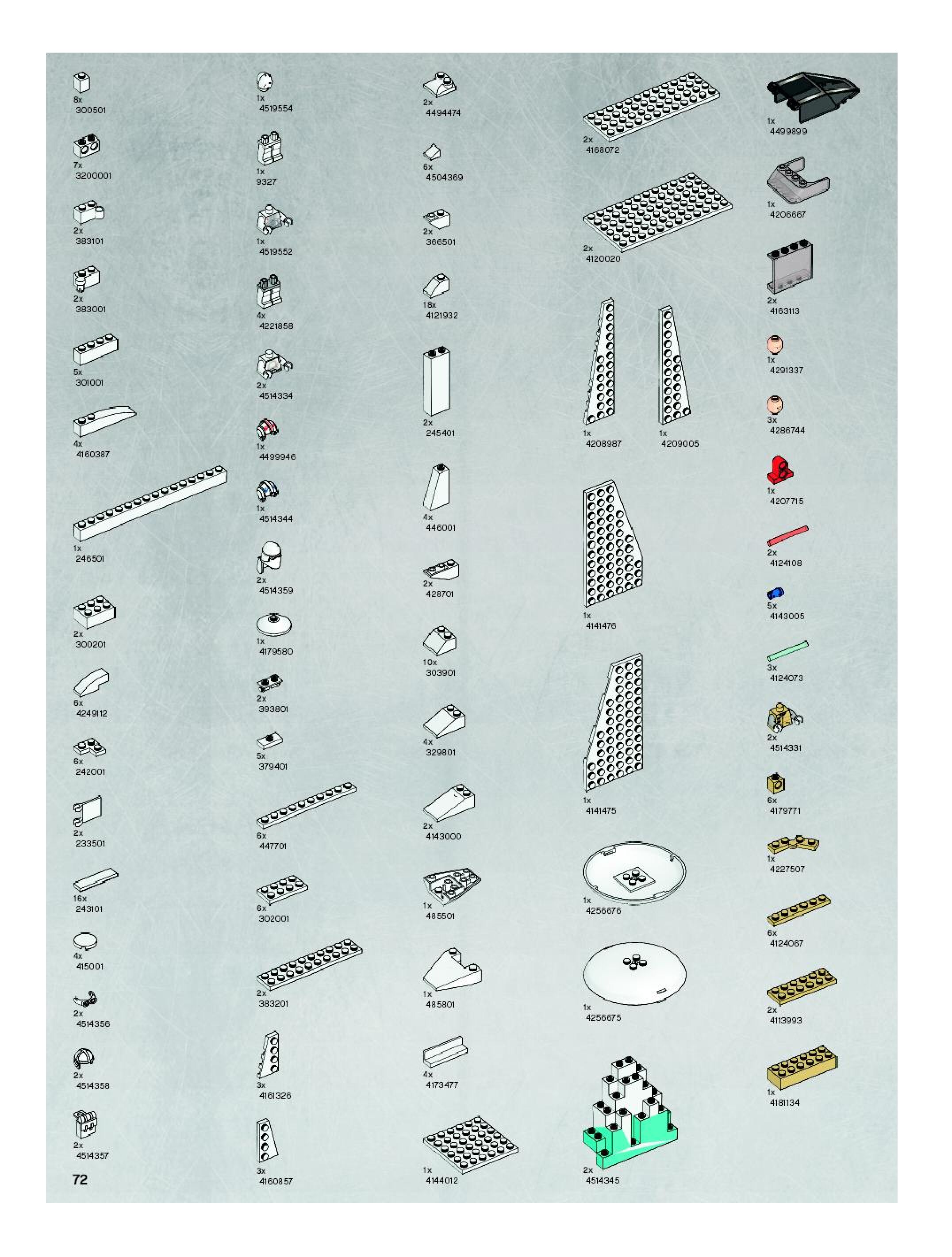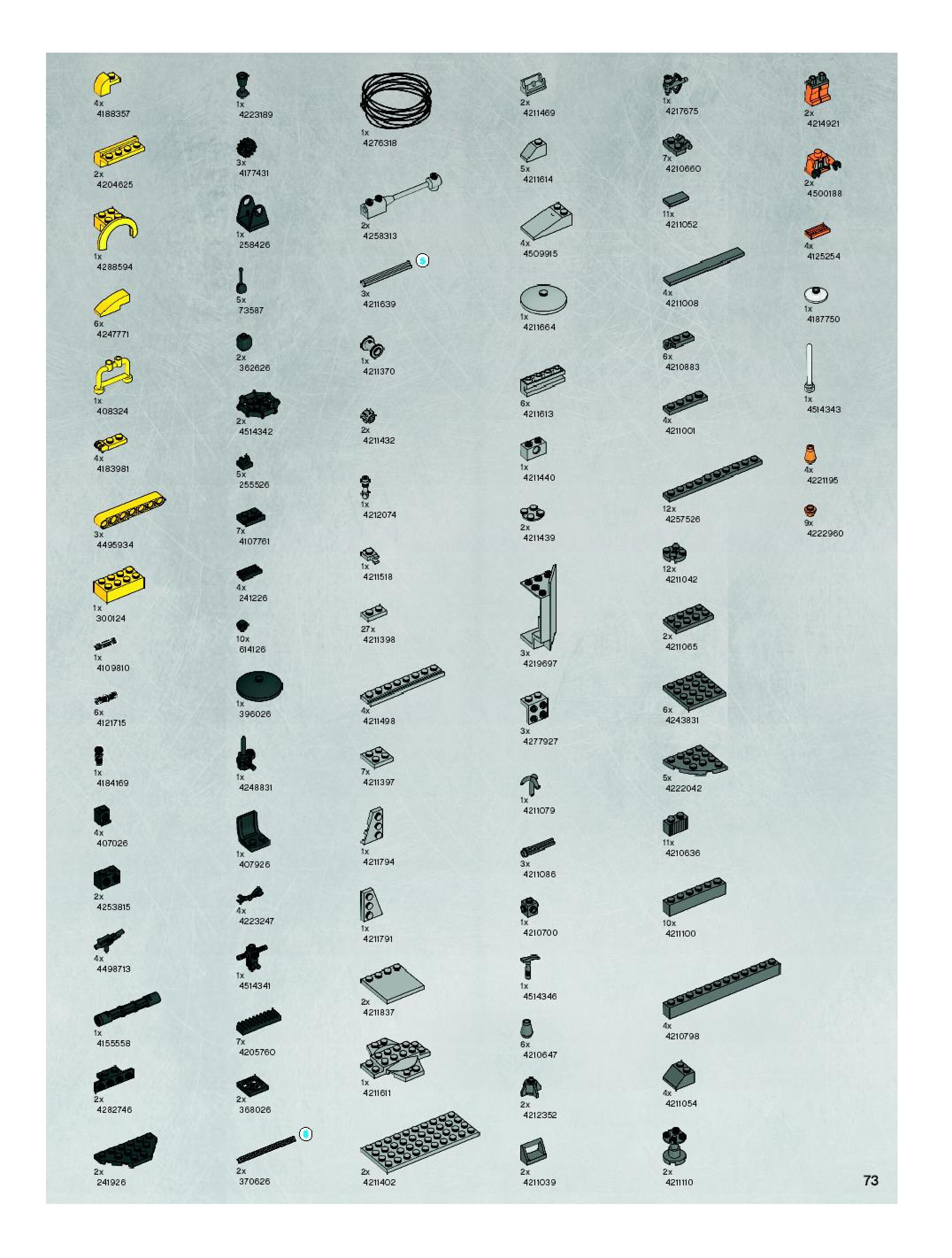 The assembly guide is prepared in a very understandable way for children and adult LEGO enthusiasts. A total of 76 picture galleries are shown, explaining the step-by-step construction stages for 1 different structures.