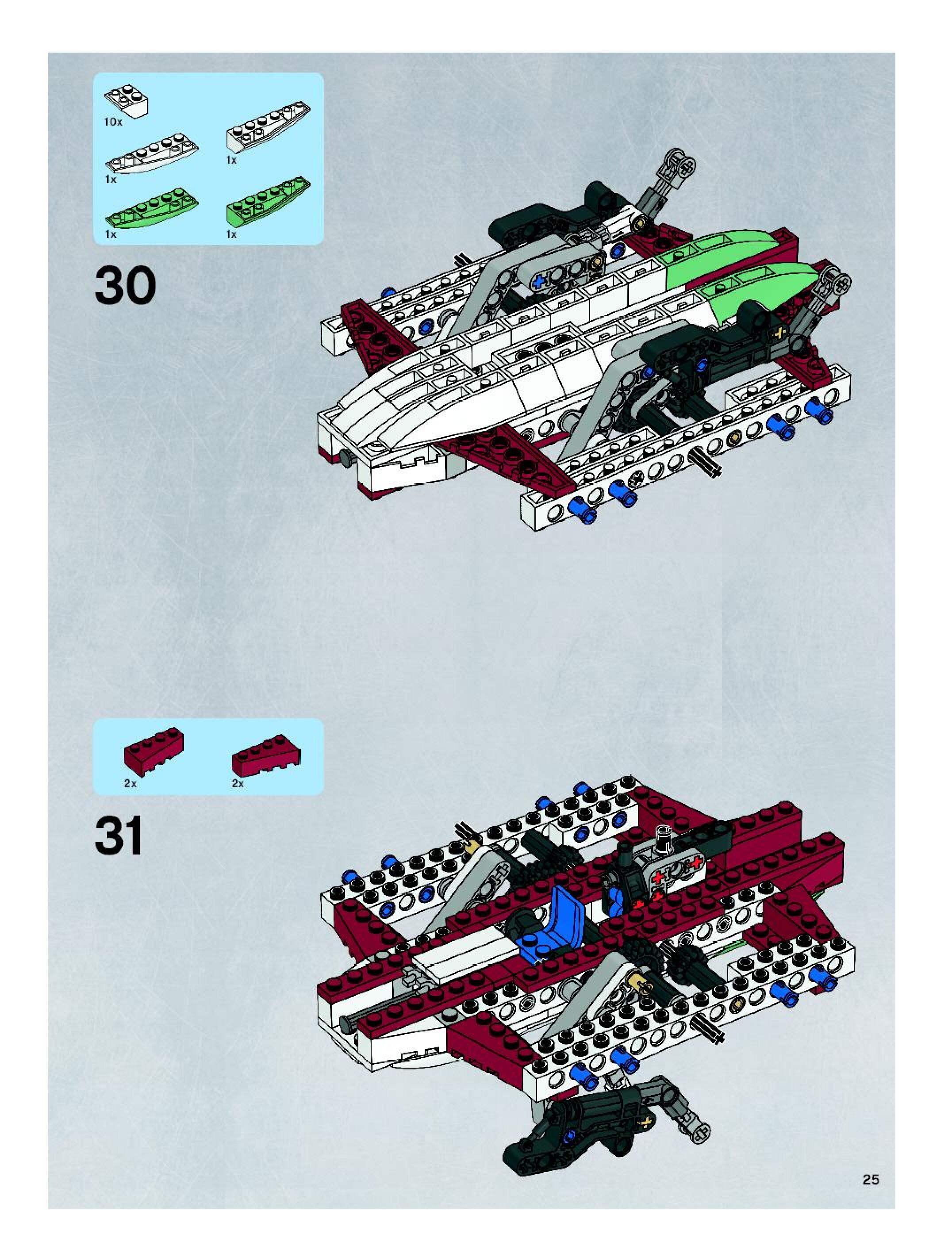 The assembly guide is prepared in a very understandable way for children and adult LEGO enthusiasts. A total of 96 picture galleries are shown, explaining the step-by-step construction stages for 2 different structures.