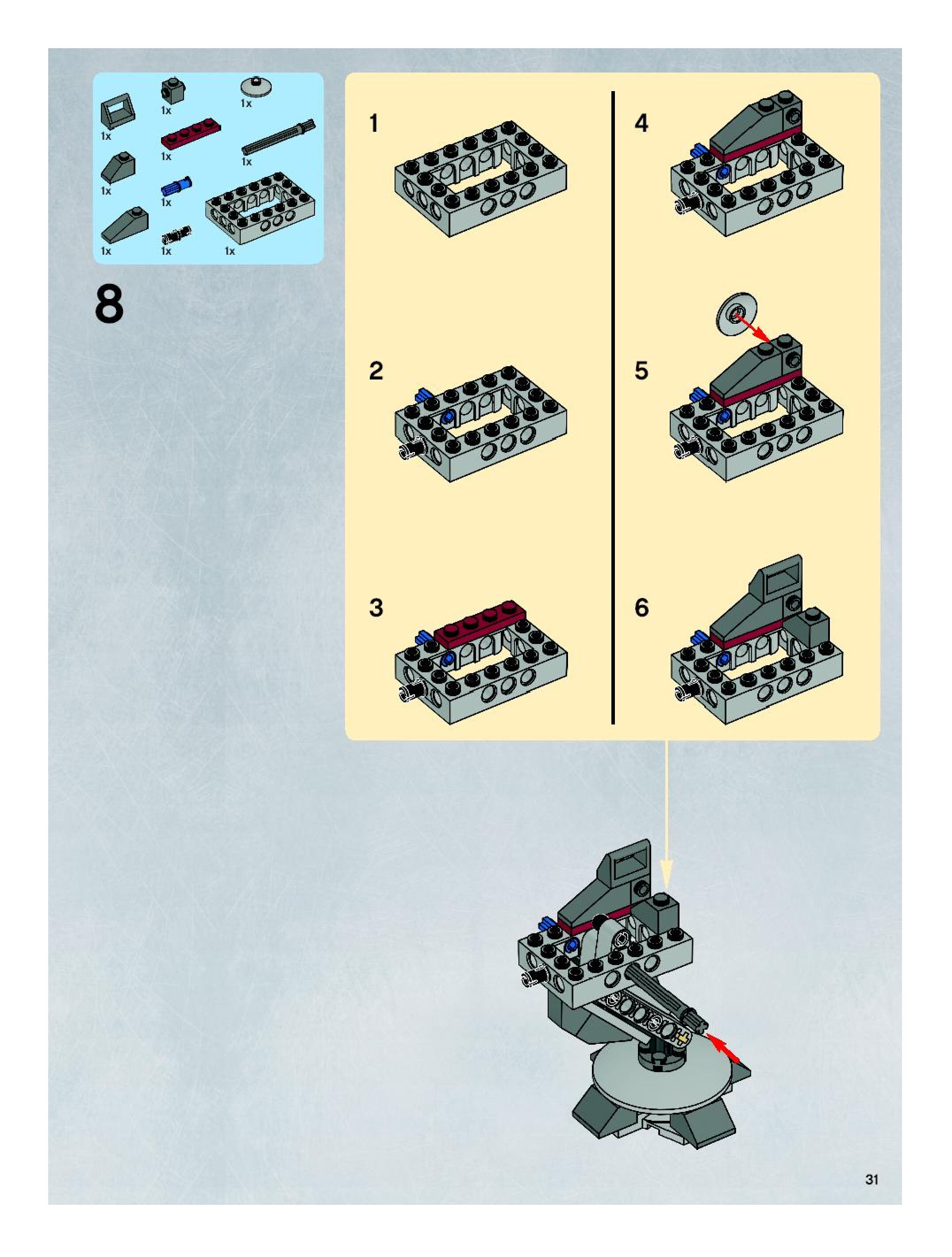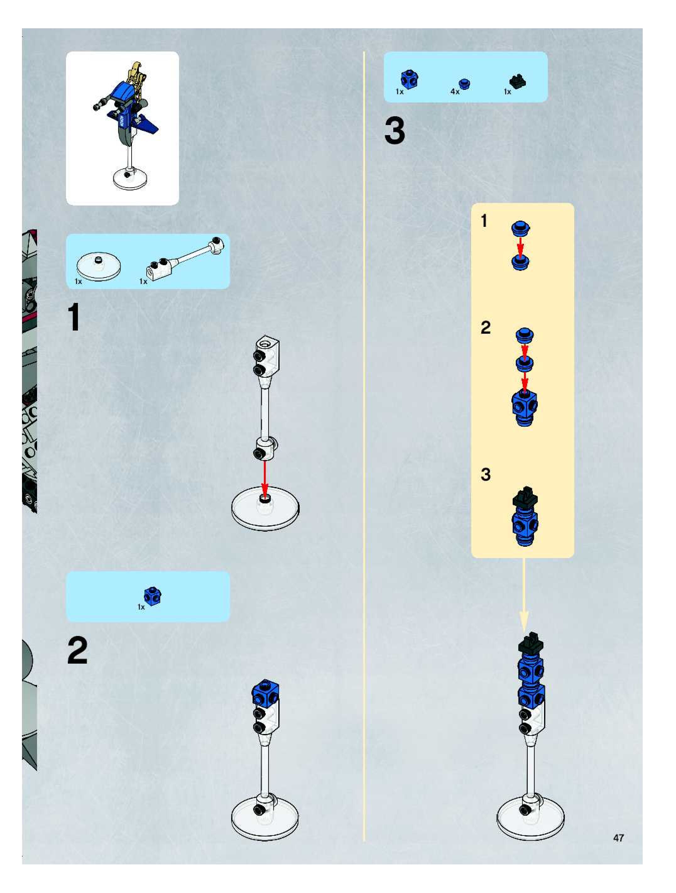 The assembly guide is prepared in a very understandable way for children and adult LEGO enthusiasts. A total of 132 picture galleries are shown, explaining the step-by-step construction stages for 2 different structures.