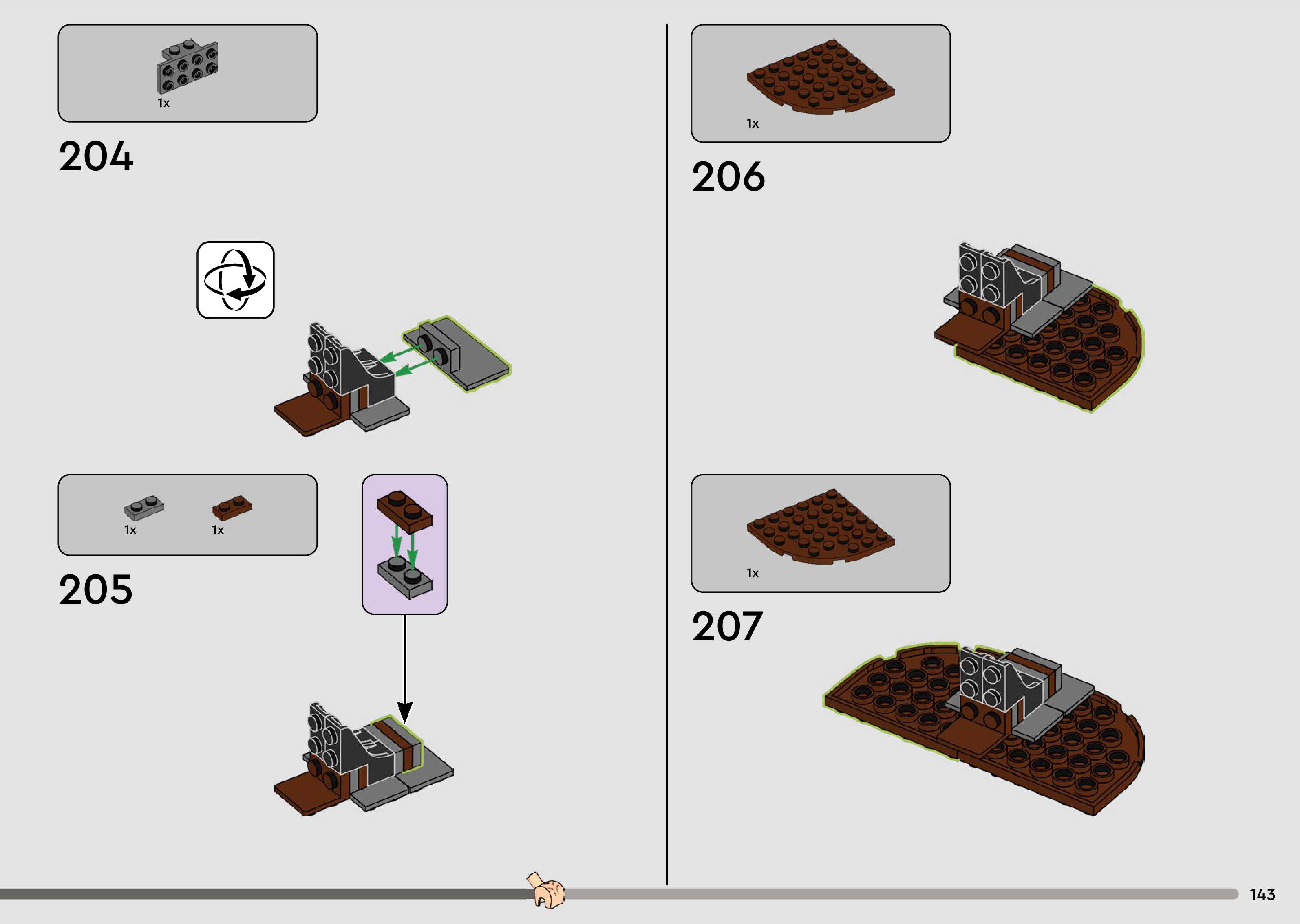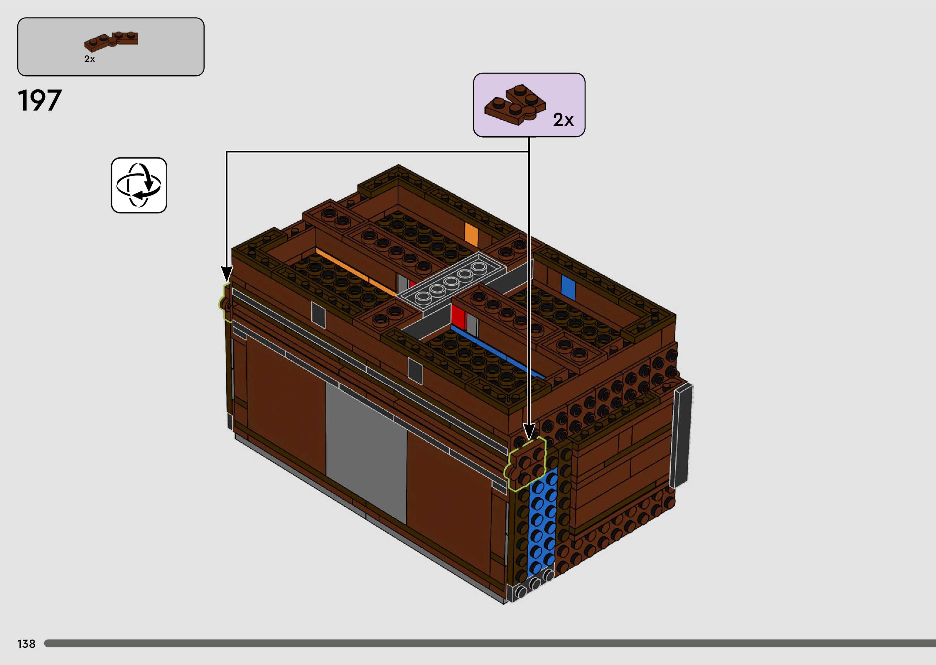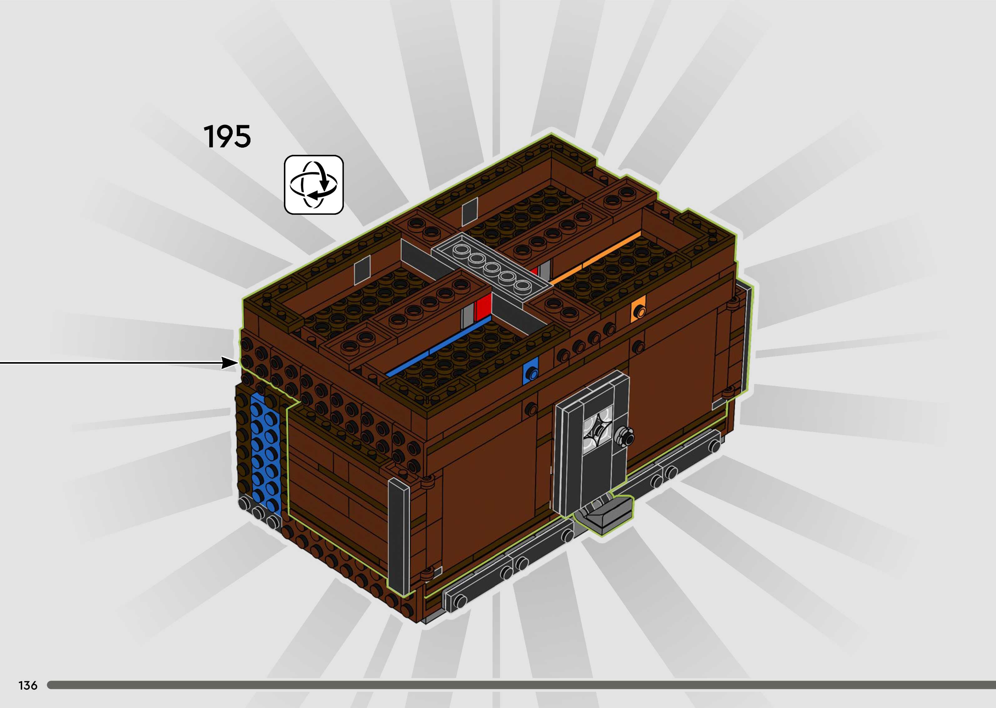 The assembly guide is prepared in a very understandable way for children and adult LEGO enthusiasts. A total of 204 picture galleries are shown, explaining the step-by-step construction stages for 1 different structures.