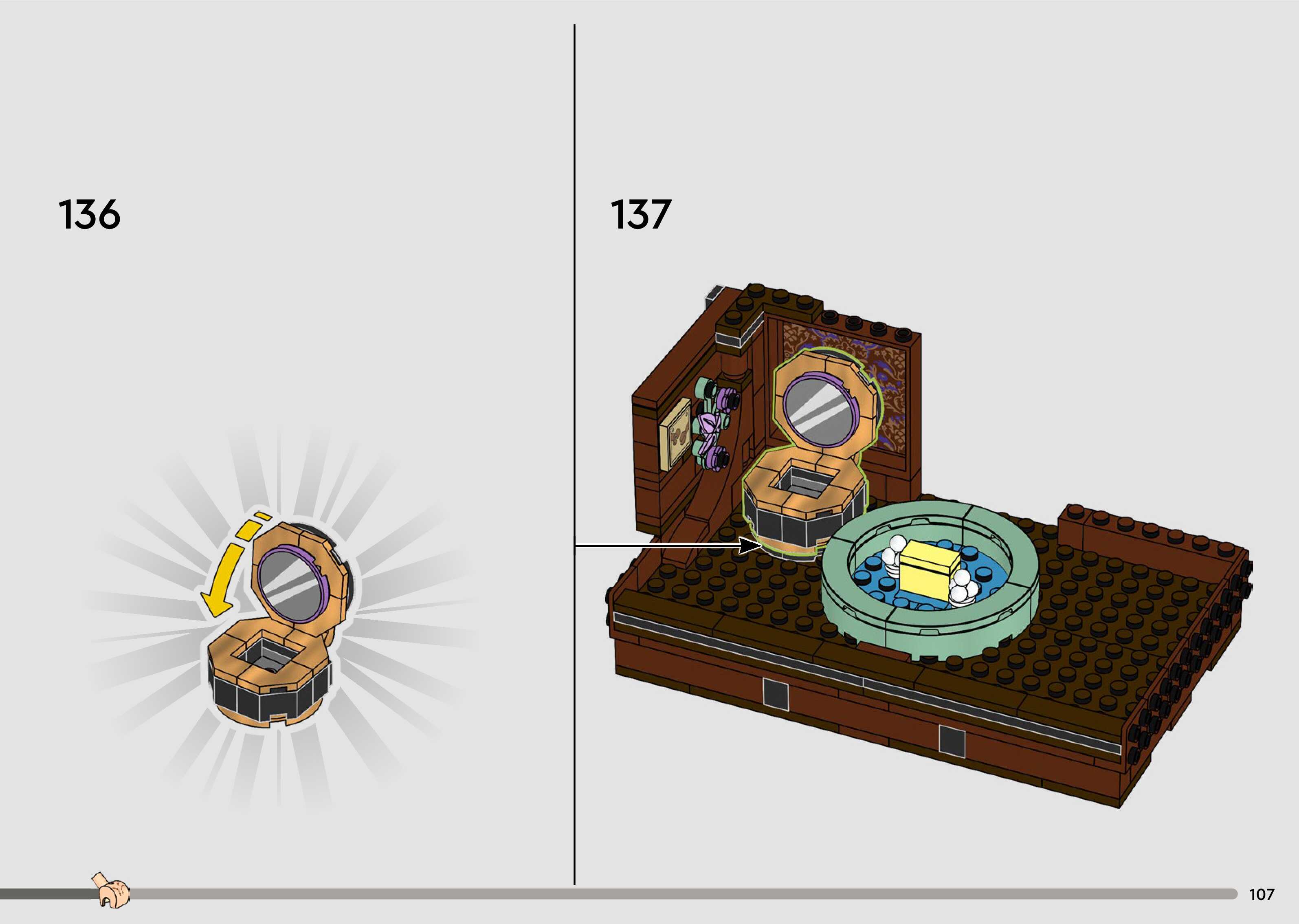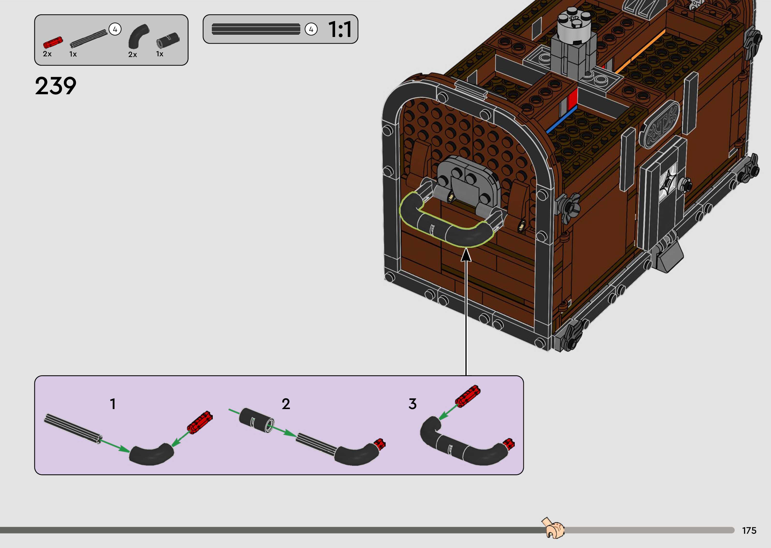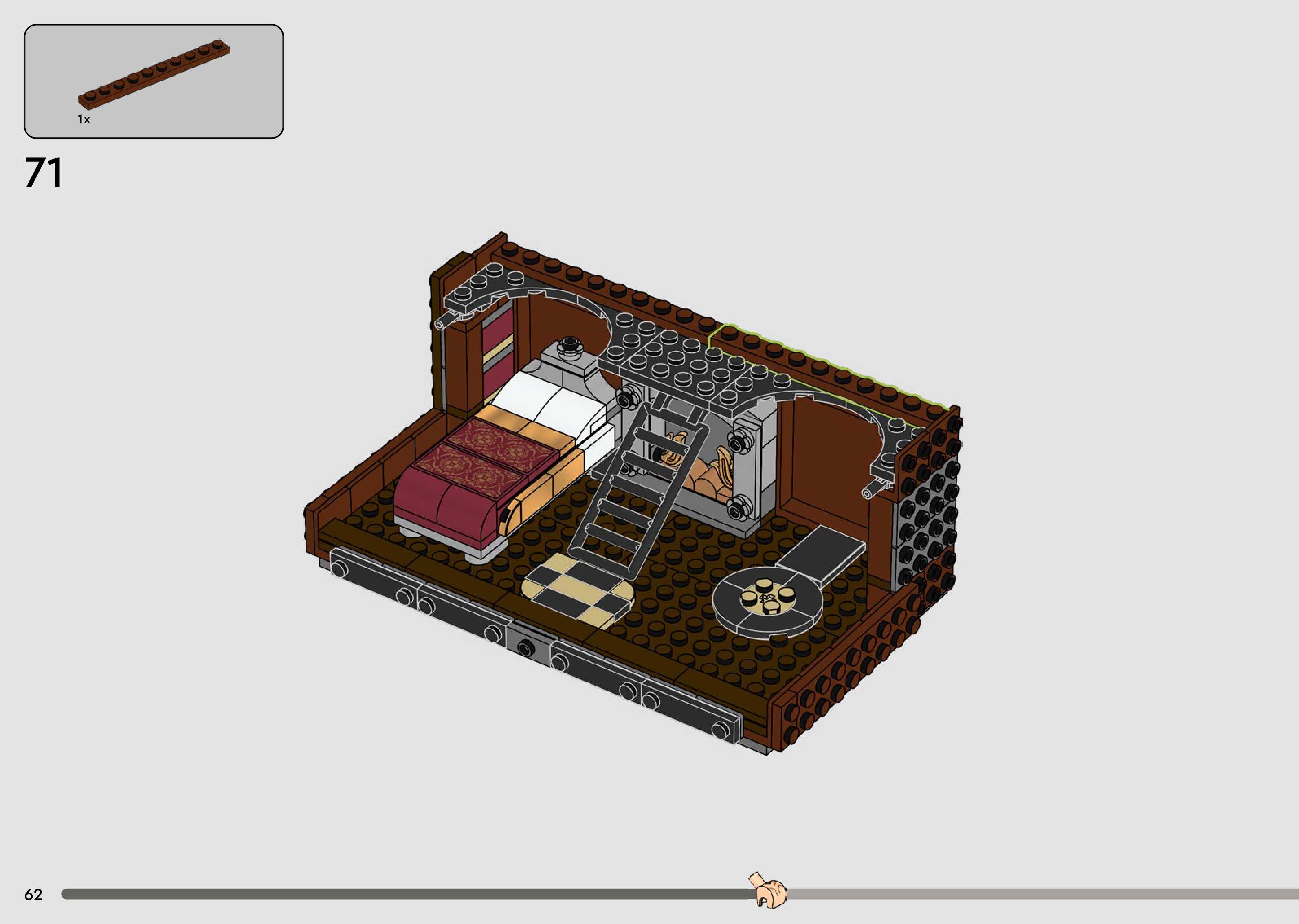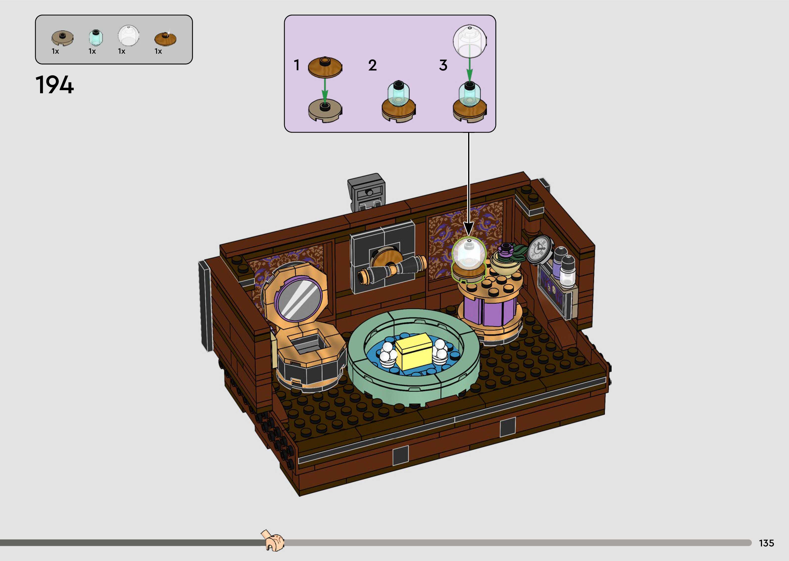 The assembly guide is prepared in a very understandable way for children and adult LEGO enthusiasts. A total of 204 picture galleries are shown, explaining the step-by-step construction stages for 1 different structures.