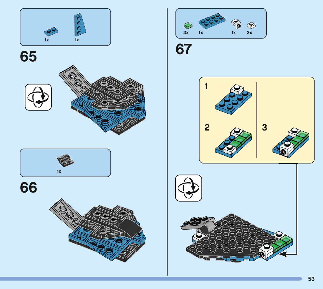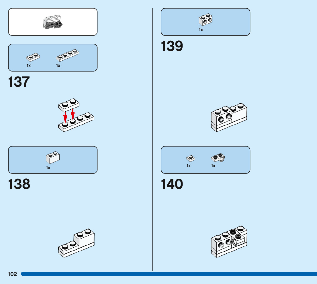The assembly guide is prepared in a very understandable way for children and adult LEGO enthusiasts. A total of 132 picture galleries are shown, explaining the step-by-step construction stages for 1 different structures.