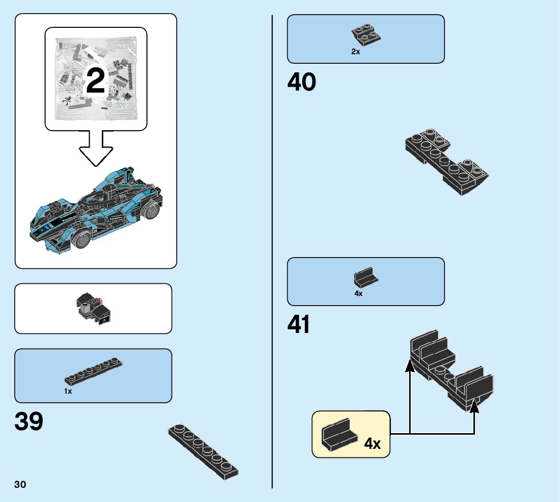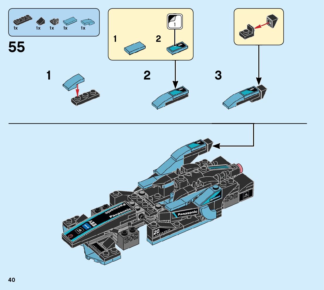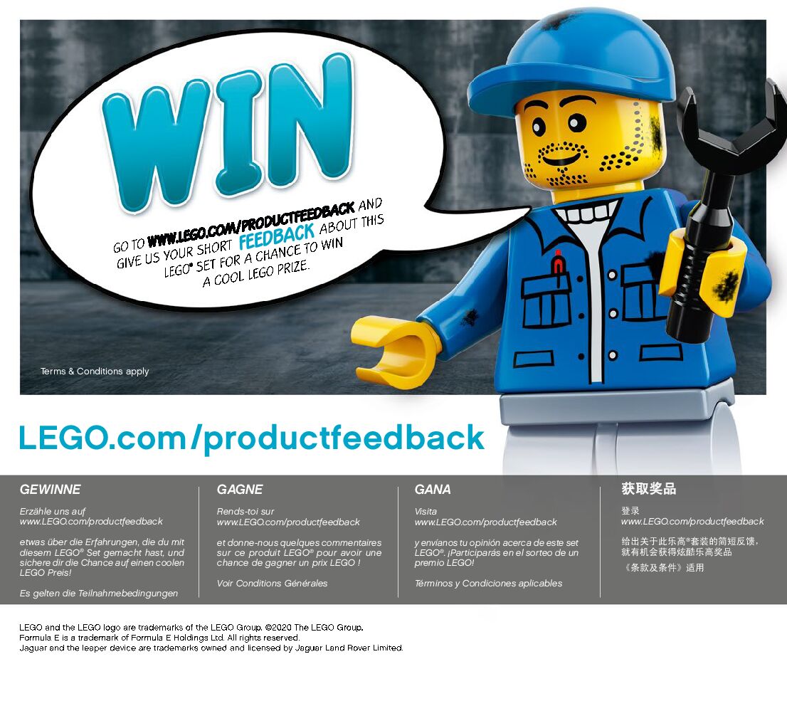 On this page you can find the original construction manual for the LEGO 76898 set. With the assembly manual you can easily learn how to build the 76898 Formula E Panasonic Jaguar Racing GEN2 car & Jaguar I-PACE eTROPHY step by step. The set was released in 2020.