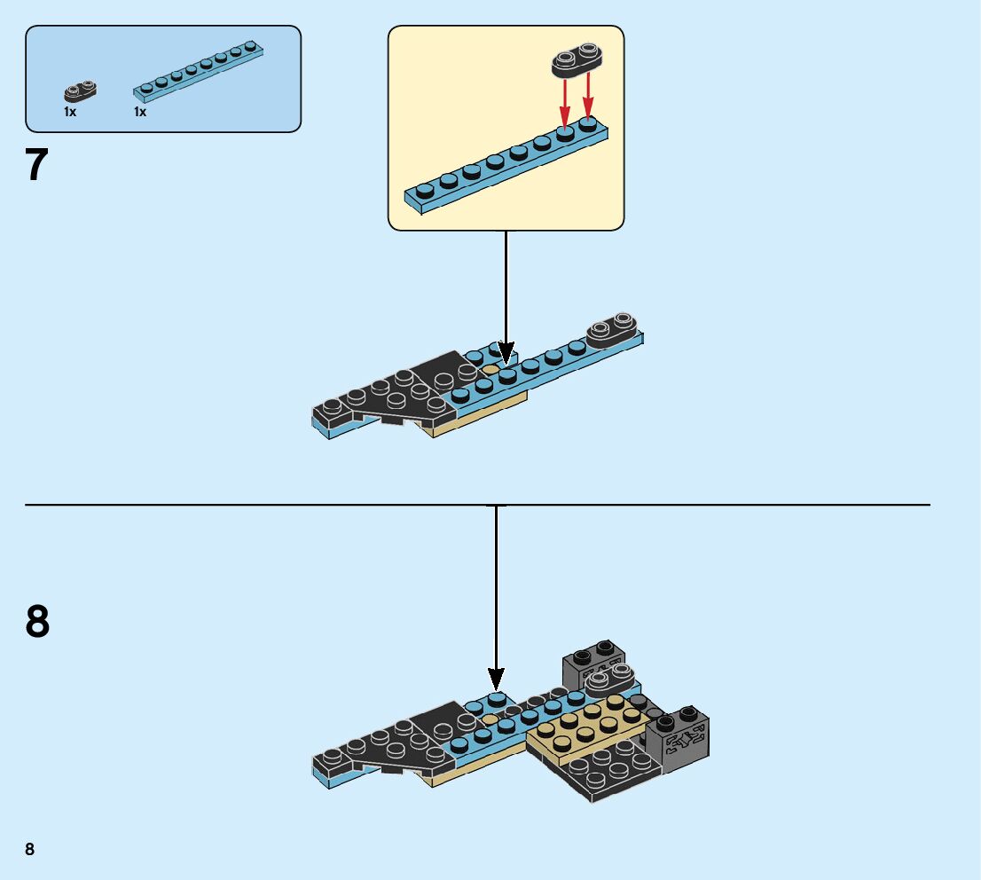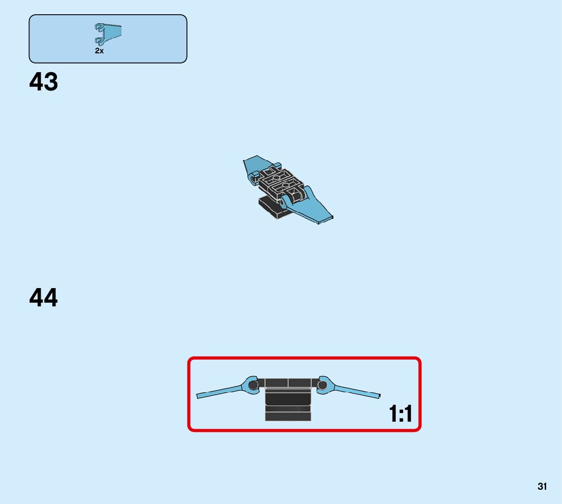 The assembly guide is prepared in a very understandable way for children and adult LEGO enthusiasts. A total of 128 picture galleries are shown, explaining the step-by-step construction stages for 2 different structures.