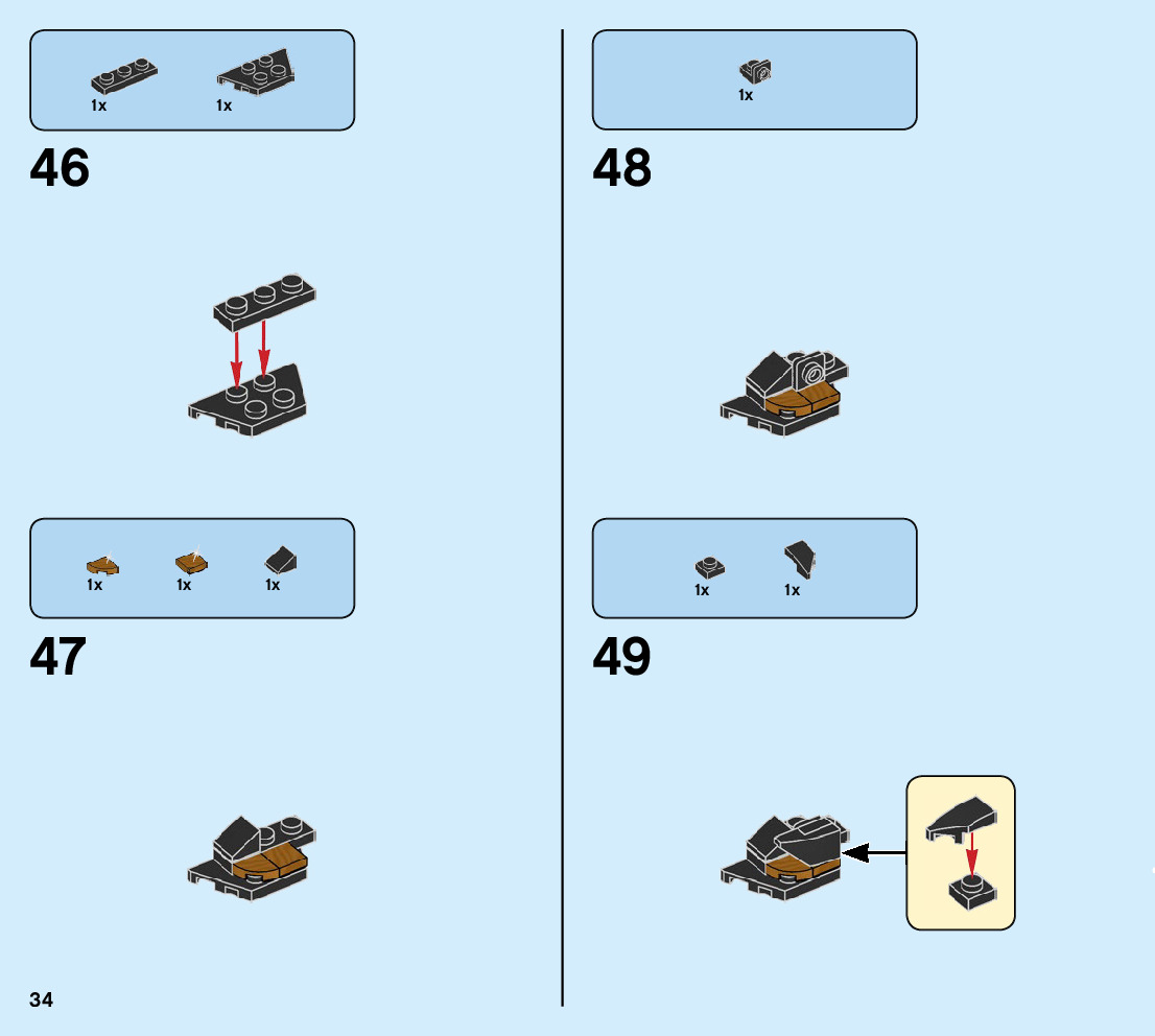The assembly guide is prepared in a very understandable way for children and adult LEGO enthusiasts. A total of 144 picture galleries are shown, explaining the step-by-step construction stages for 2 different structures.