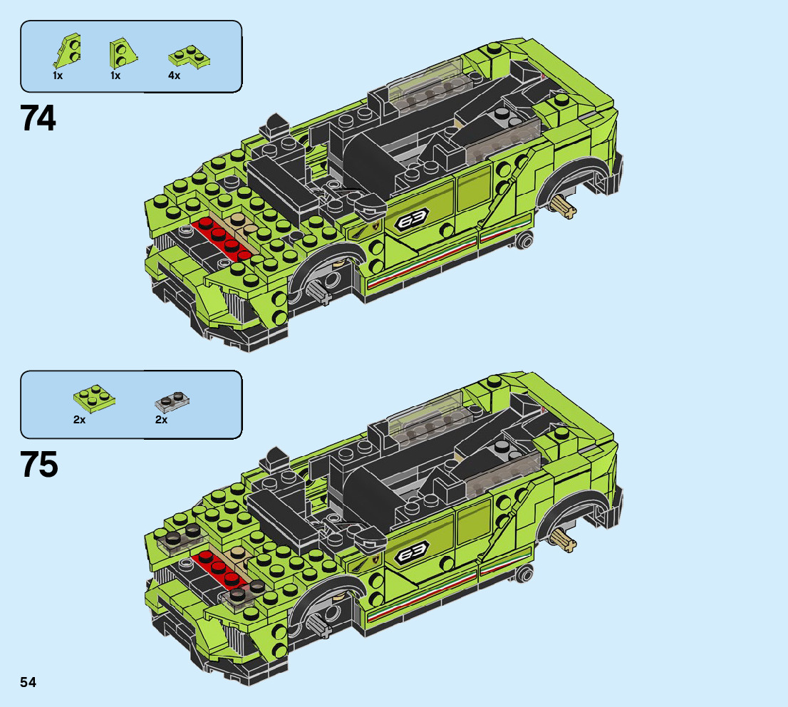 On this page you can find the original construction manual for the LEGO 76899 set. With the assembly manual you can easily learn how to build the 76899 Lamborghini Urus ST-X & Lamborghini Huracán Super Trofeo EVO step by step. The set was released in 2020.
