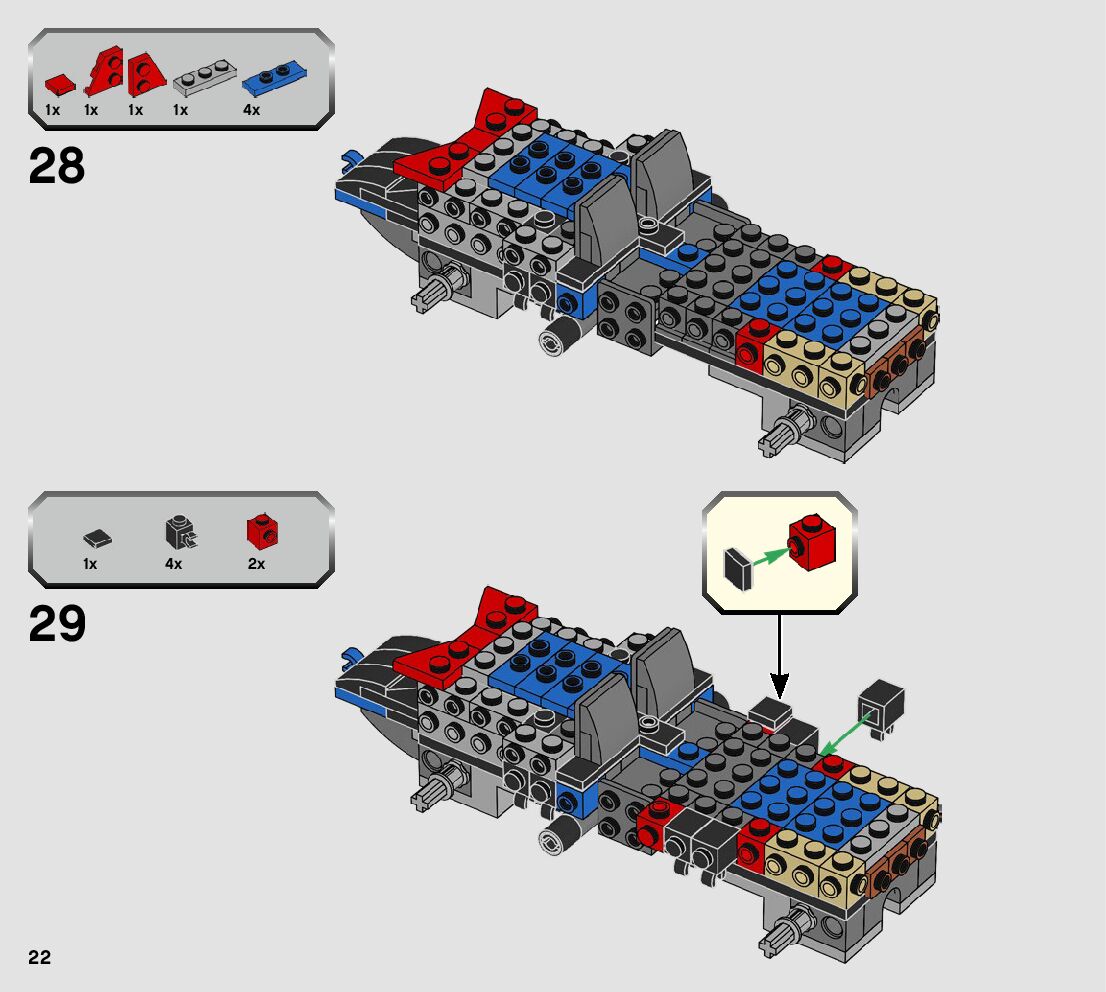 The assembly guide is prepared in a very understandable way for children and adult LEGO enthusiasts. A total of 152 picture galleries are shown, explaining the step-by-step construction stages for 2 different structures.