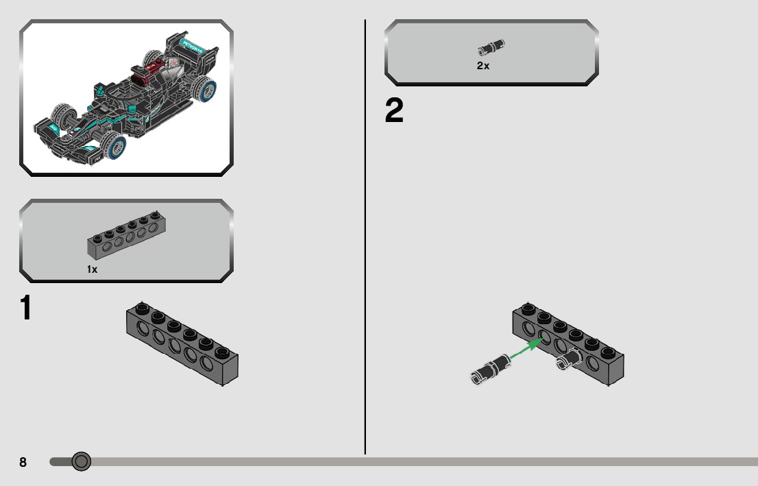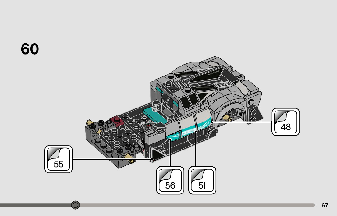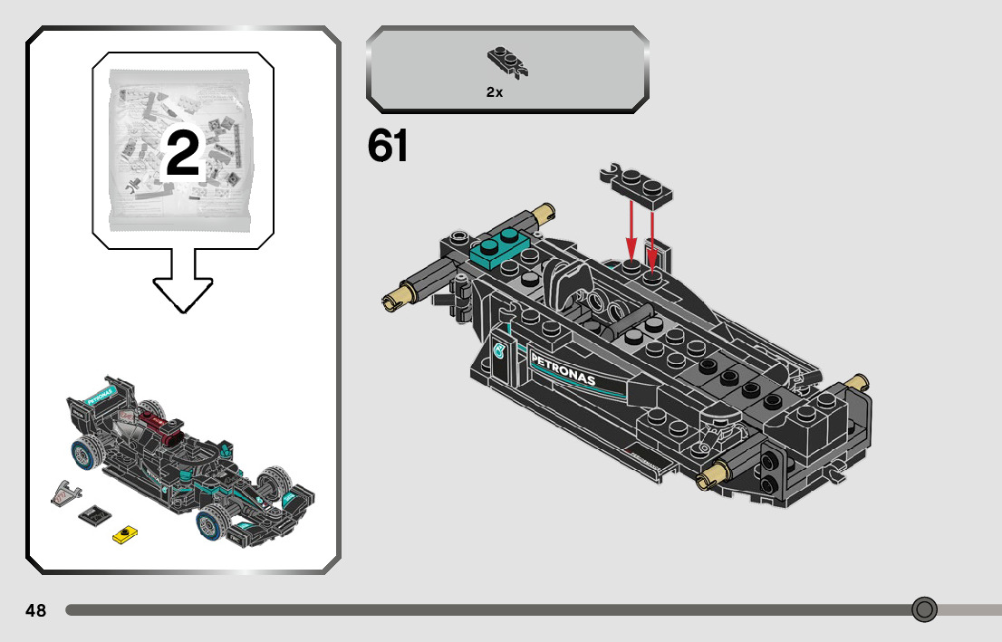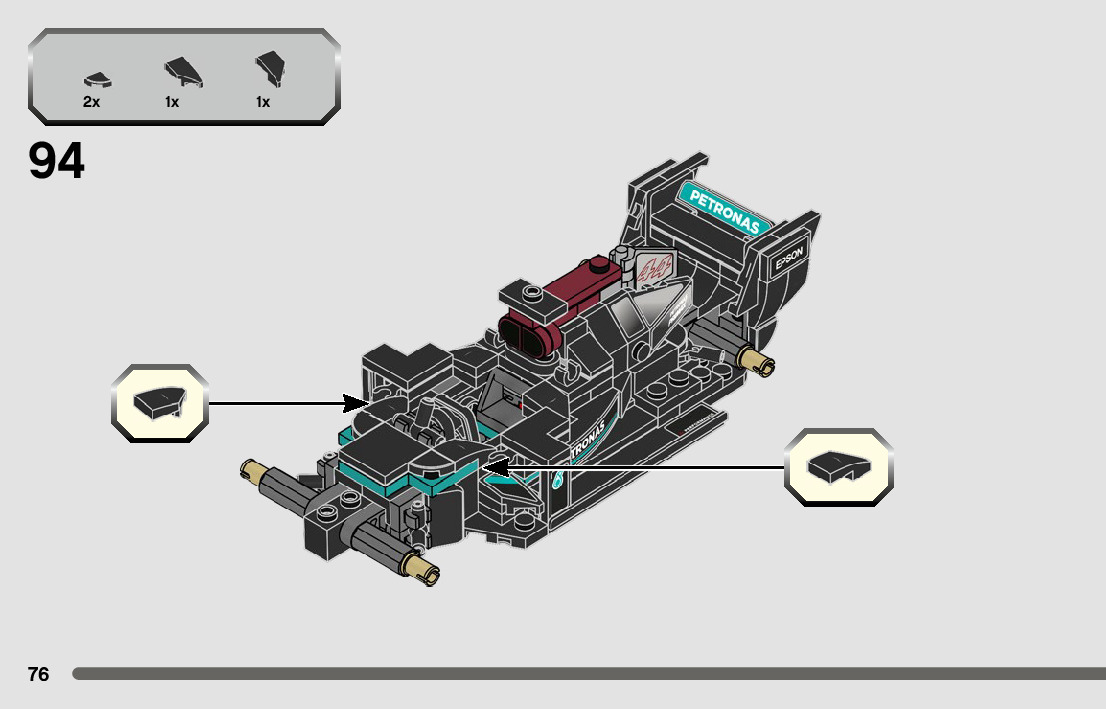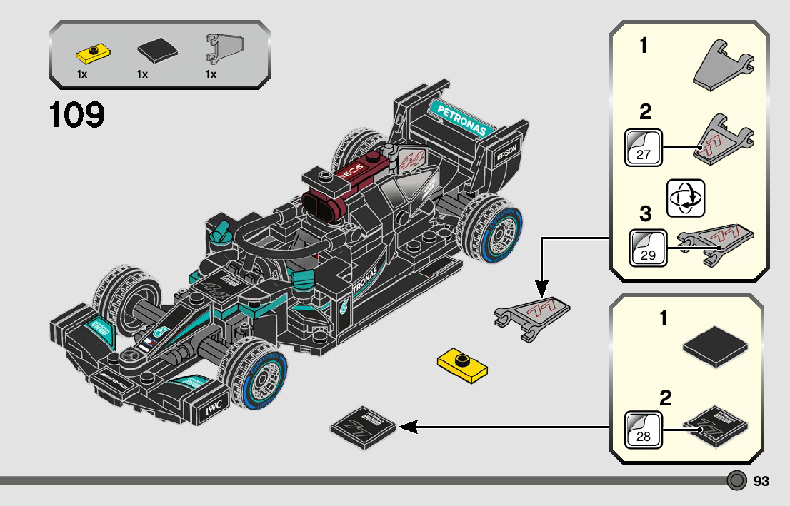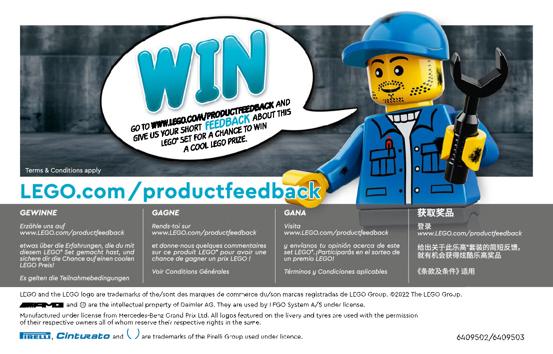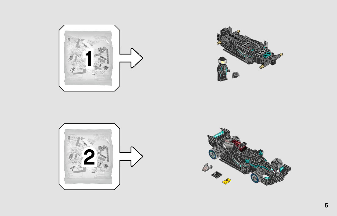 On this page you can find the original construction manual for the LEGO 76909 set. With the assembly manual you can easily learn how to build the 76909 Mercedes-AMG F1 W12 E Performance & Mercedes-AMG Project One step by step. The set was released in 2022.