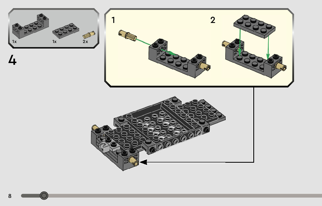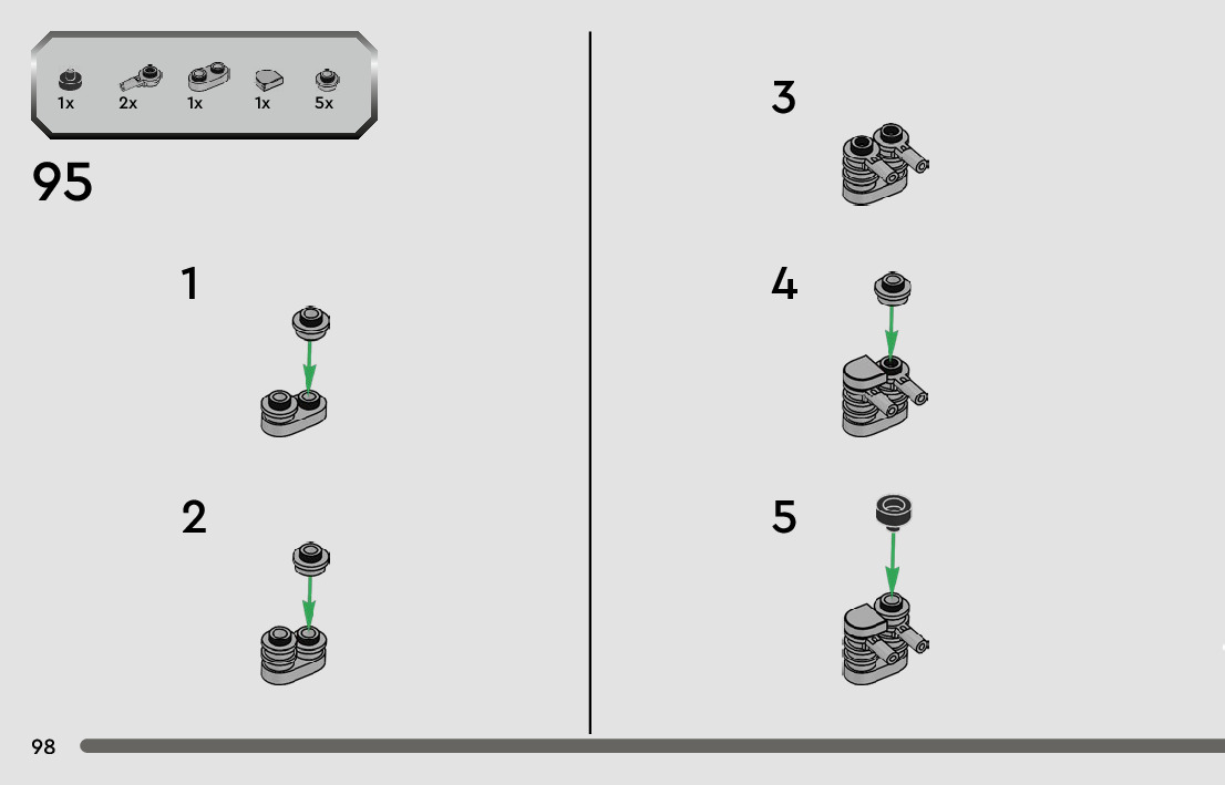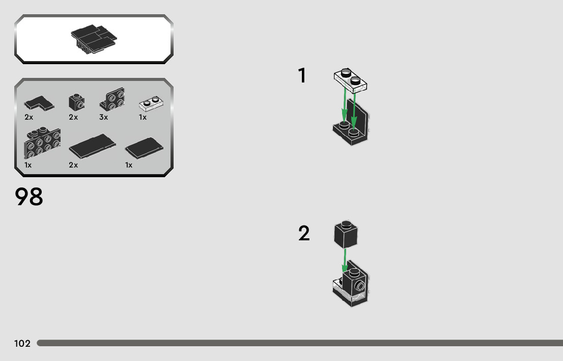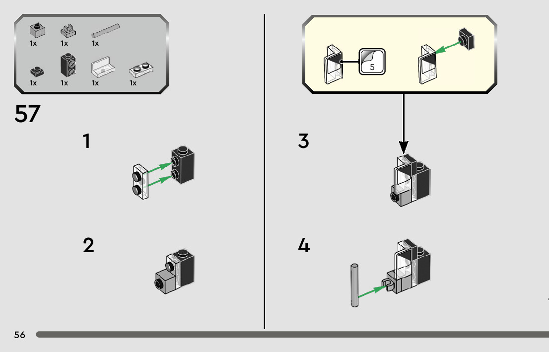 The assembly guide is prepared in a very understandable way for children and adult LEGO enthusiasts. A total of 112 picture galleries are shown, explaining the step-by-step construction stages for 1 different structures.