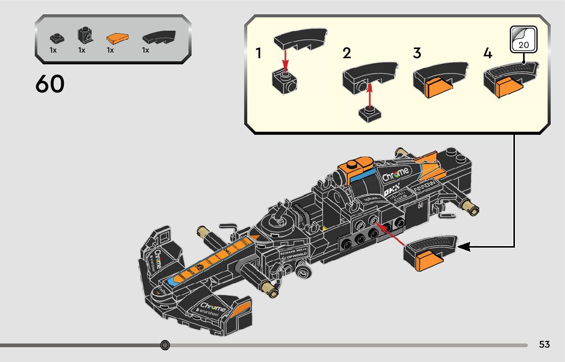 This page shares information about LEGO 76919 2023 McLaren Formula 1 Race Car manual, LEGO 76919 PDF instructions, LEGO 76919 2023 McLaren Formula 1 Race Car building guide online, How to build 76919 2023 McLaren Formula 1 Race Car LEGO.