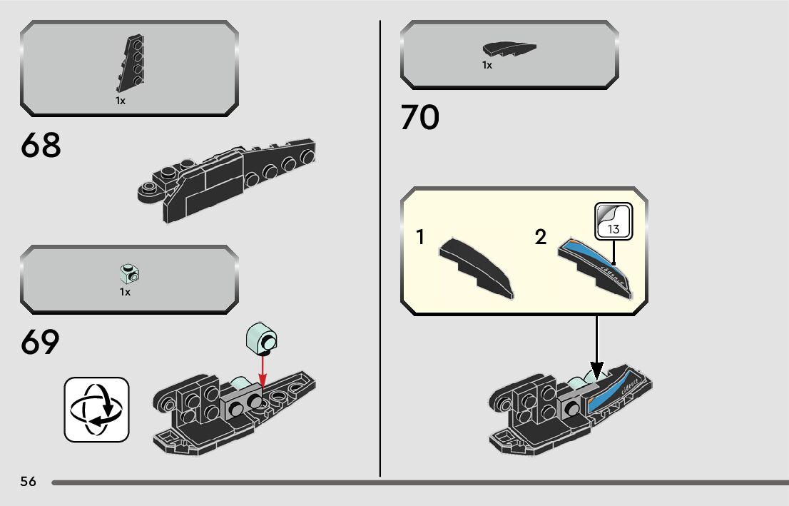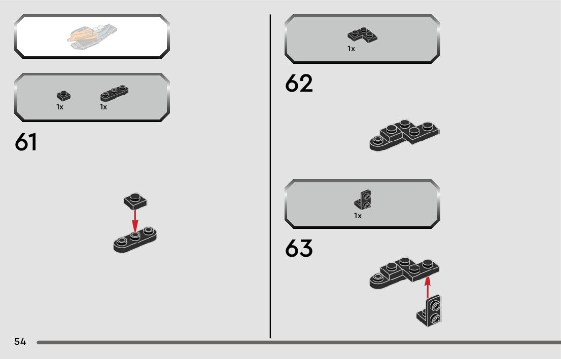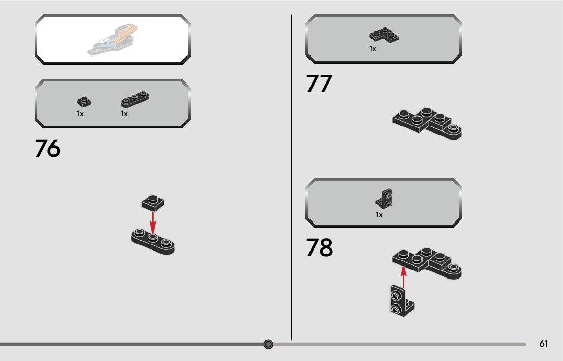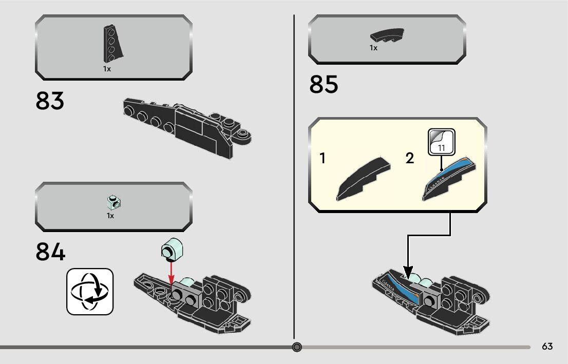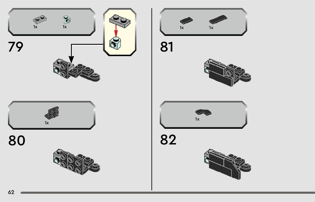 The assembly guide is prepared in a very understandable way for children and adult LEGO enthusiasts. A total of 84 picture galleries are shown, explaining the step-by-step construction stages for 1 different structures.